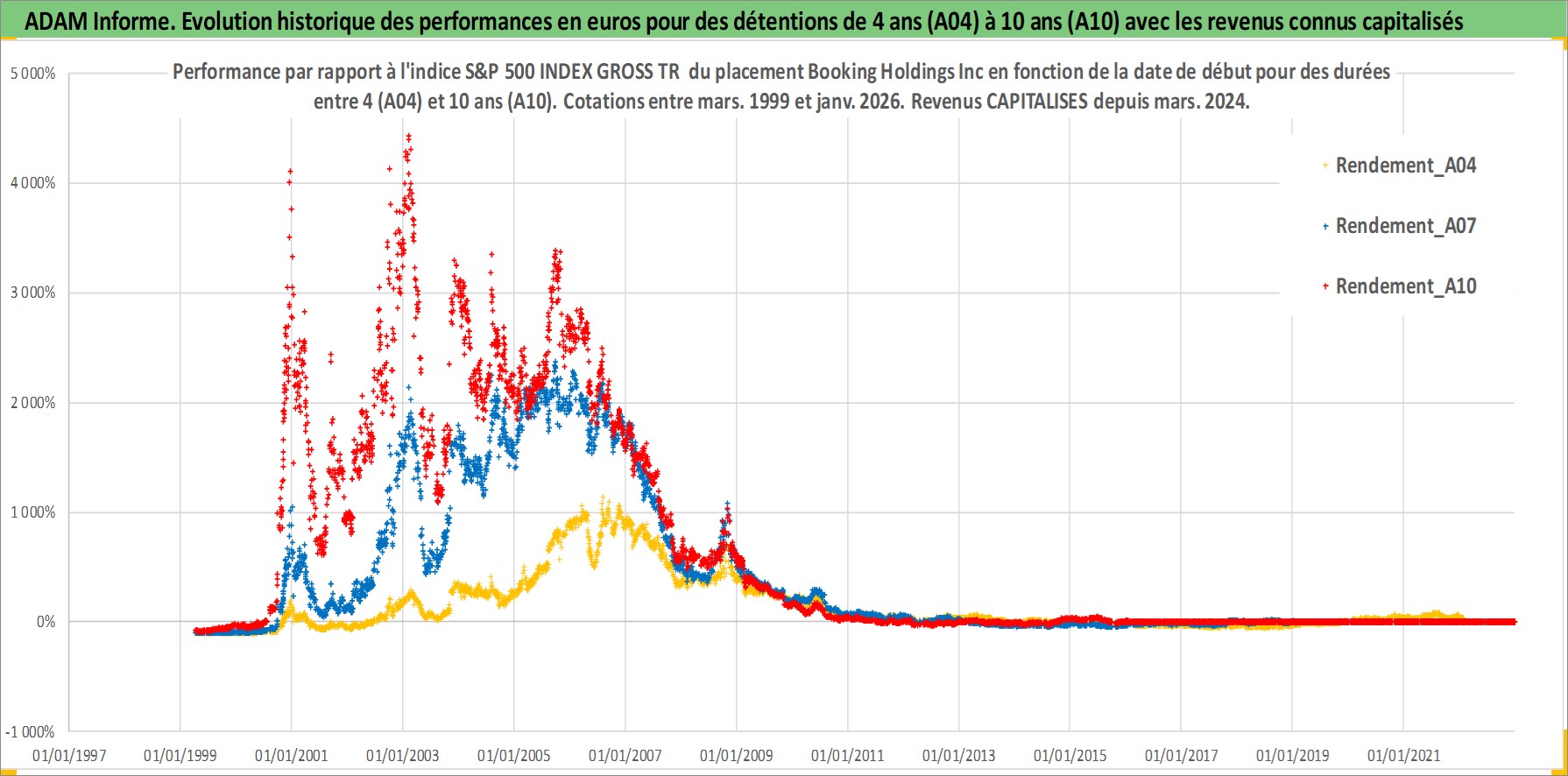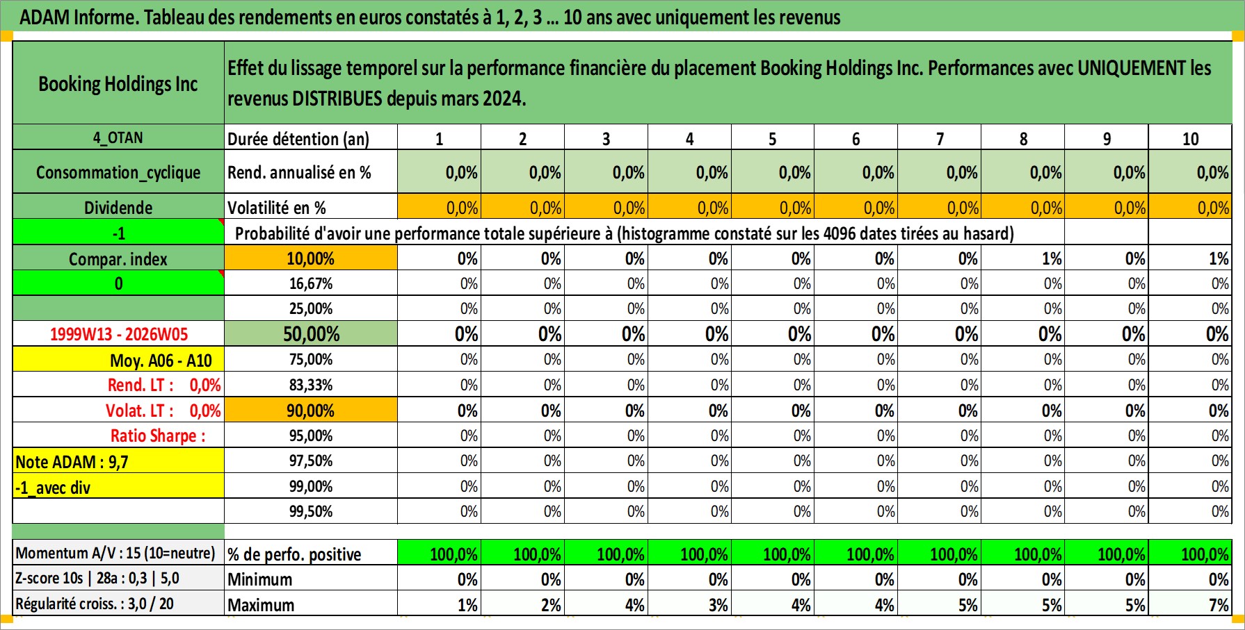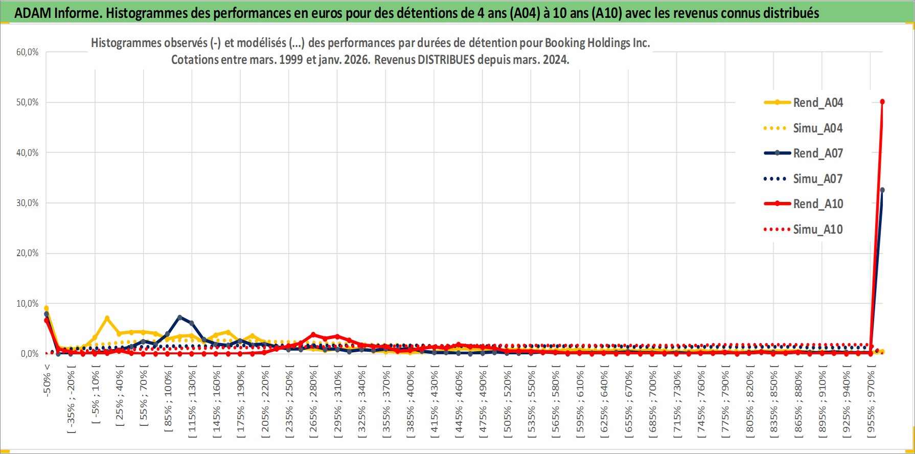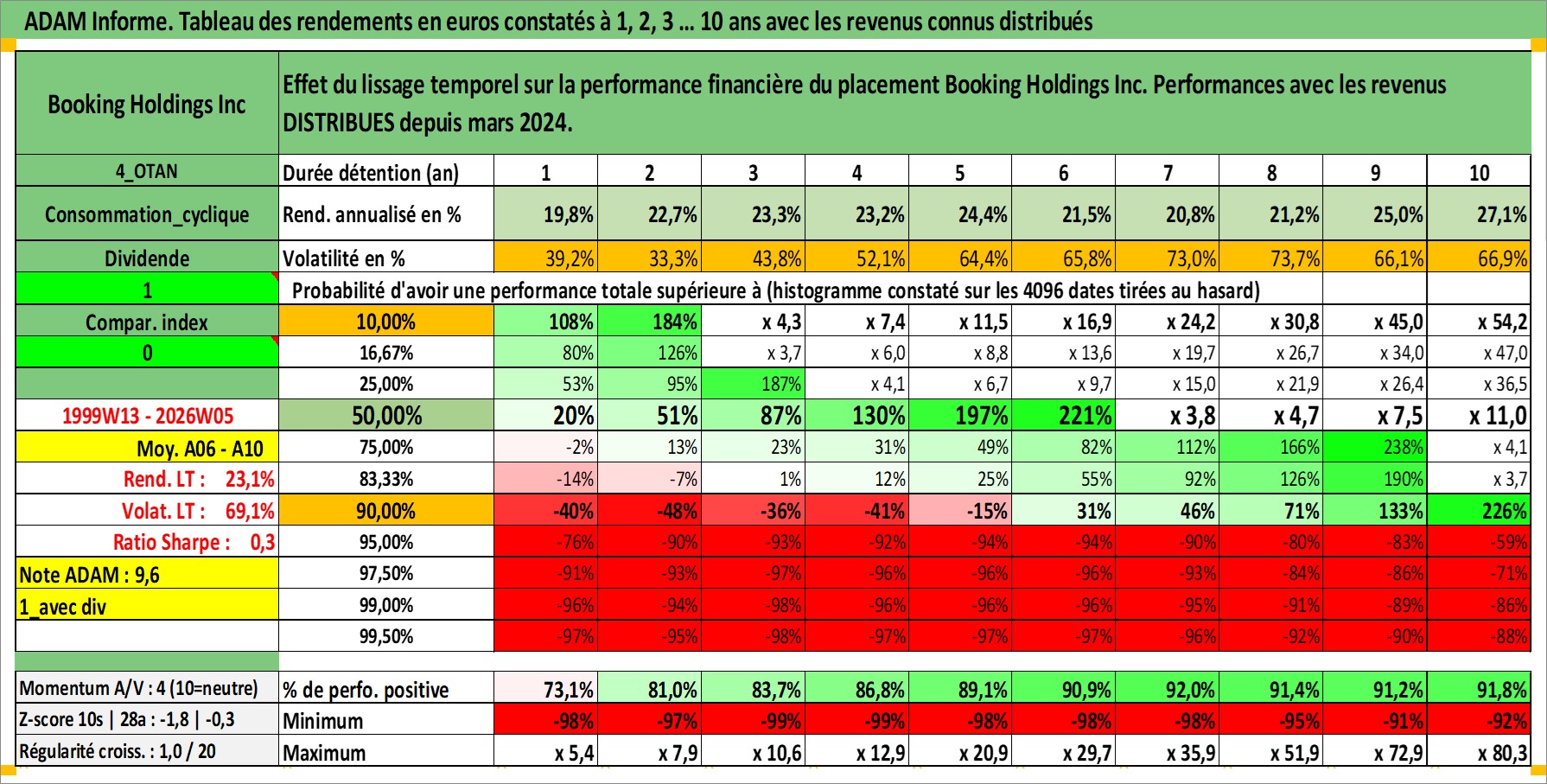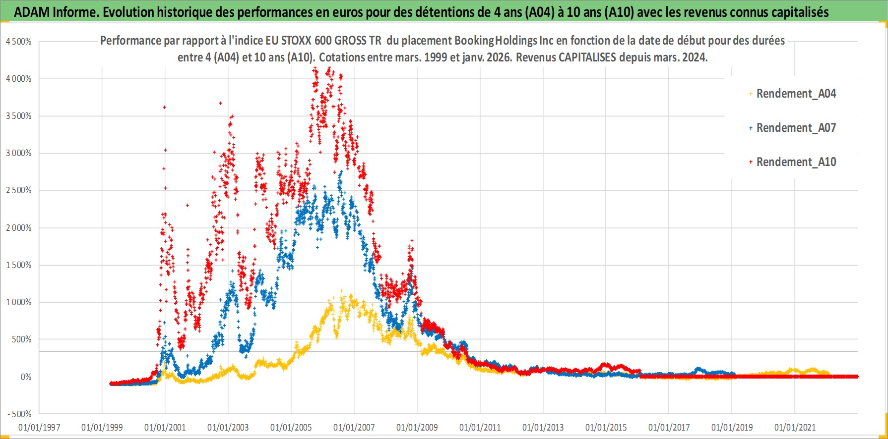 Site dédié aux investisseursPage dédiée sur site financeAnalyse des valorisations hebdomadaires de l'action Booking Holdings Inc. Cet actif est cote en USD. Les valorisations sont en contrevaleur EURO et couvrent les semaines 1999W13 a 2026W05. Les revenus de cet actif financier sont pris en compte depuis la semaine 2024W10. La note globale ESG de cet actif est estimee a 9.0 (apres rebasage entre 0 et 20).