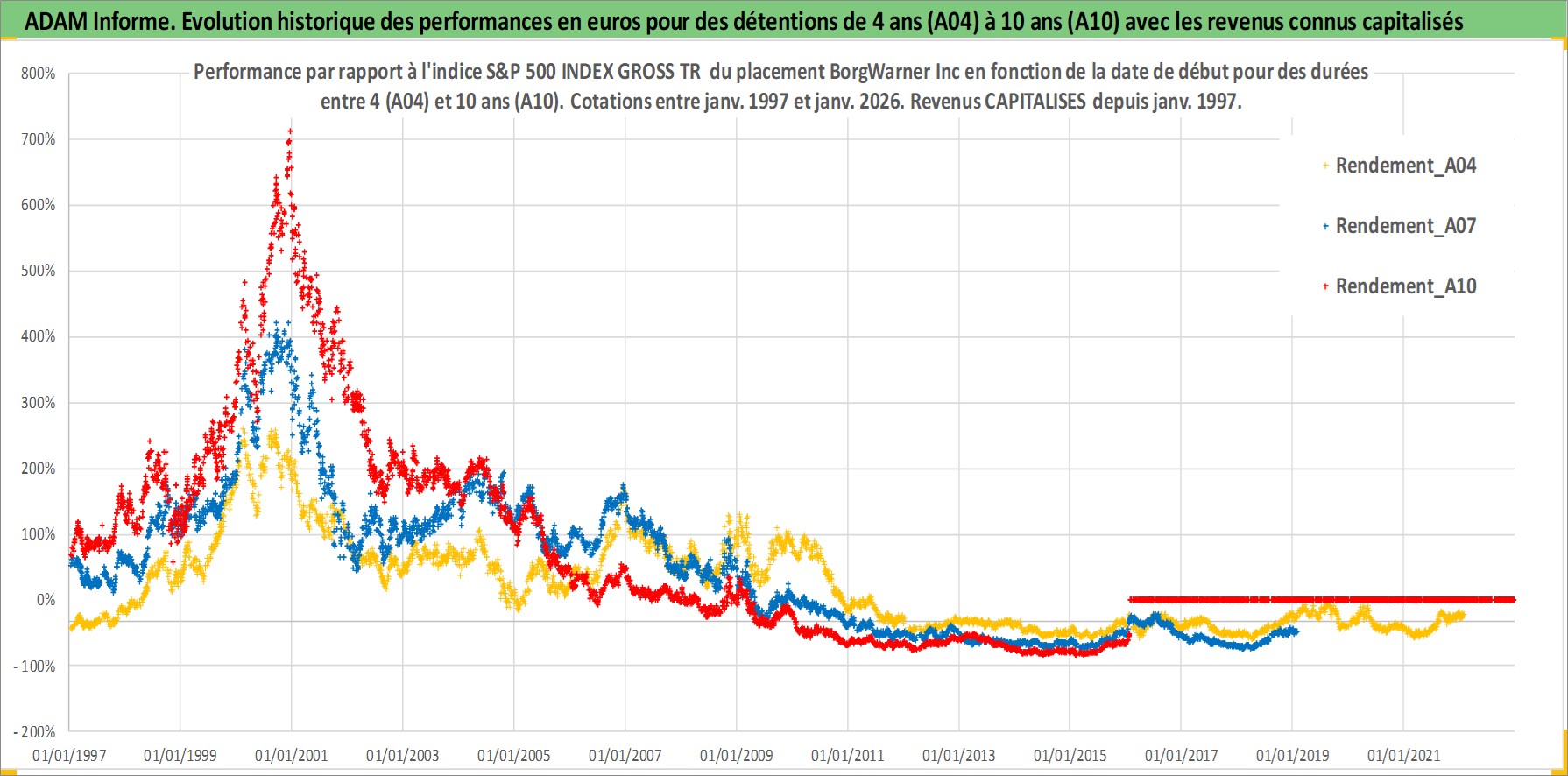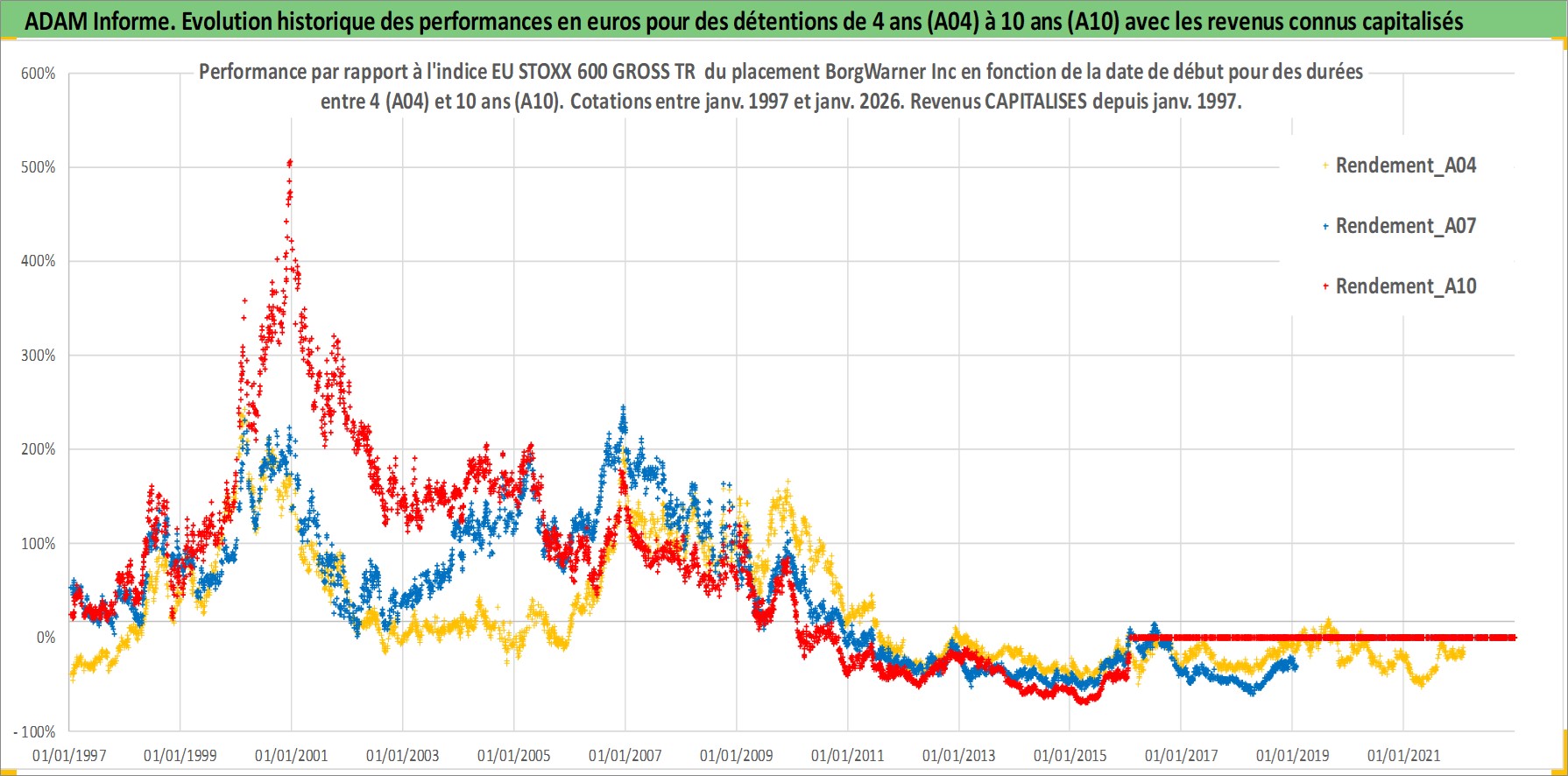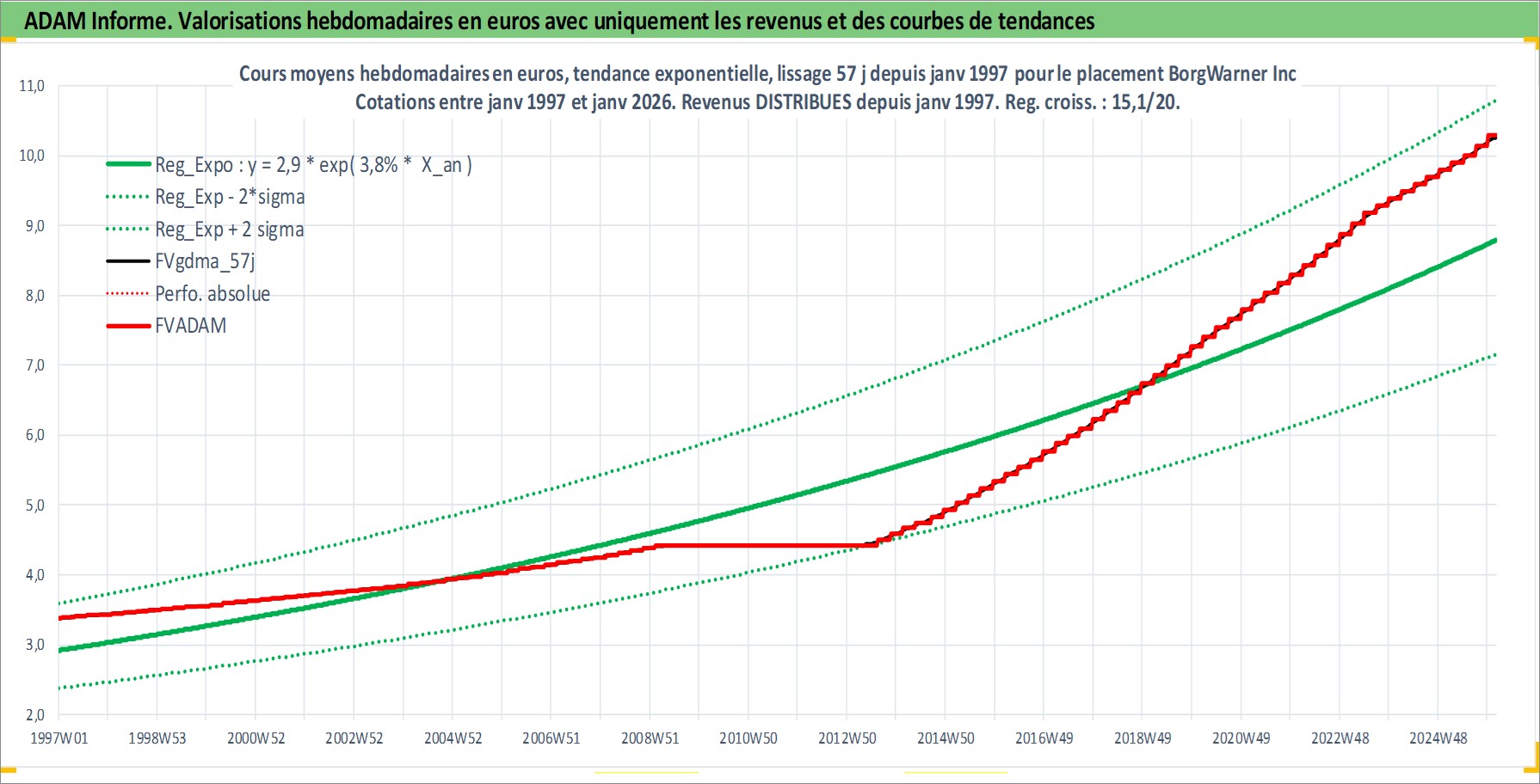 Site dédié aux investisseursPage dédiée sur site financeAnalyse des valorisations hebdomadaires de l'action BorgWarner Inc. Cet actif est cote en USD. Les valorisations sont en contrevaleur EURO et couvrent les semaines 1997W01 a 2026W05. Les revenus de cet actif financier sont pris en compte depuis la semaine 1997W05. La note globale ESG de cet actif est estimee a 15.0 (apres rebasage entre 0 et 20).