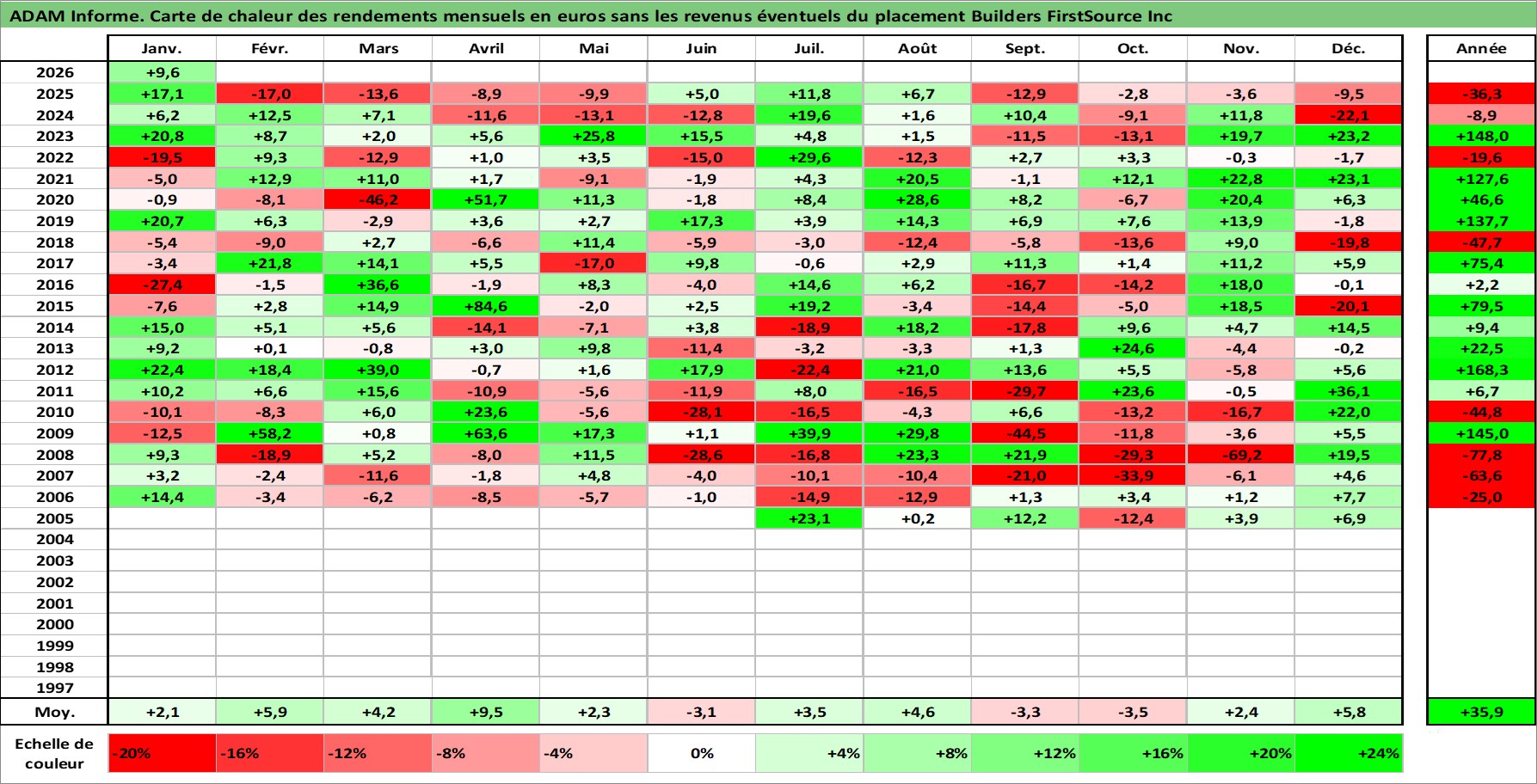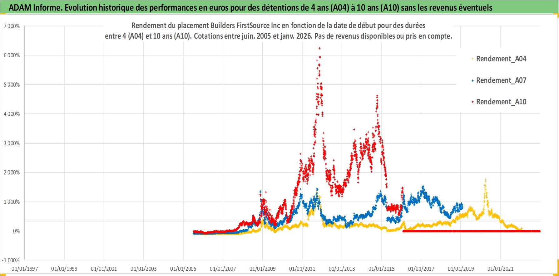 Site dédié aux investisseursPage dédiée sur site financeAnalyse des valorisations hebdomadaires de l'action Builders FirstSource Inc. Cet actif est cote en USD. Les valorisations sont en contrevaleur EURO et couvrent les semaines 2005W26 a 2026W05. Les revenus de cet actif financier ne sont pas connus car non existants ou non disponibles sur le site Yahoo Finance. La note ESG de cet actif n'est pas connue.
