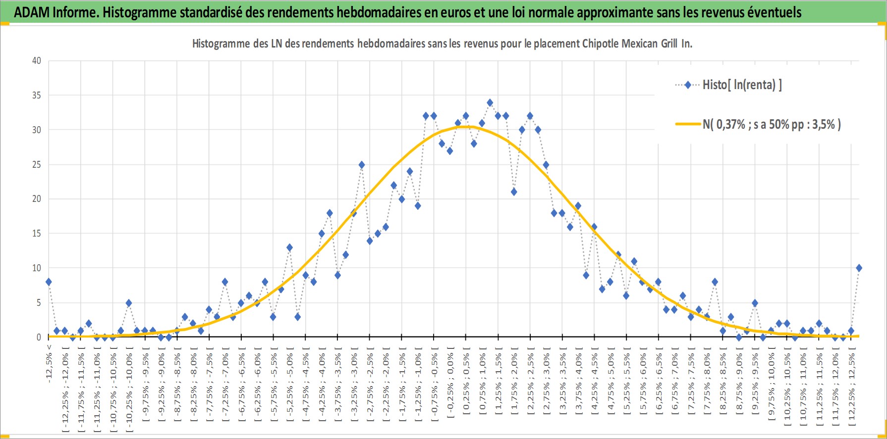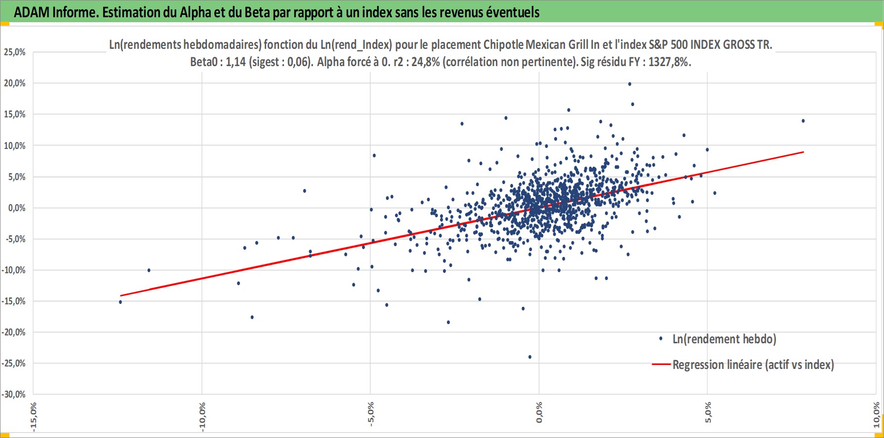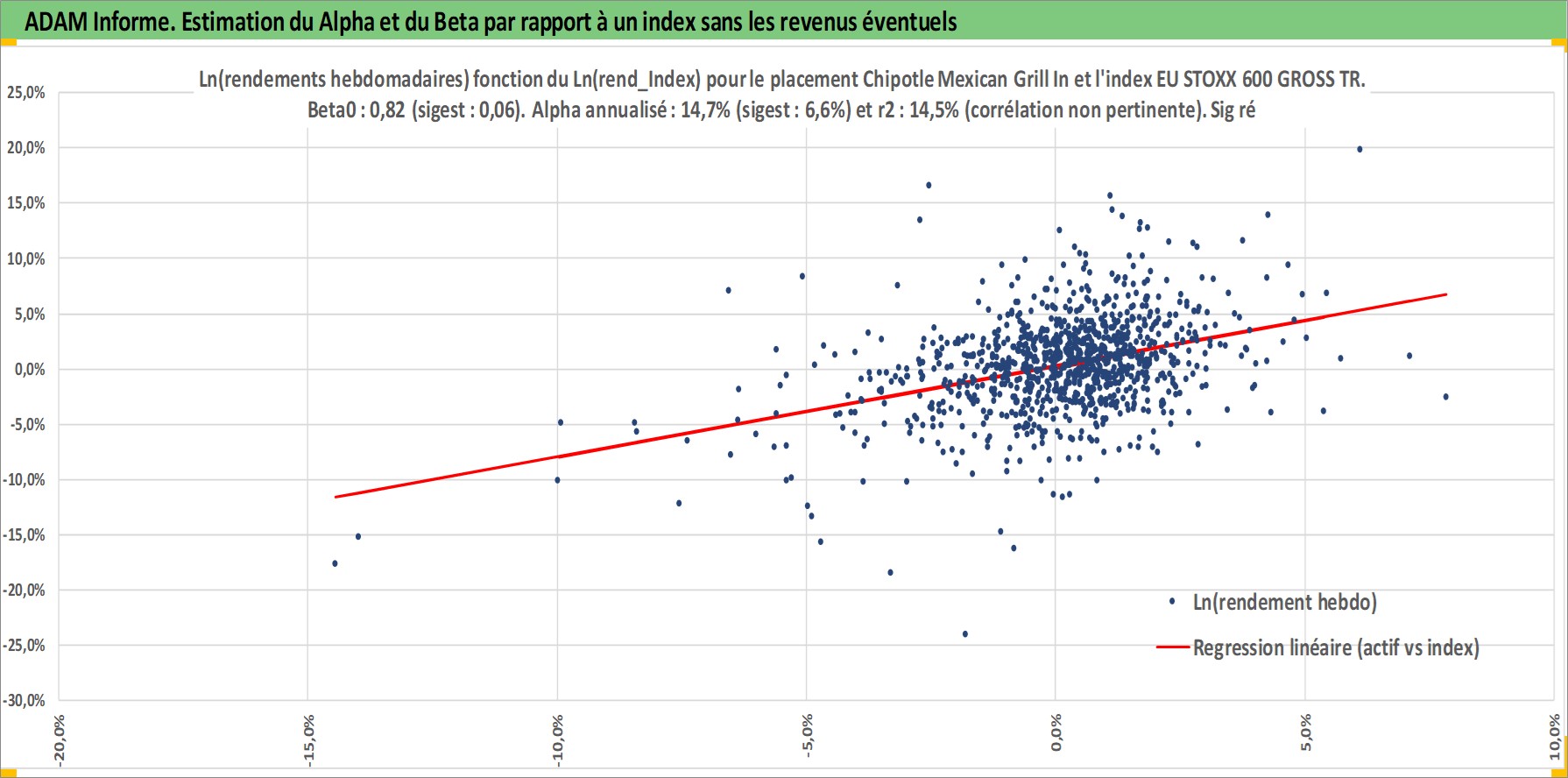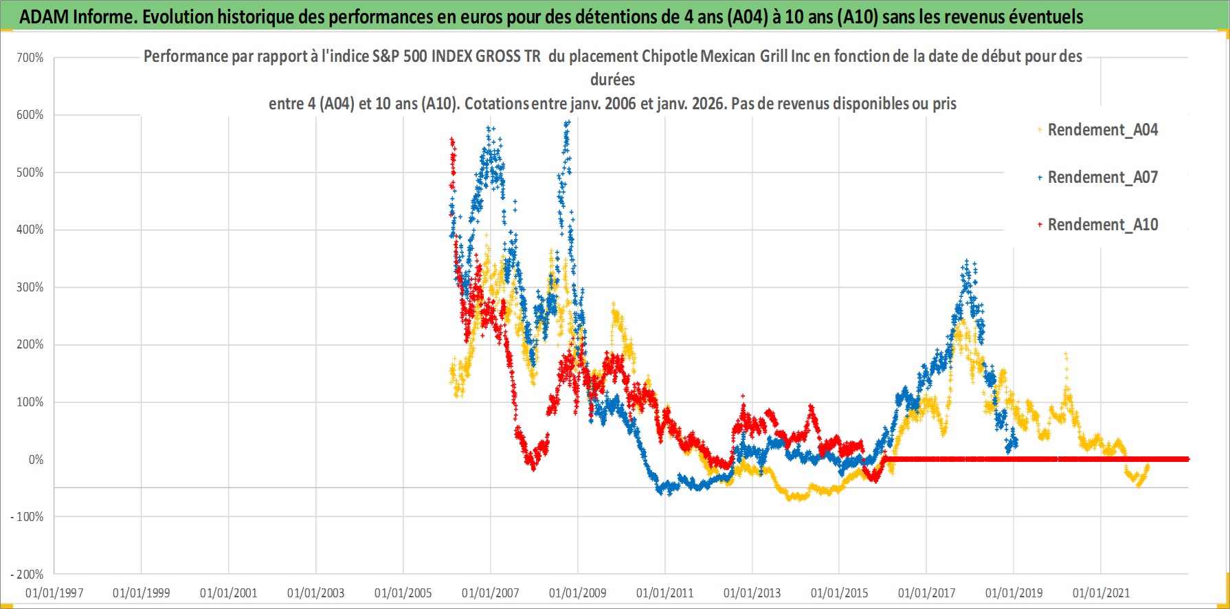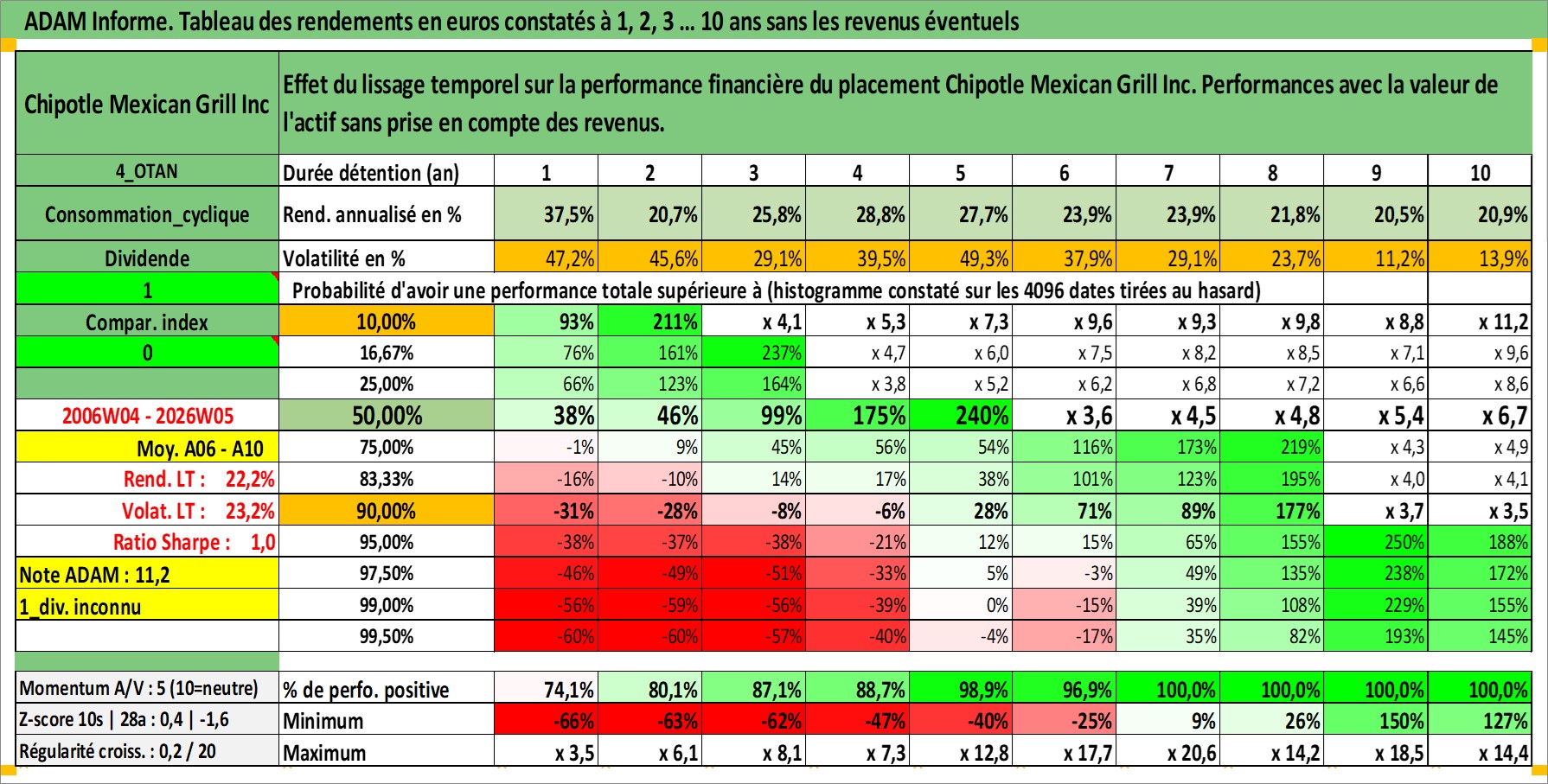 Site dédié aux investisseursPage dédiée sur site financeAnalyse des valorisations hebdomadaires de l'action Chipotle Mexican Grill Inc. Cet actif est cote en USD. Les valorisations sont en contrevaleur EURO et couvrent les semaines 2006W04 a 2026W05. Les revenus de cet actif financier ne sont pas connus car non existants ou non disponibles sur le site Yahoo Finance. La note globale ESG de cet actif est estimee a 8.0 (apres rebasage entre 0 et 20).