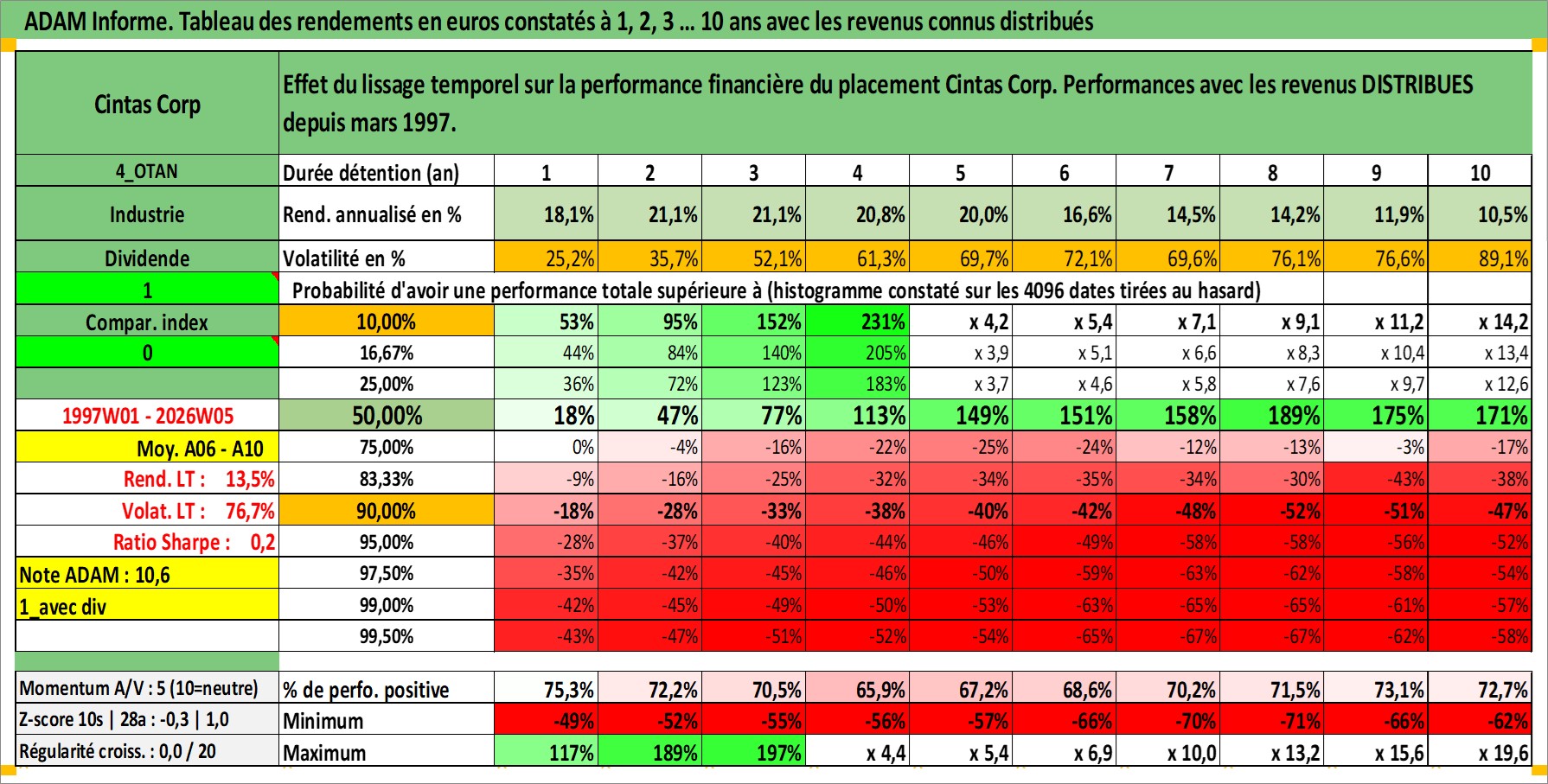 Dernière perfo 10 ans en %