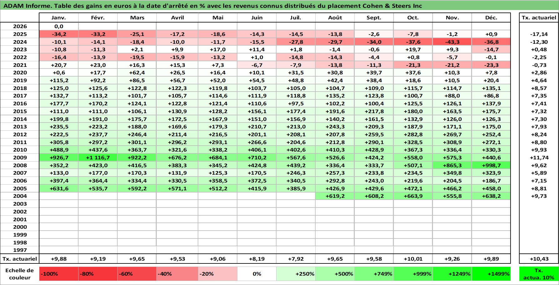 Dernière perfo 10 ans en %
