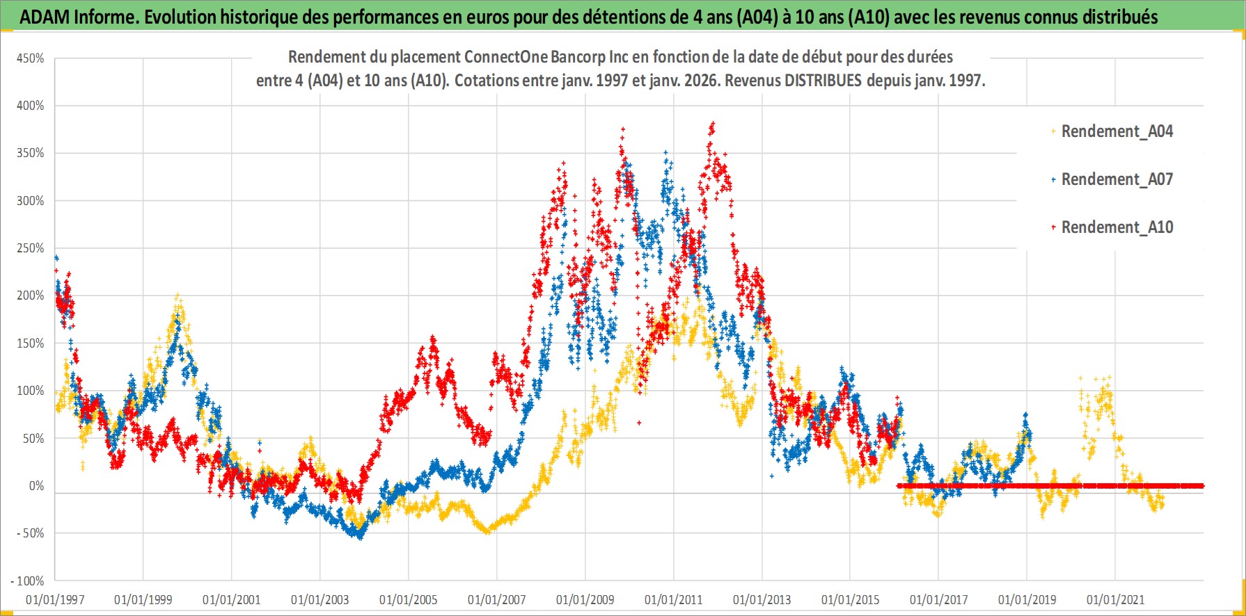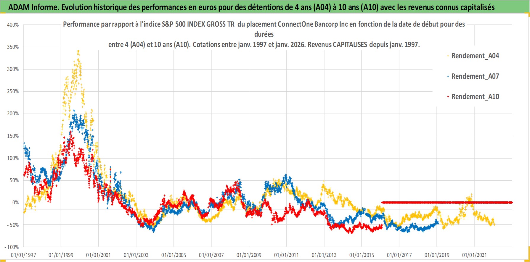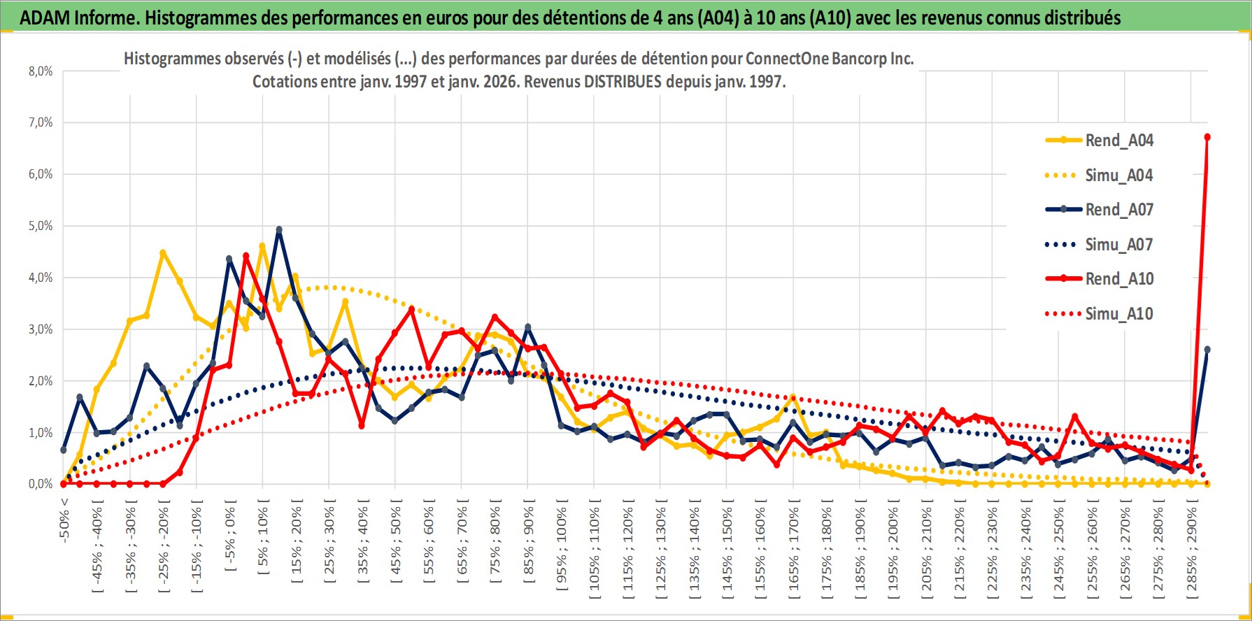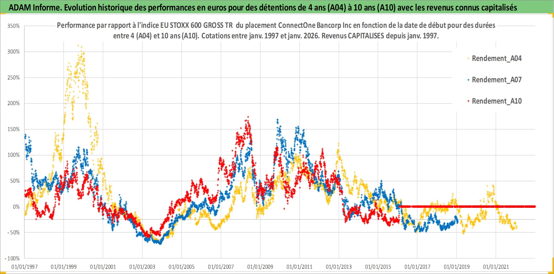 Site dédié aux investisseursPage dédiée sur site financeAnalyse des valorisations hebdomadaires de l'action ConnectOne Bancorp Inc. Cet actif est cote en USD. Les valorisations sont en contrevaleur EURO et couvrent les semaines 1997W01 a 2026W05. Les revenus de cet actif financier sont pris en compte depuis la semaine 1997W03. La note ESG de cet actif n'est pas connue.