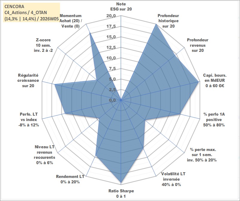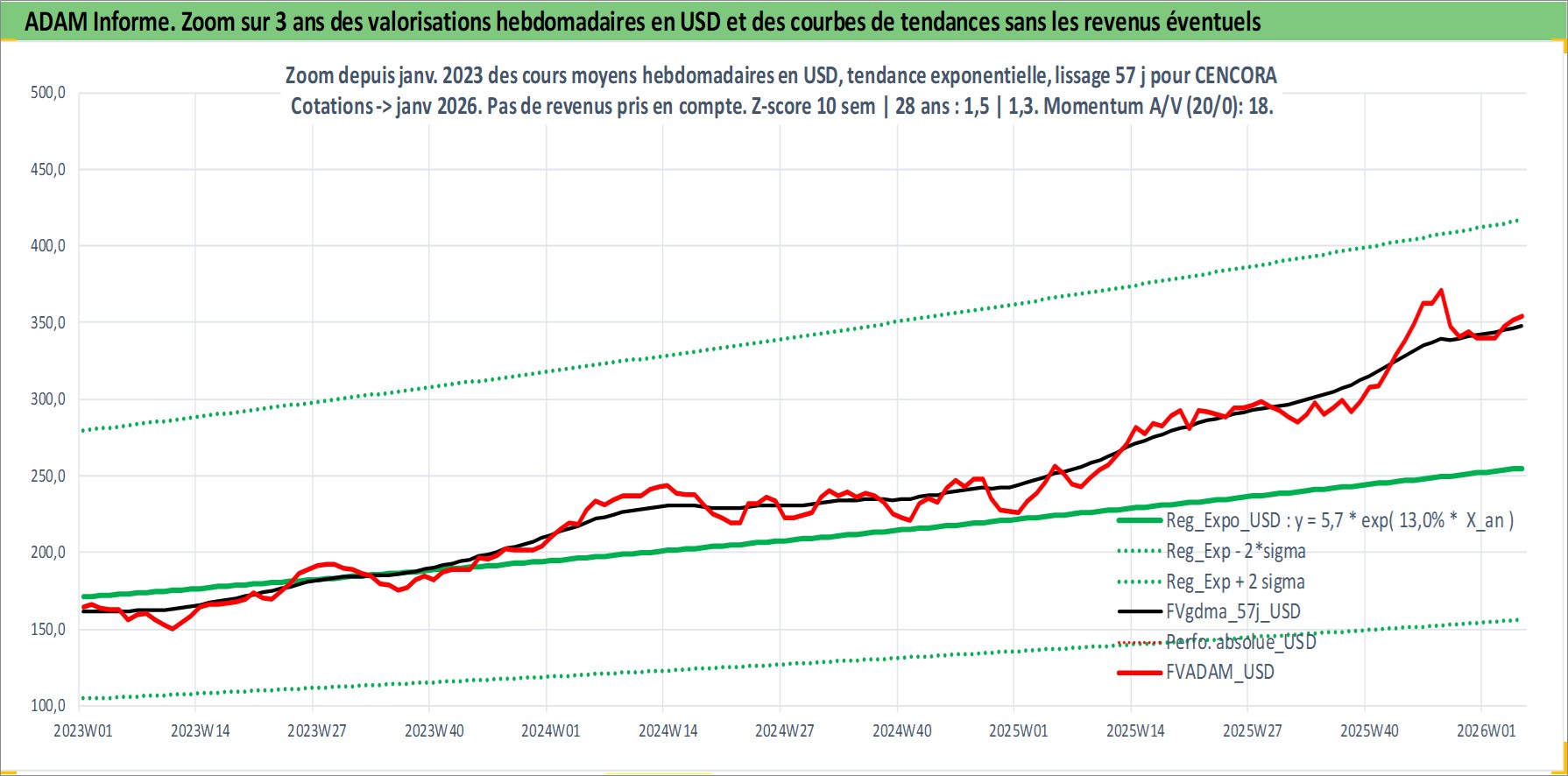 Site dédié aux investisseursPage dédiée sur site financeAnalyse des valorisations hebdomadaires de l'action CENCORA. Cet actif est cote en USD. Les valorisations sont en contrevaleur EURO et couvrent les semaines 1997W01 a 2026W05. Les revenus de cet actif financier sont pris en compte depuis la semaine 2001W46. La note ESG de cet actif n'est pas connue.