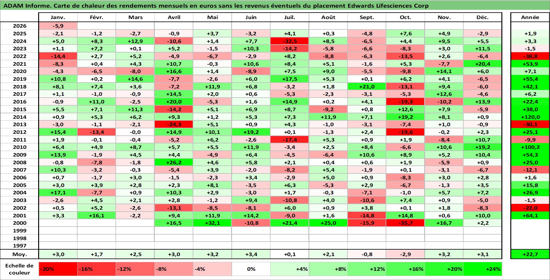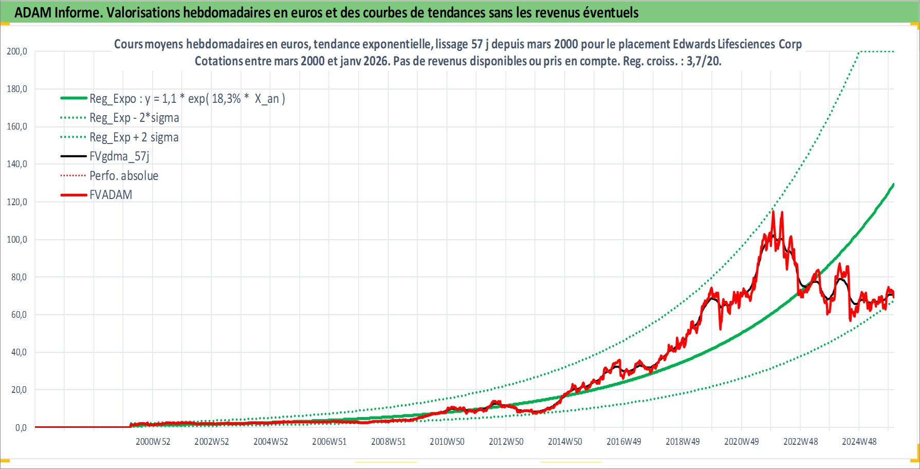 Site dédié aux investisseursPage dédiée sur site financeAnalyse des valorisations hebdomadaires de l'action Edwards Lifesciences Corp. Cet actif est cote en USD. Les valorisations sont en contrevaleur EURO et couvrent les semaines 2000W13 a 2026W05. Les revenus de cet actif financier ne sont pas connus car non existants ou non disponibles sur le site Yahoo Finance. La note globale ESG de cet actif est estimee a 11.0 (apres rebasage entre 0 et 20).