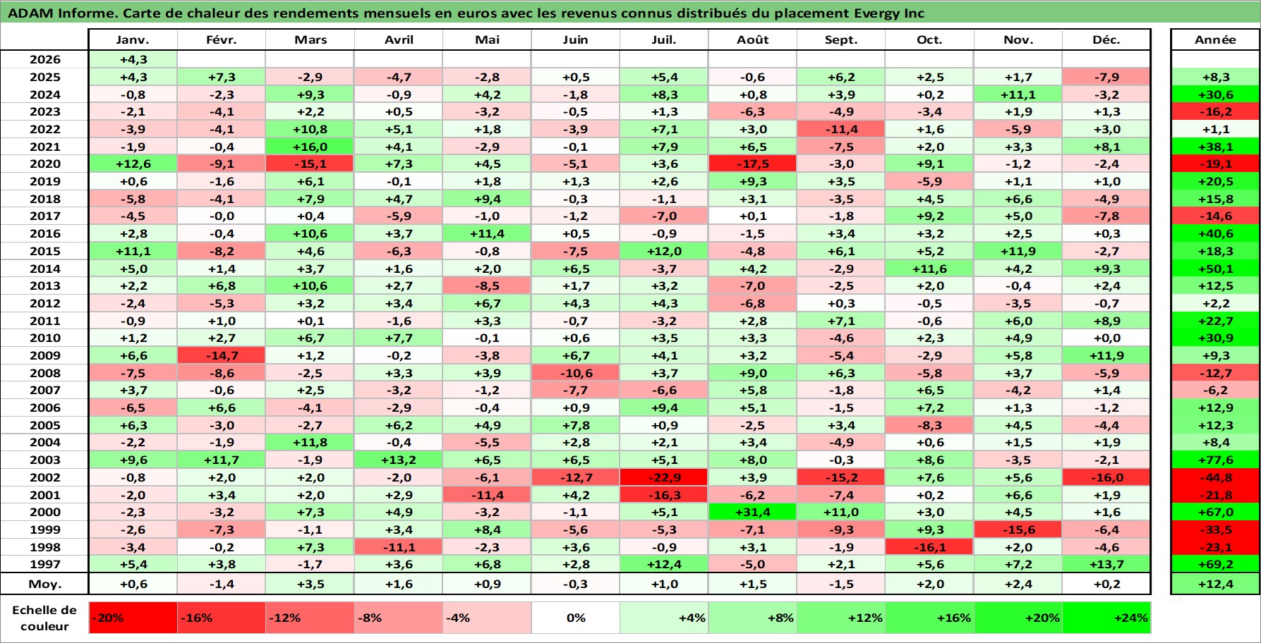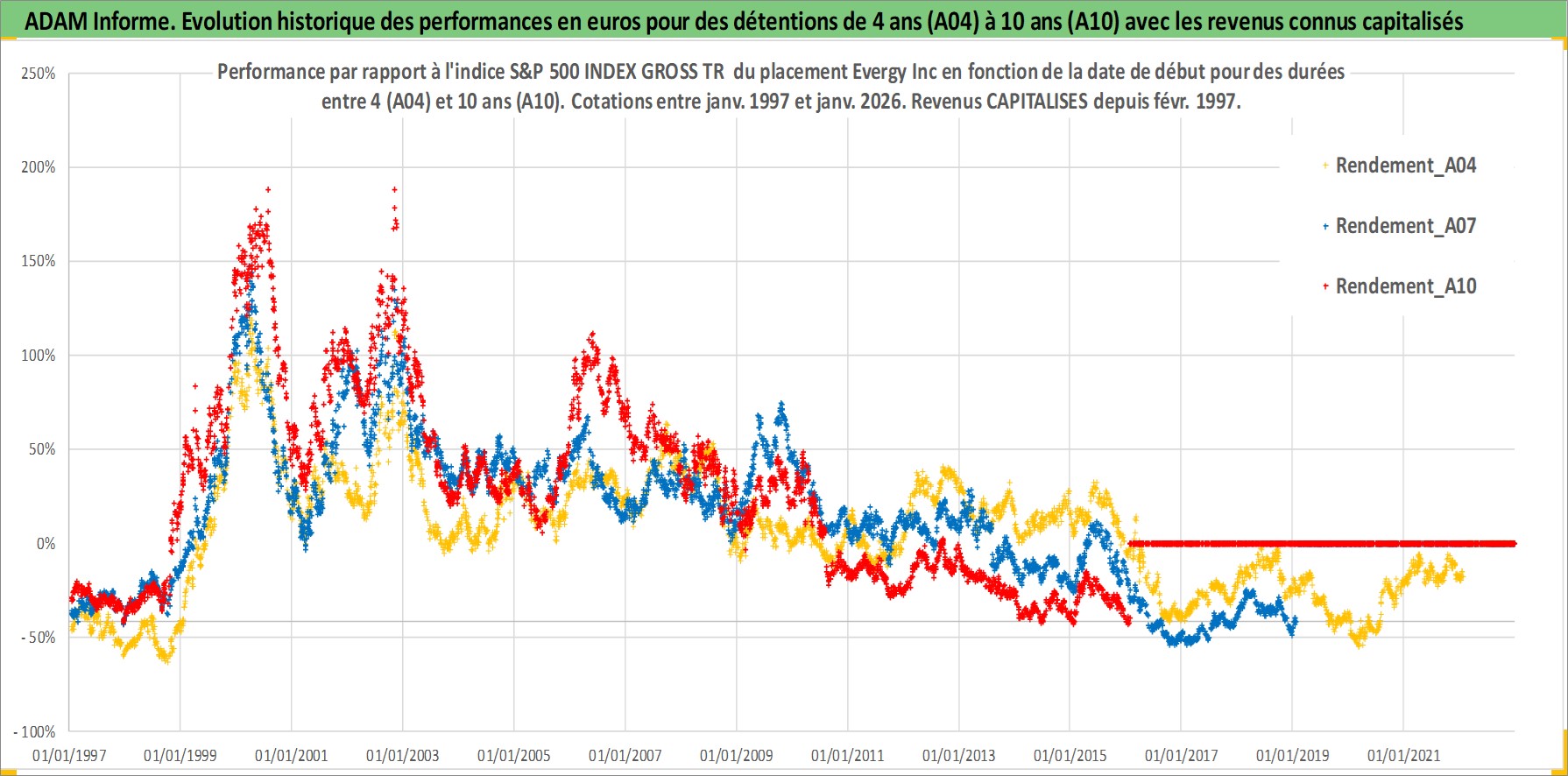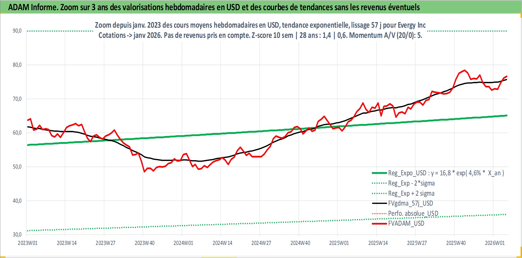 Site dédié aux investisseursPage dédiée sur site financeAnalyse des valorisations hebdomadaires de l'action Evergy Inc. Cet actif est cote en USD. Les valorisations sont en contrevaleur EURO et couvrent les semaines 1997W01 a 2026W05. Les revenus de cet actif financier sont pris en compte depuis la semaine 1997W09. La note ESG de cet actif n'est pas connue.