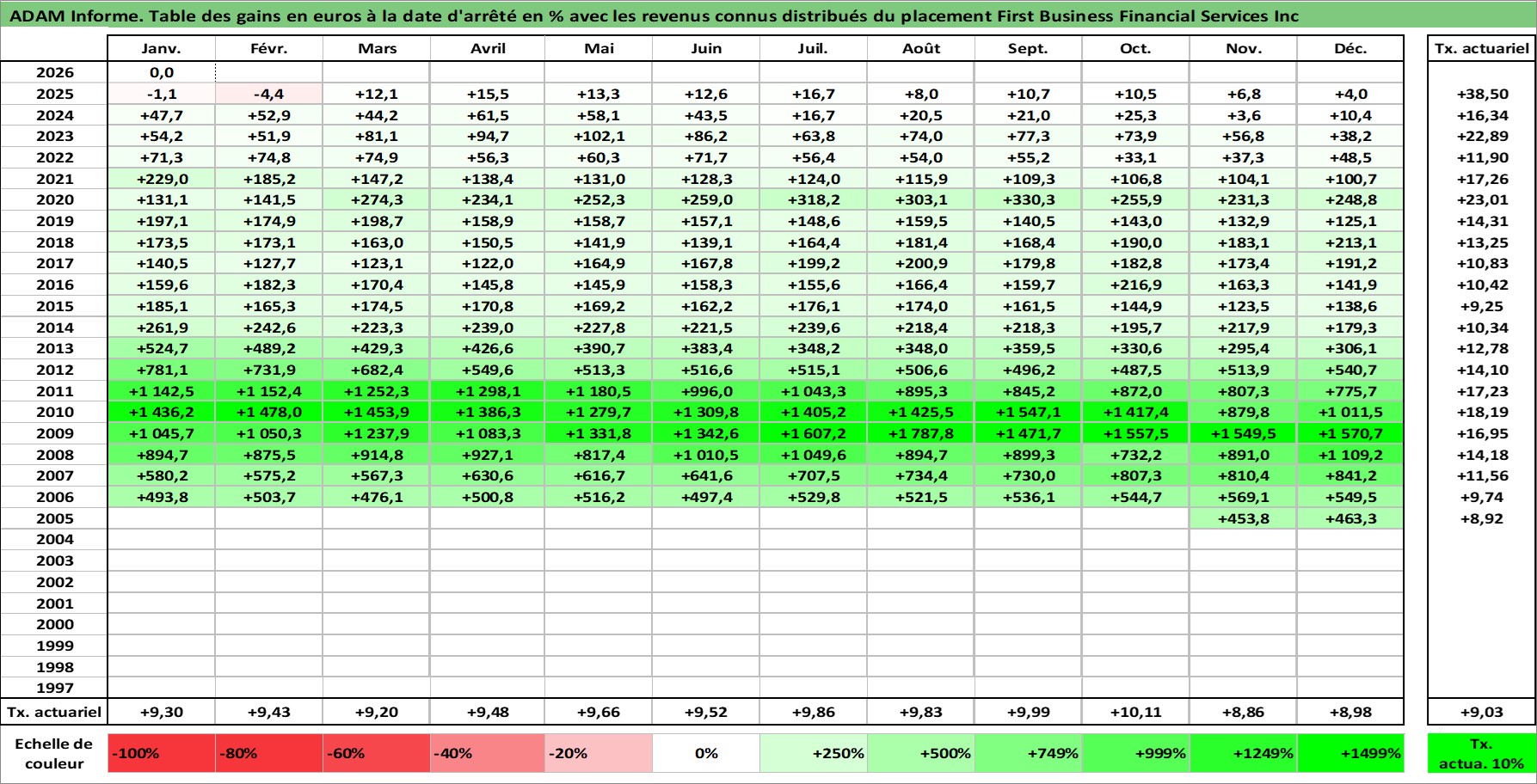 Dernière perfo 10 ans en %