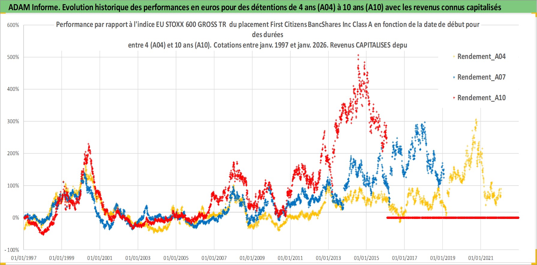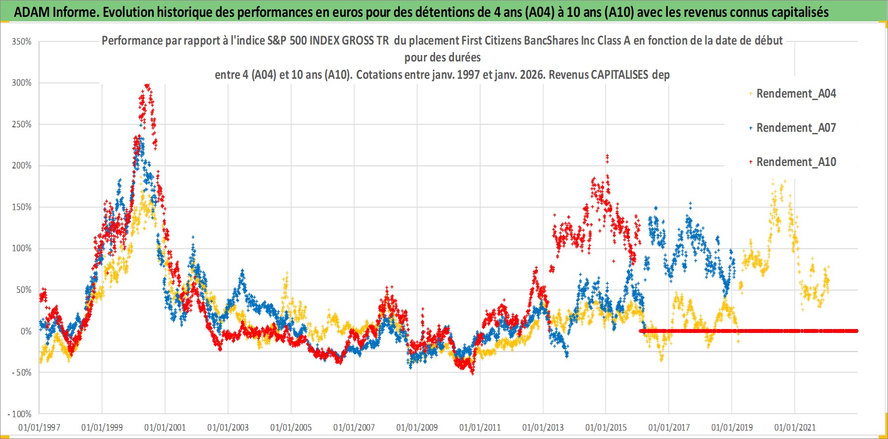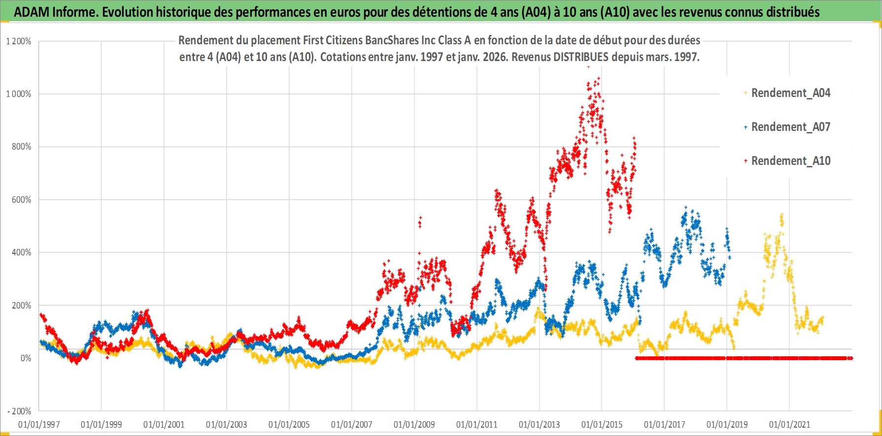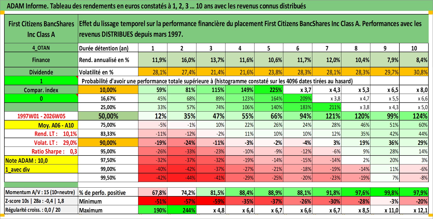 Site dédié aux investisseursPage dédiée sur site financeAnalyse des valorisations hebdomadaires de l'action First Citizens BancShares Inc Class A. Cet actif est cote en USD. Les valorisations sont en contrevaleur EURO et couvrent les semaines 1997W01 a 2026W05. Les revenus de cet actif financier sont pris en compte depuis la semaine 1997W11. La note ESG de cet actif n'est pas connue.
