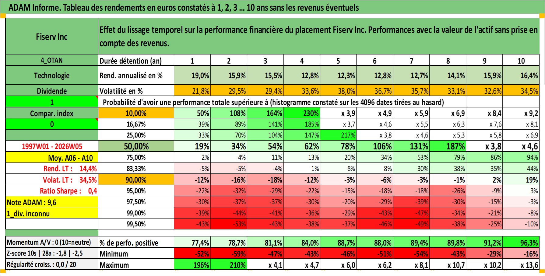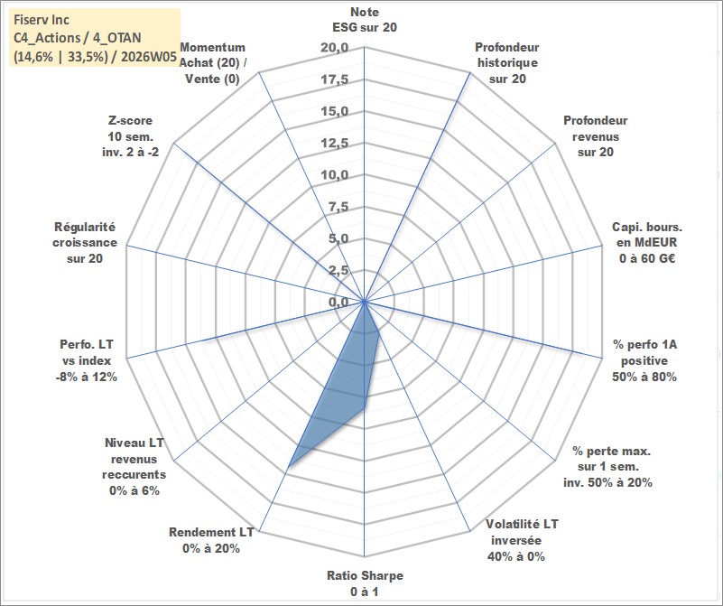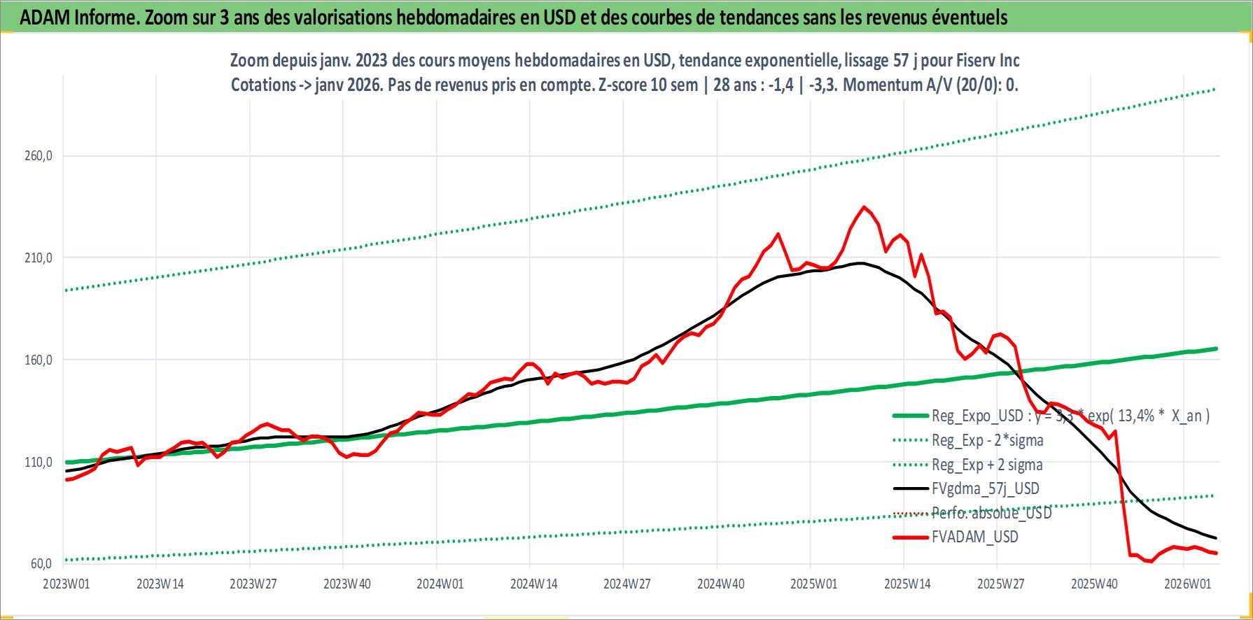 Site dédié aux investisseursPage dédiée sur site financeAnalyse des valorisations hebdomadaires de l'action Fiserv Inc. Cet actif est cote en USD. Les valorisations sont en contrevaleur EURO et couvrent les semaines 1997W01 a 2026W05. Les revenus de cet actif financier ne sont pas connus car non existants ou non disponibles sur le site Yahoo Finance. La note ESG de cet actif n'est pas connue.