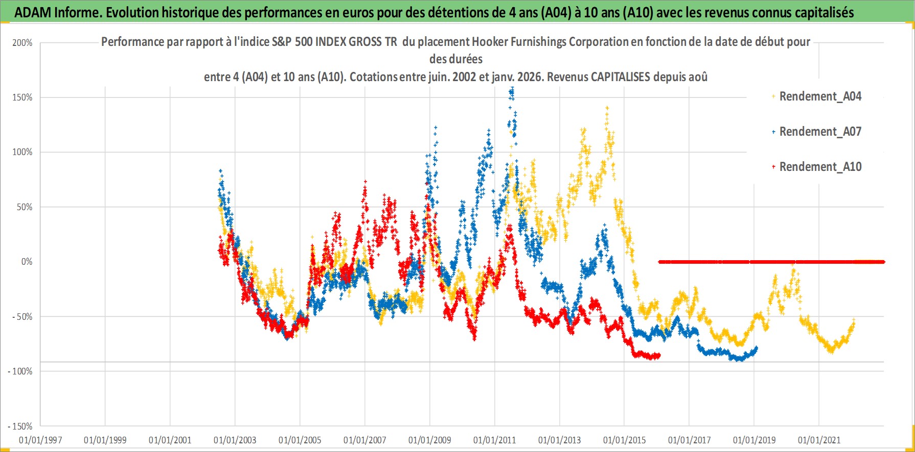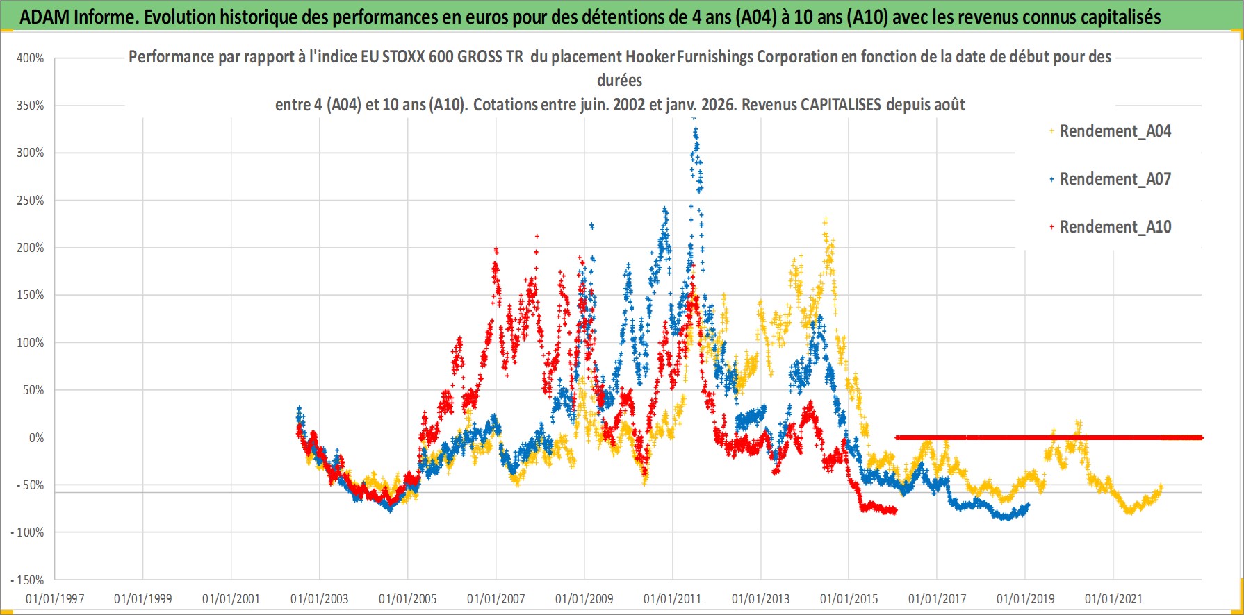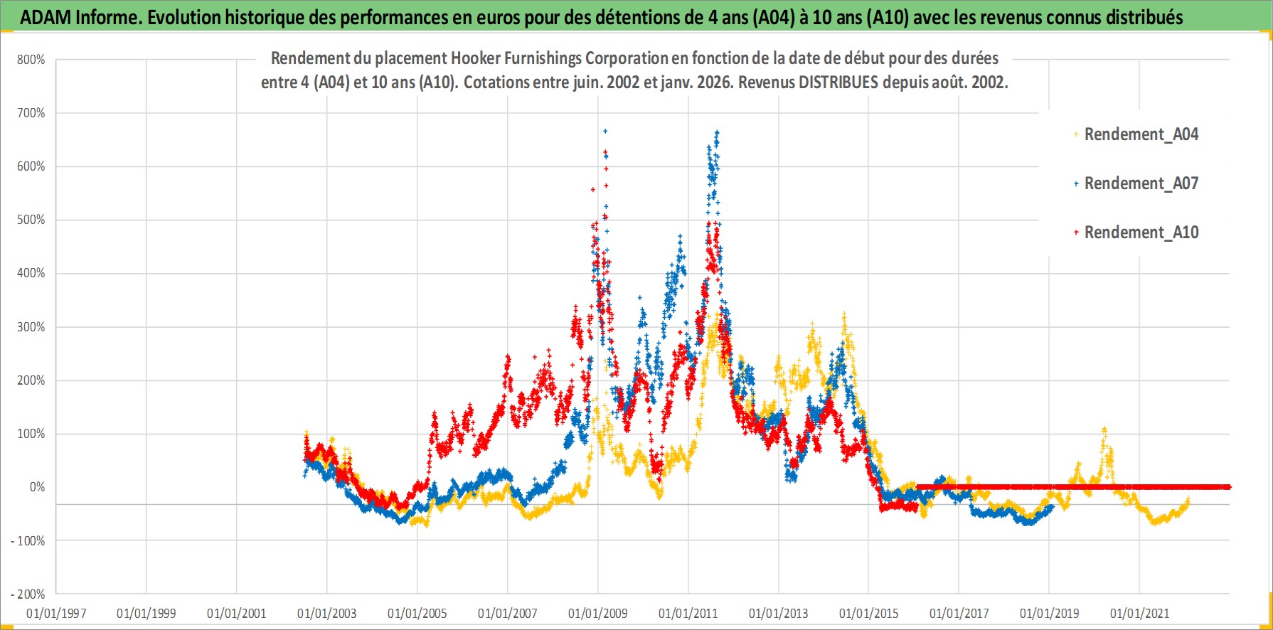 Site dédié aux investisseursPage dédiée sur site financeAnalyse des valorisations hebdomadaires de l'action Hooker Furnishings Corporation. Cet actif est cote en USD. Les valorisations sont en contrevaleur EURO et couvrent les semaines 2002W26 a 2026W05. Les revenus de cet actif financier sont pris en compte depuis la semaine 2002W33. La note ESG de cet actif n'est pas connue.