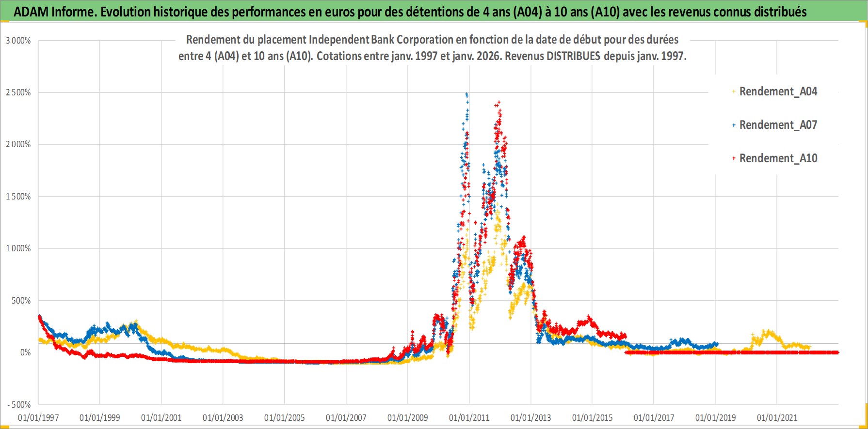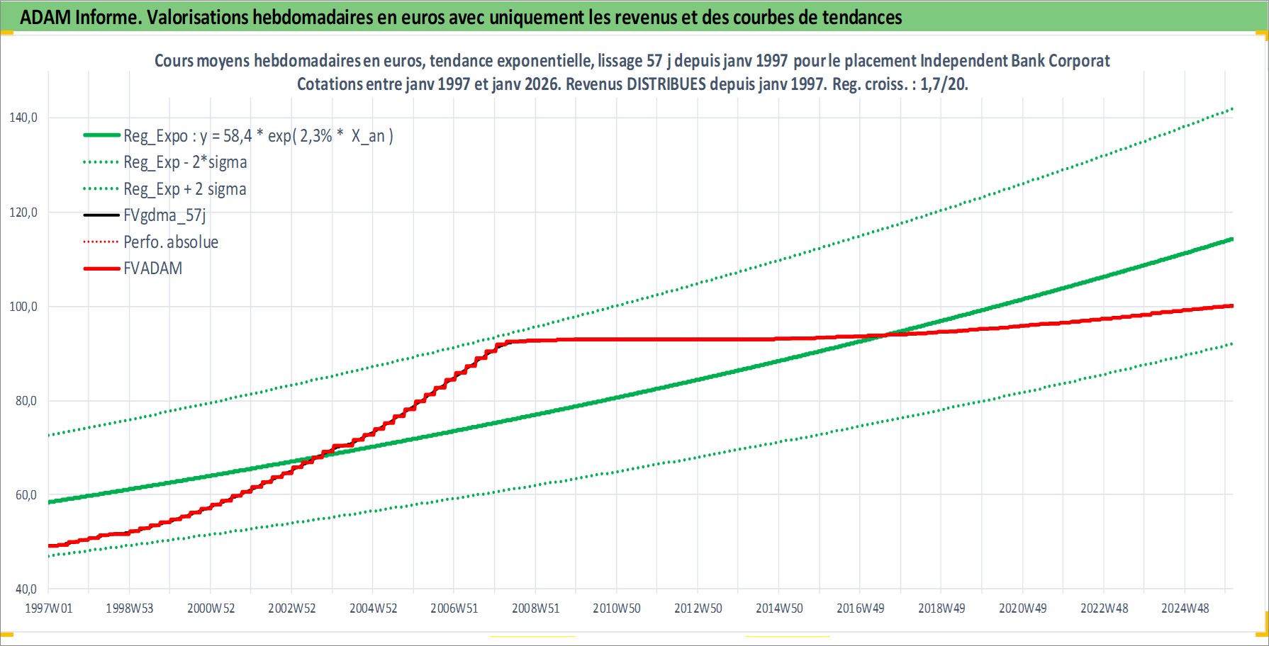 Site dédié aux investisseursPage dédiée sur site financeAnalyse des valorisations hebdomadaires de l'action Independent Bank Corporation. Cet actif est cote en USD. Les valorisations sont en contrevaleur EURO et couvrent les semaines 1997W01 a 2026W05. Les revenus de cet actif financier sont pris en compte depuis la semaine 1997W01. La note ESG de cet actif n'est pas connue.