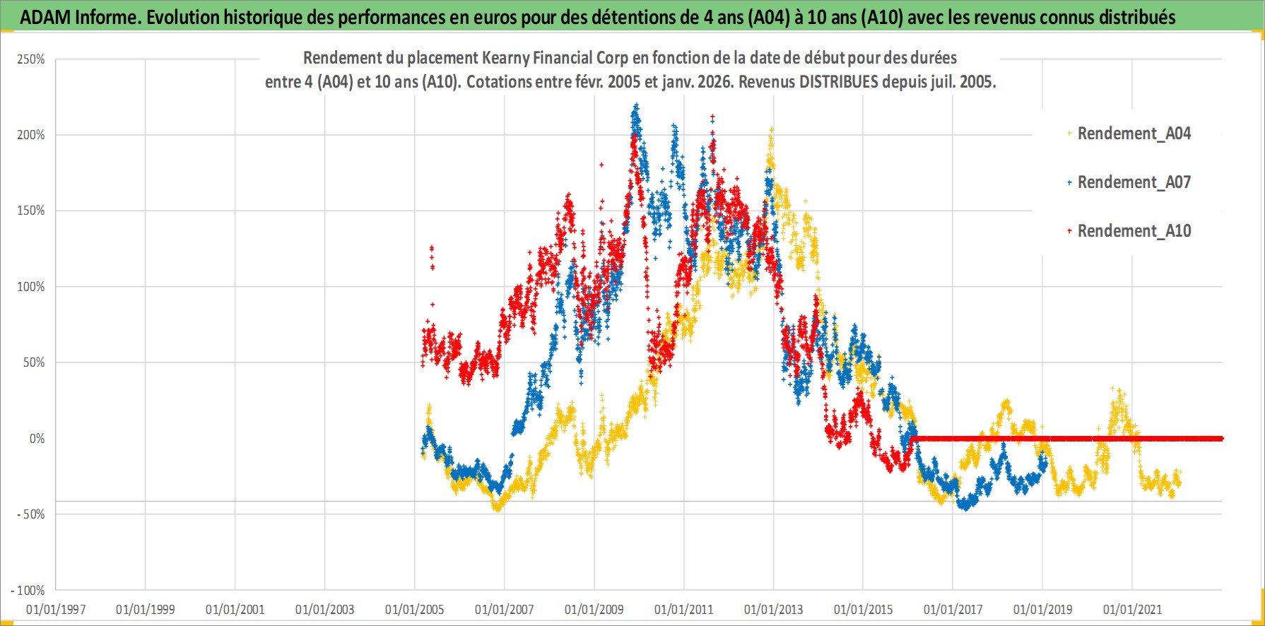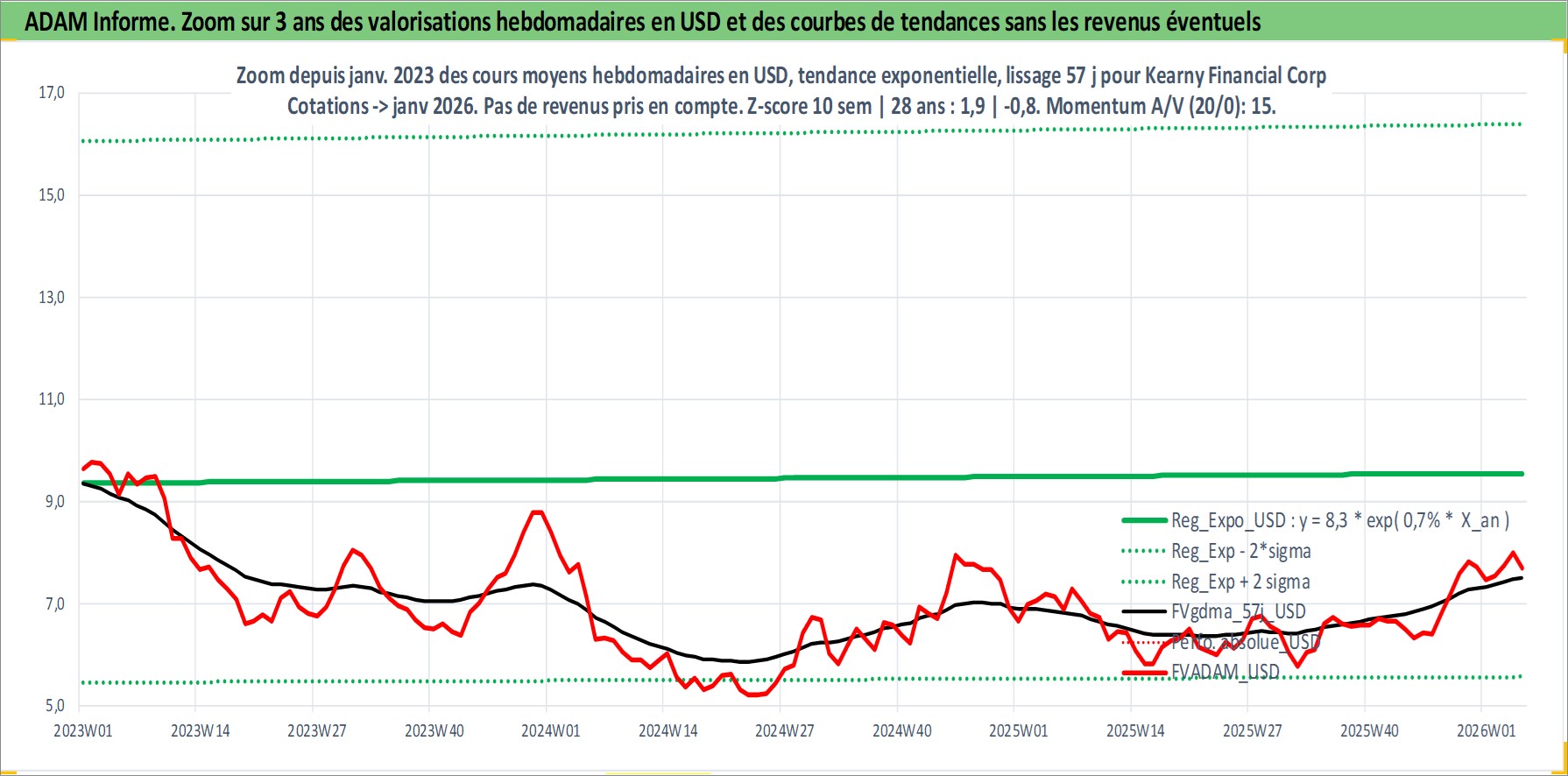 Site dédié aux investisseursPage dédiée sur site financeAnalyse des valorisations hebdomadaires de l'action Kearny Financial Corp. Cet actif est cote en USD. Les valorisations sont en contrevaleur EURO et couvrent les semaines 2005W08 a 2026W05. Les revenus de cet actif financier sont pris en compte depuis la semaine 2005W28. La note ESG de cet actif n'est pas connue.