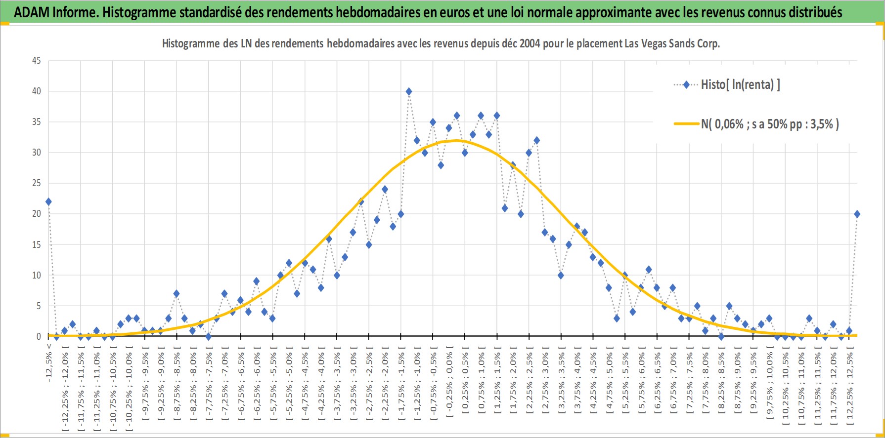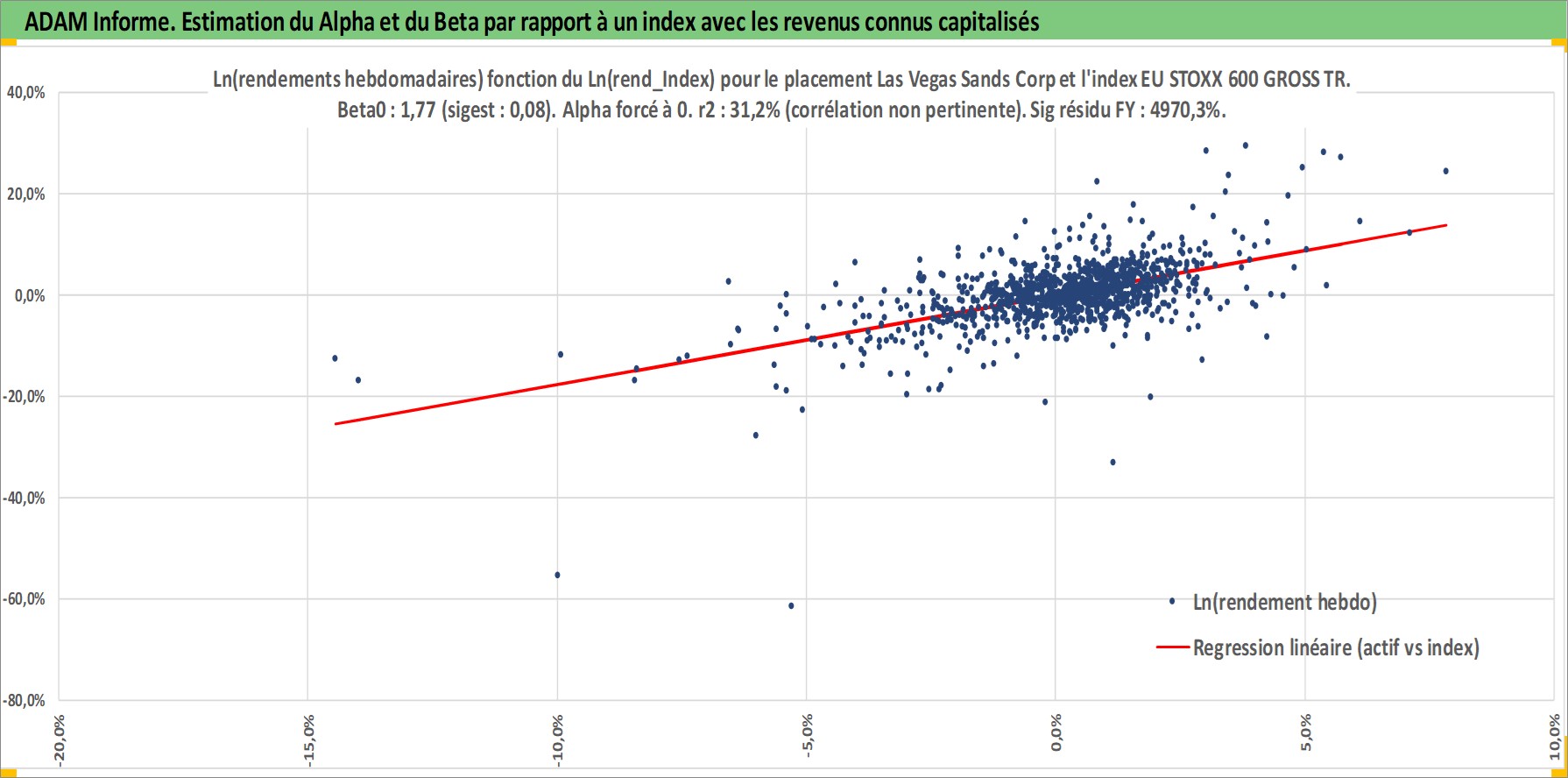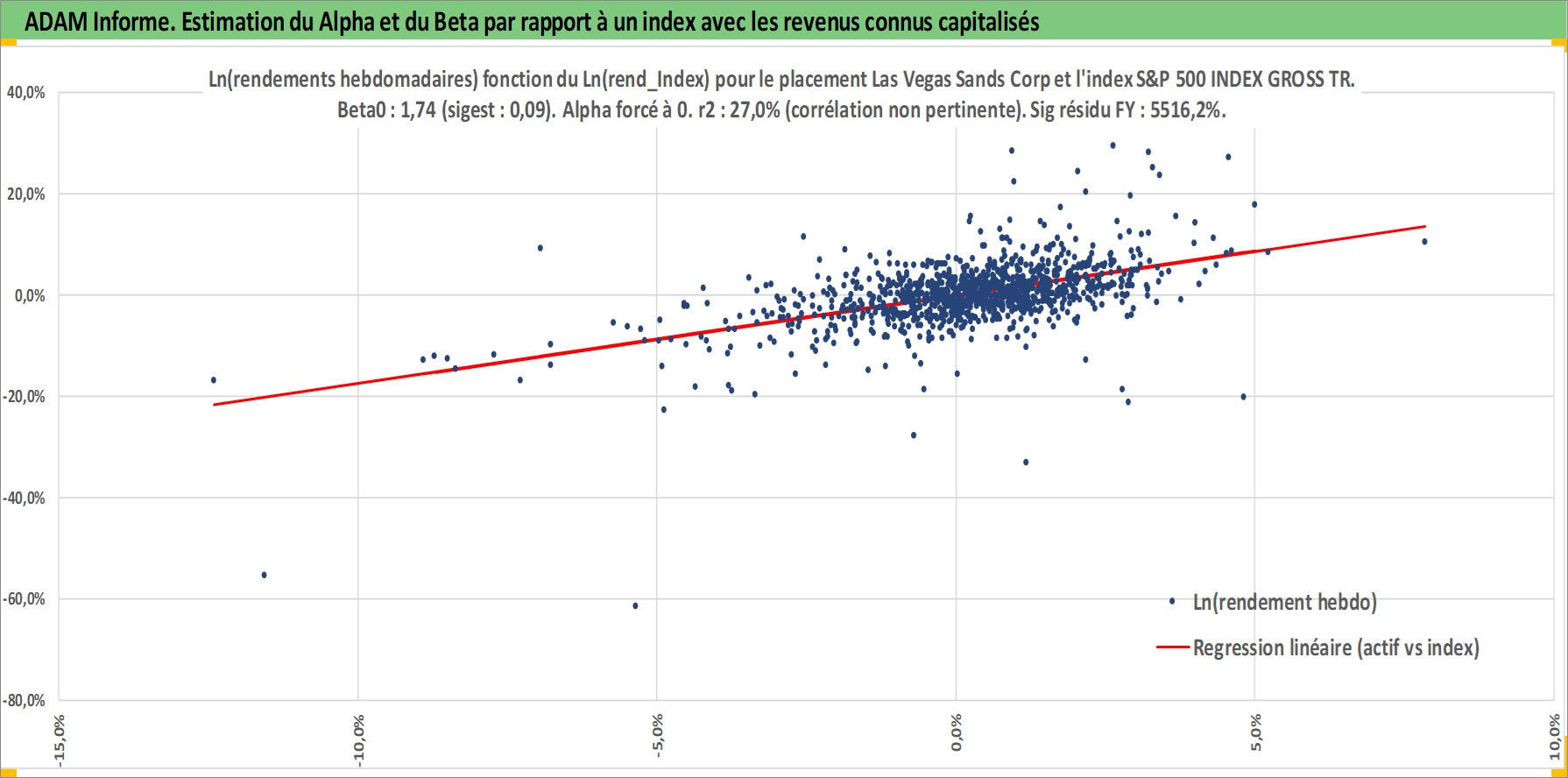Site dédié aux investisseursPage dédiée sur site financeAnalyse des valorisations hebdomadaires de l'action Las Vegas Sands Corp. Cet actif est cote en USD. Les valorisations sont en contrevaleur EURO et couvrent les semaines 2004W51 a 2026W05. Les revenus de cet actif financier sont pris en compte depuis la semaine 2012W11. La note globale ESG de cet actif est estimee a 11.0 (apres rebasage entre 0 et 20).