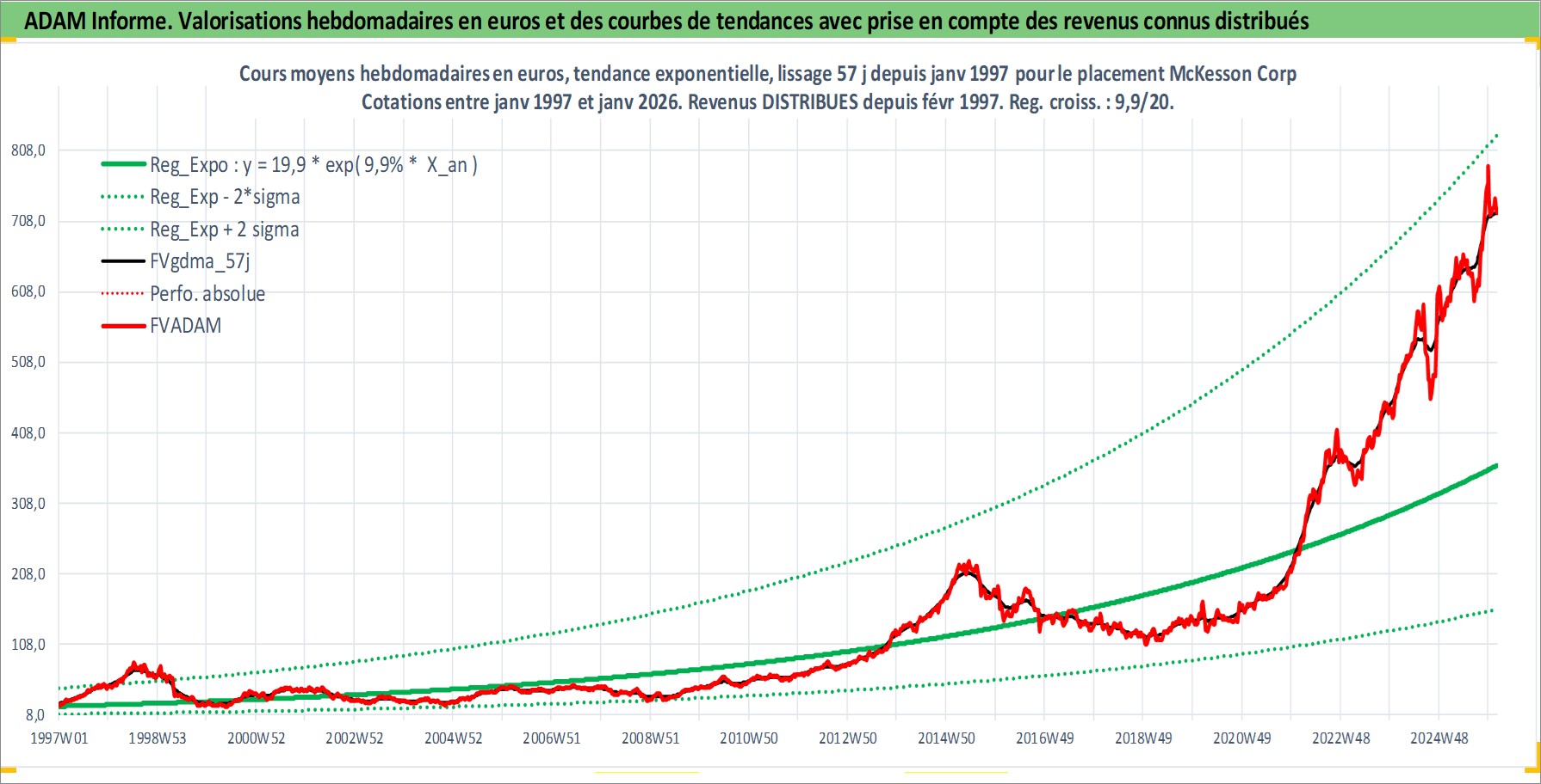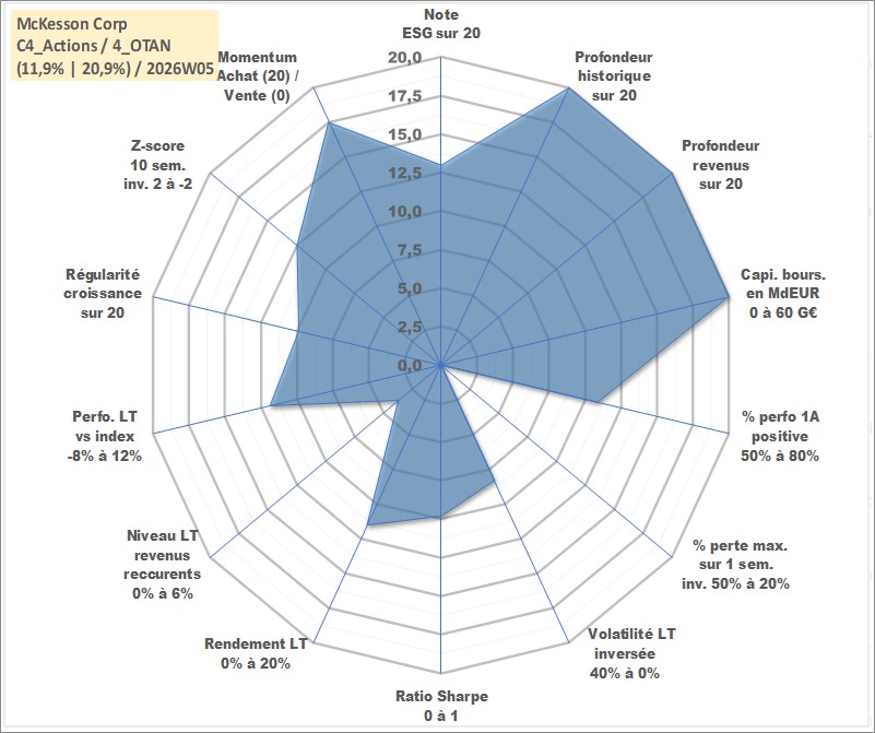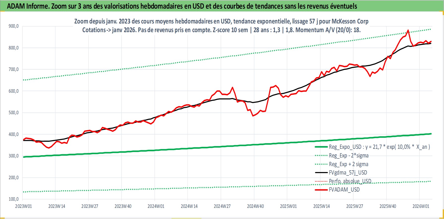 Site dédié aux investisseursPage dédiée sur site financeAnalyse des valorisations hebdomadaires de l'action McKesson Corp. Cet actif est cote en USD. Les valorisations sont en contrevaleur EURO et couvrent les semaines 1997W01 a 2026W05. Les revenus de cet actif financier sont pris en compte depuis la semaine 1997W09. La note globale ESG de cet actif est estimee a 13.0 (apres rebasage entre 0 et 20).