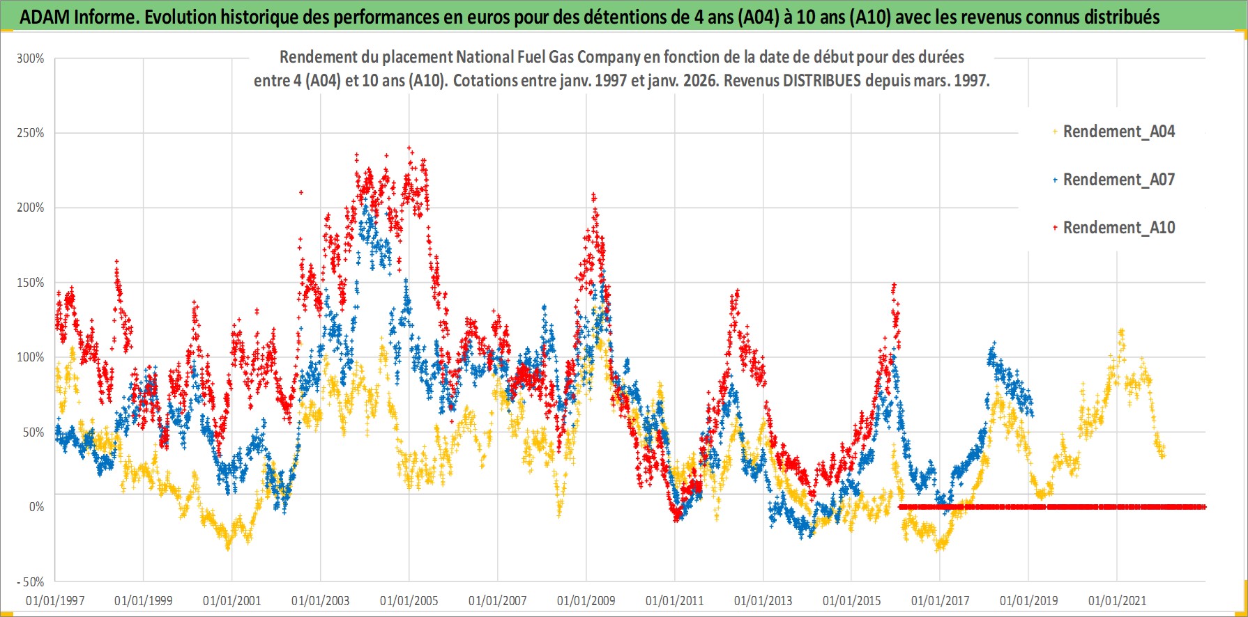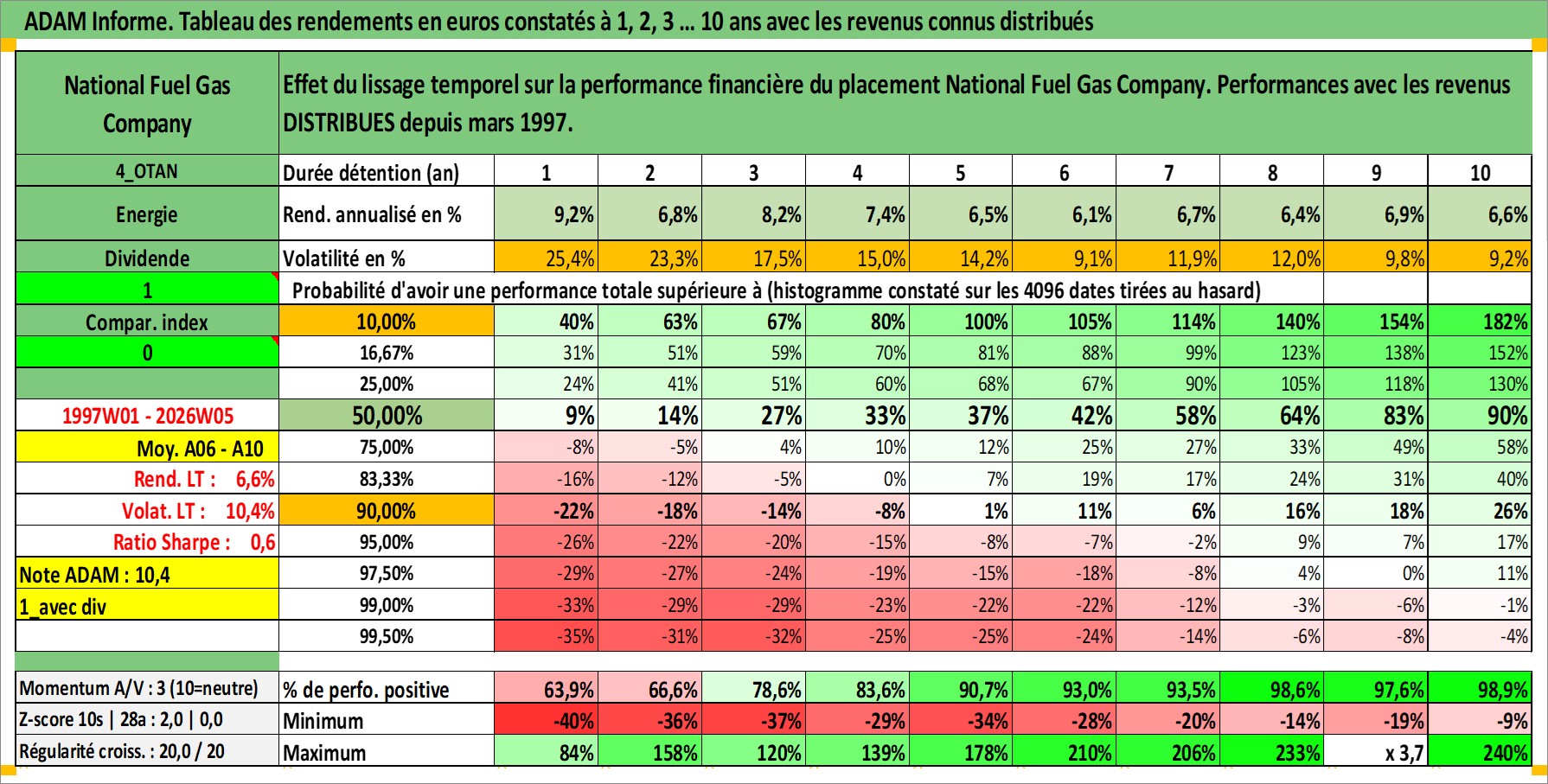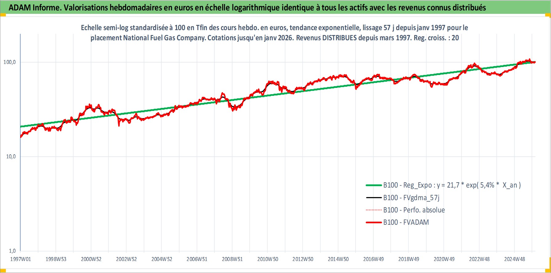 Site dédié aux investisseursPage dédiée sur site financeAnalyse des valorisations hebdomadaires de l'action National Fuel Gas Company. Cet actif est cote en USD. Les valorisations sont en contrevaleur EURO et couvrent les semaines 1997W01 a 2026W05. Les revenus de cet actif financier sont pris en compte depuis la semaine 1997W13. La note ESG de cet actif n'est pas connue.