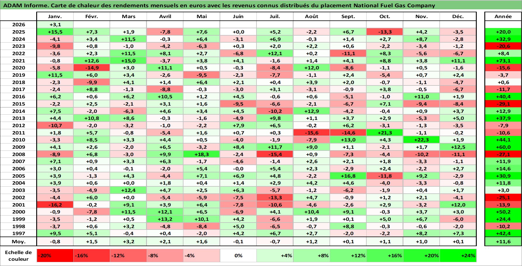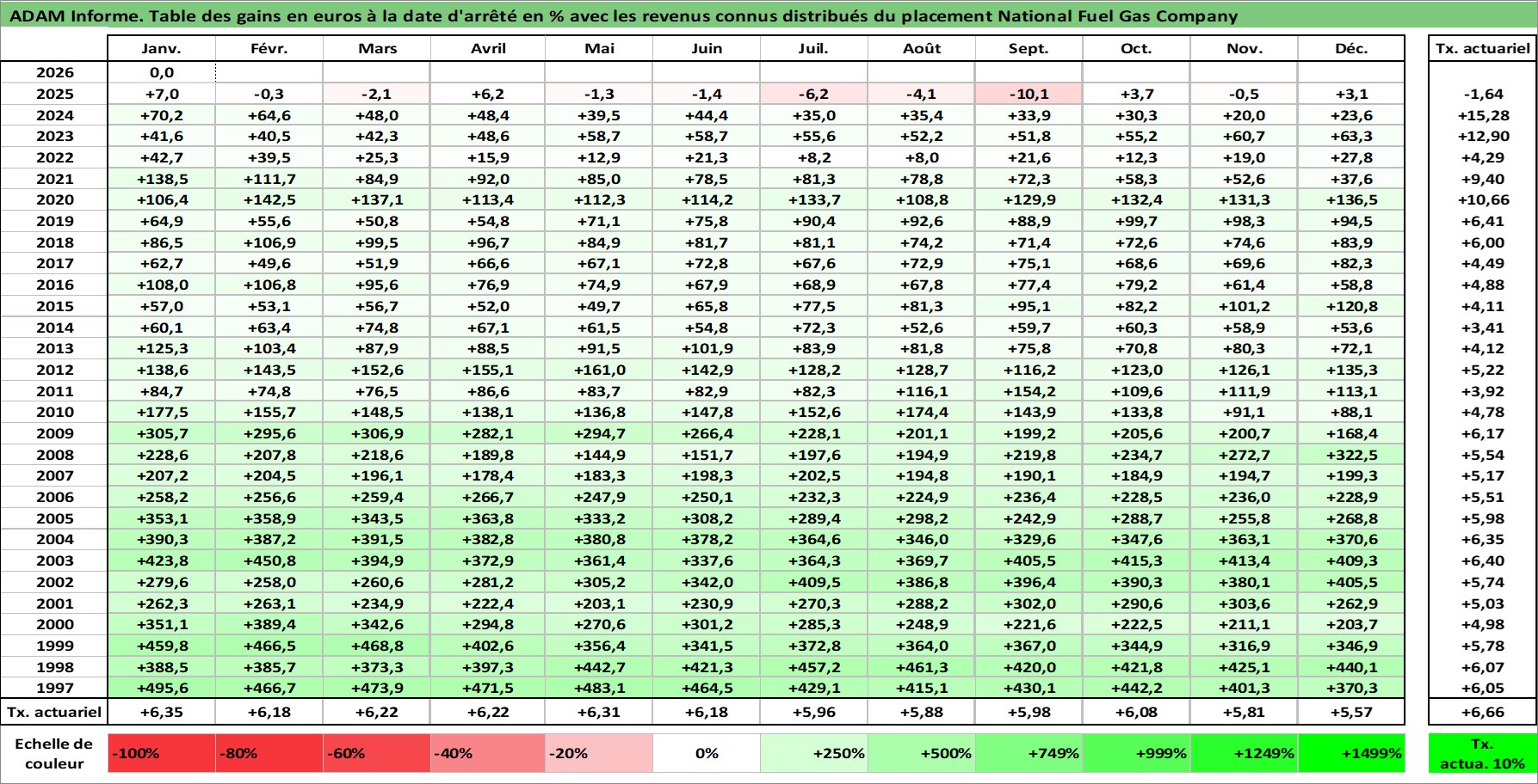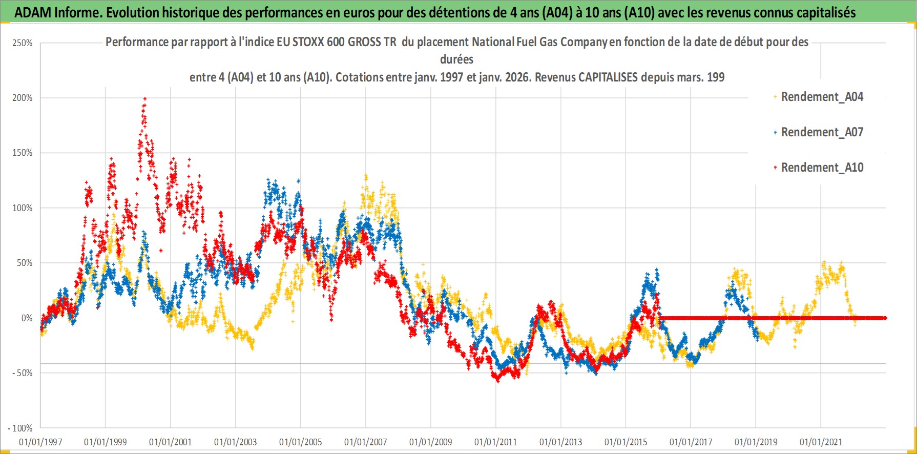 Site dédié aux investisseursPage dédiée sur site financeAnalyse des valorisations hebdomadaires de l'action National Fuel Gas Company. Cet actif est cote en USD. Les valorisations sont en contrevaleur EURO et couvrent les semaines 1997W01 a 2026W05. Les revenus de cet actif financier sont pris en compte depuis la semaine 1997W13. La note ESG de cet actif n'est pas connue.