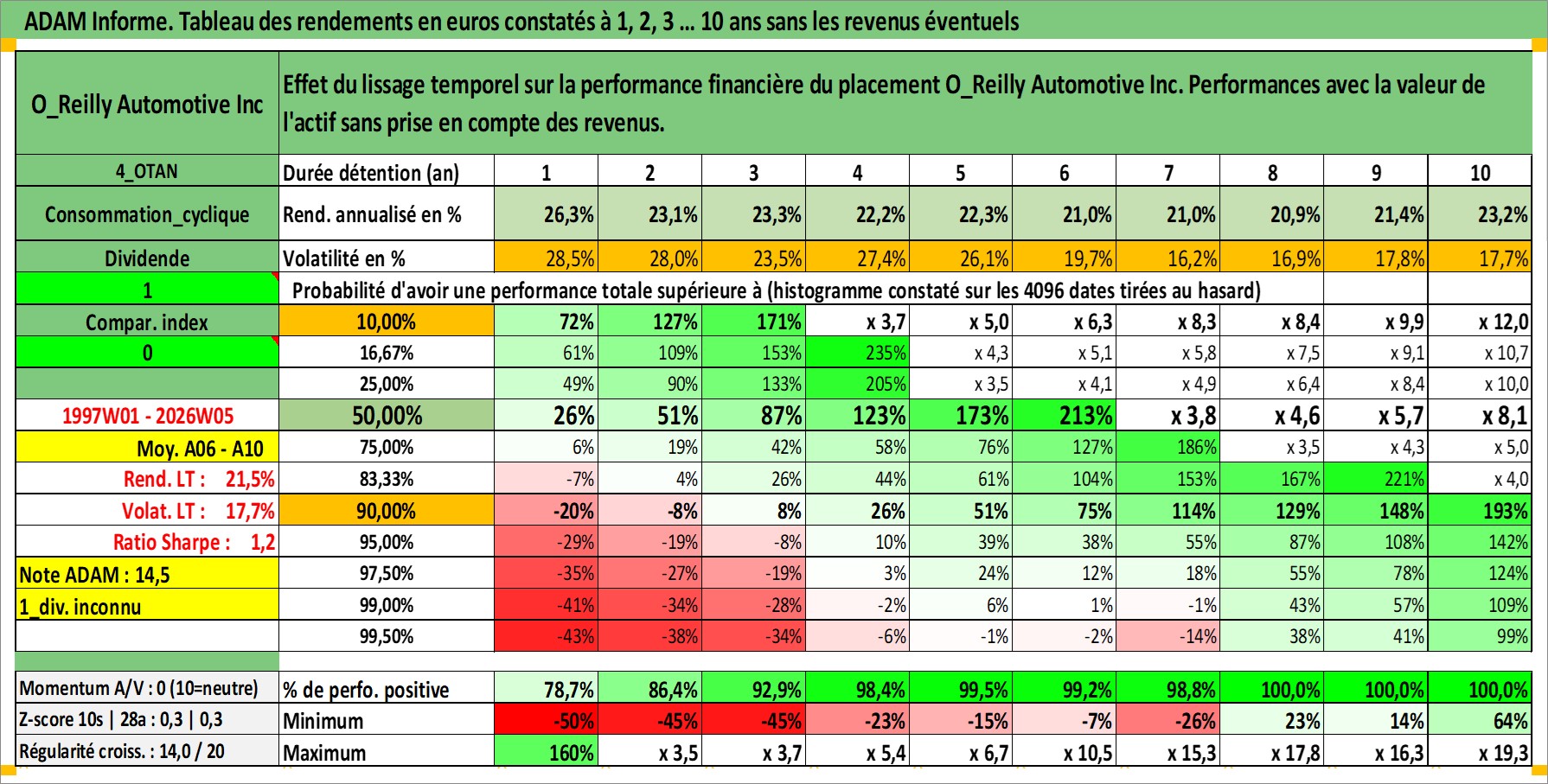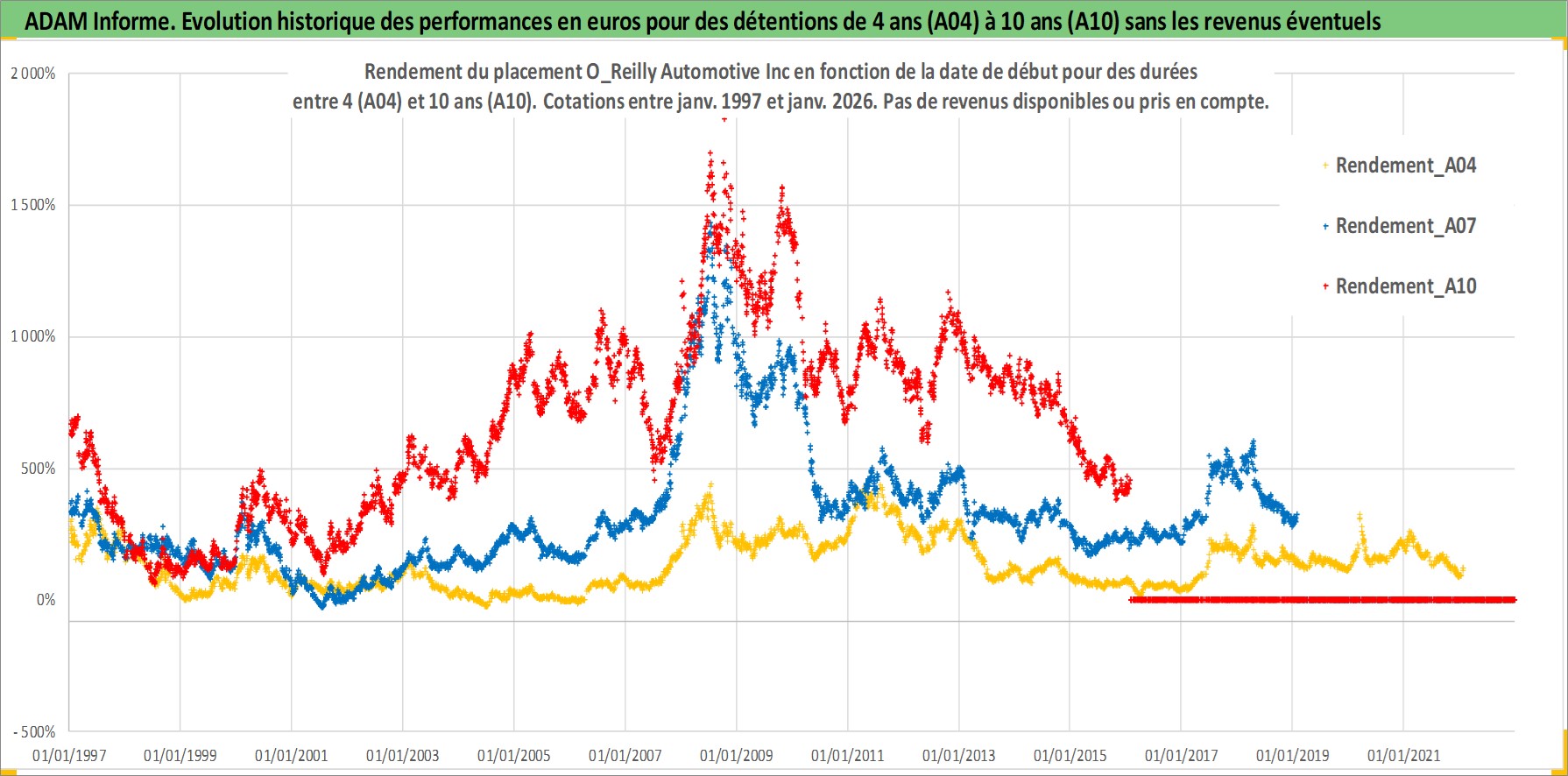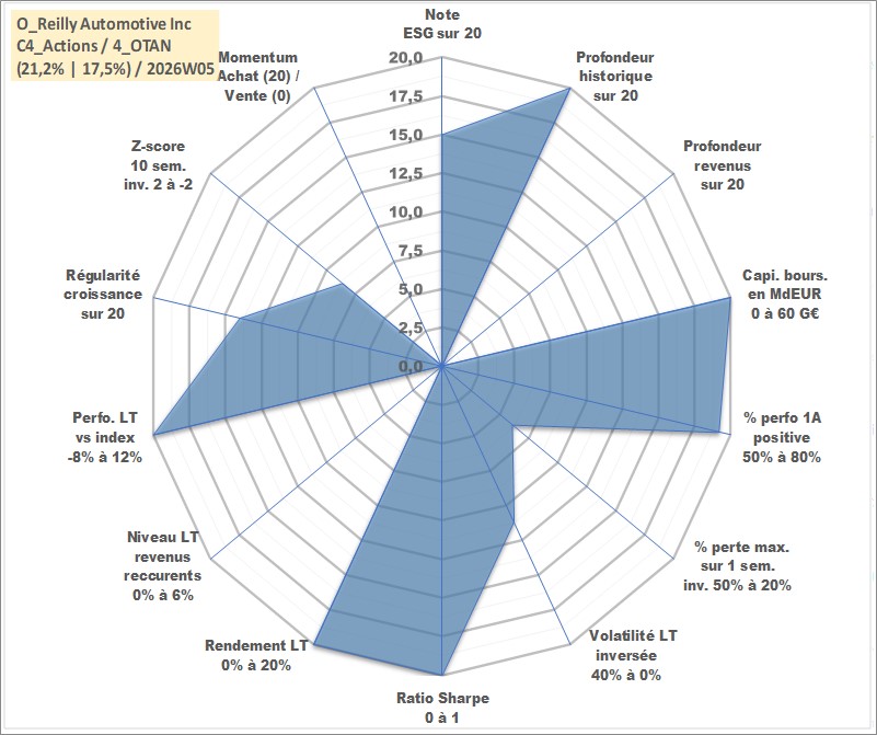 Site dédié aux investisseursPage dédiée sur site financeAnalyse des valorisations hebdomadaires de l'action O_Reilly Automotive Inc. Cet actif est cote en USD. Les valorisations sont en contrevaleur EURO et couvrent les semaines 1997W01 a 2026W05. Les revenus de cet actif financier ne sont pas connus car non existants ou non disponibles sur le site Yahoo Finance. La note globale ESG de cet actif est estimee a 15.0 (apres rebasage entre 0 et 20).