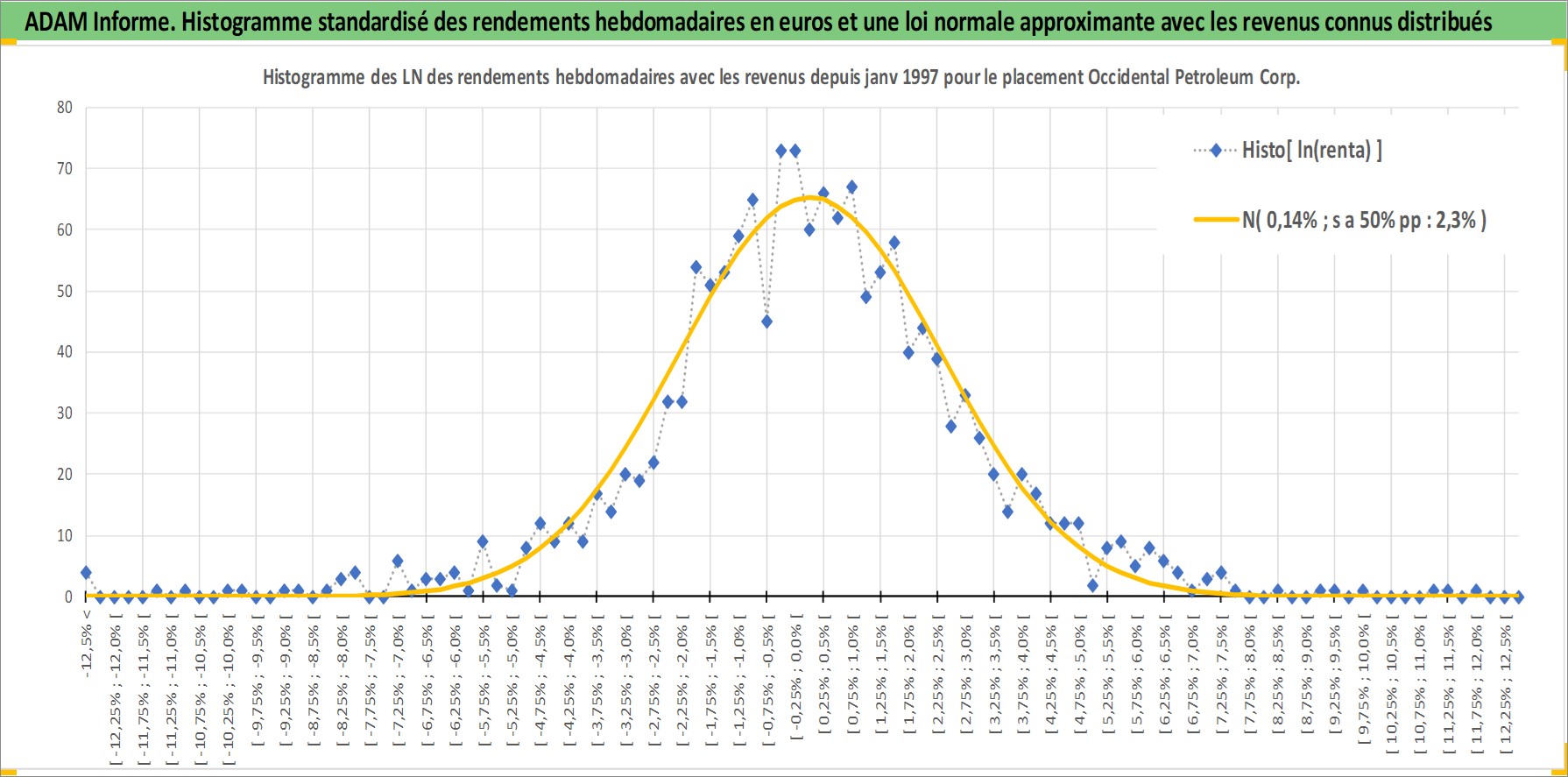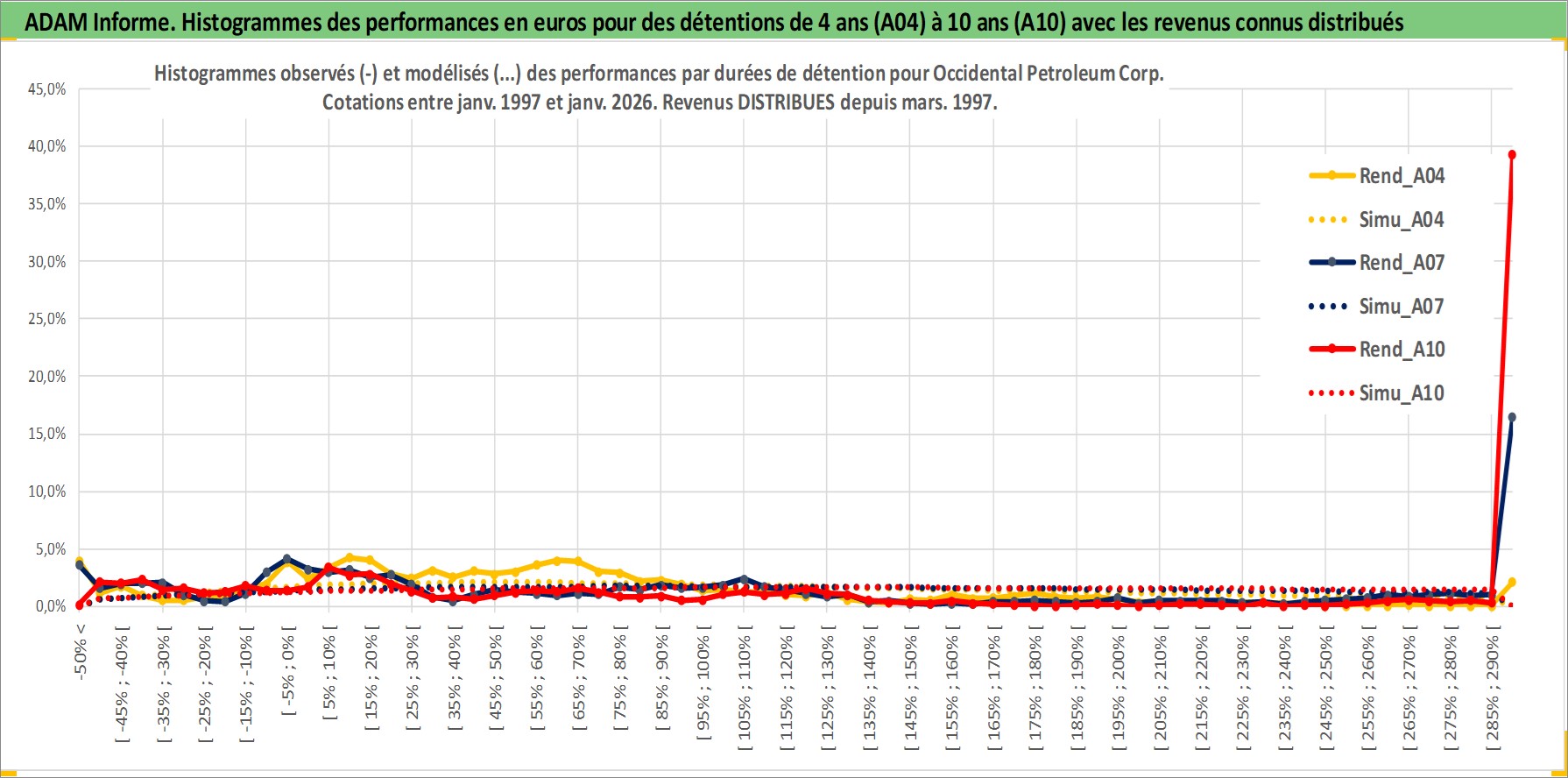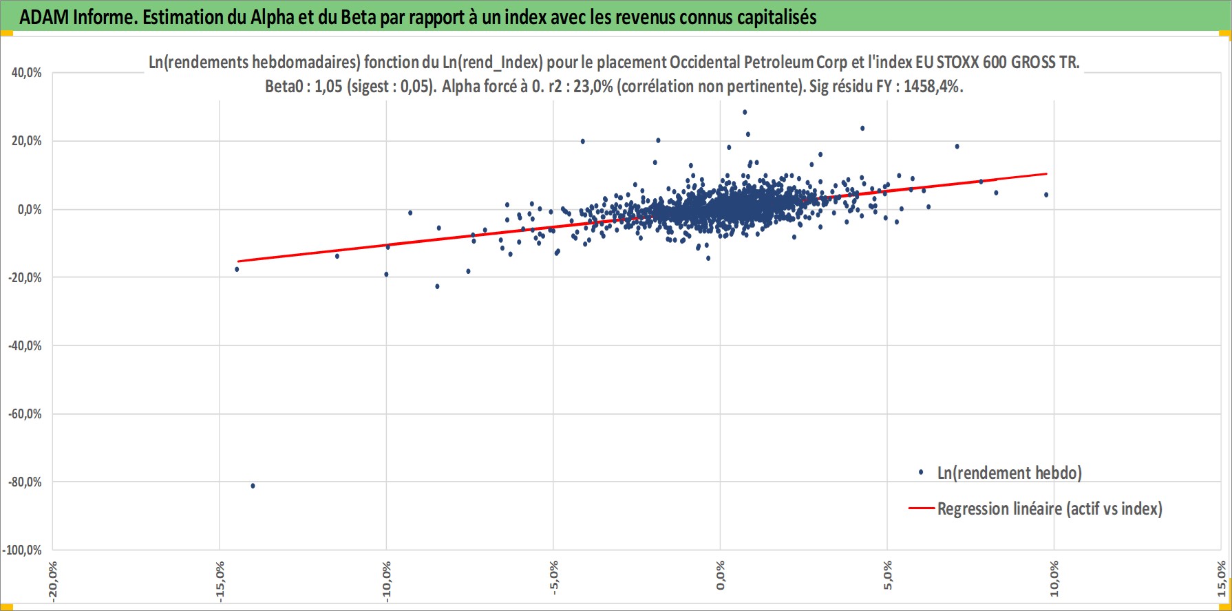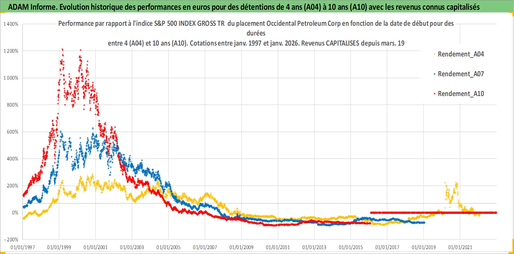 Site dédié aux investisseursPage dédiée sur site financeAnalyse des valorisations hebdomadaires de l'action Occidental Petroleum Corp. Cet actif est cote en USD. Les valorisations sont en contrevaleur EURO et couvrent les semaines 1997W01 a 2026W05. Les revenus de cet actif financier sont pris en compte depuis la semaine 1997W10. La note globale ESG de cet actif est estimee a 1.0 (apres rebasage entre 0 et 20).