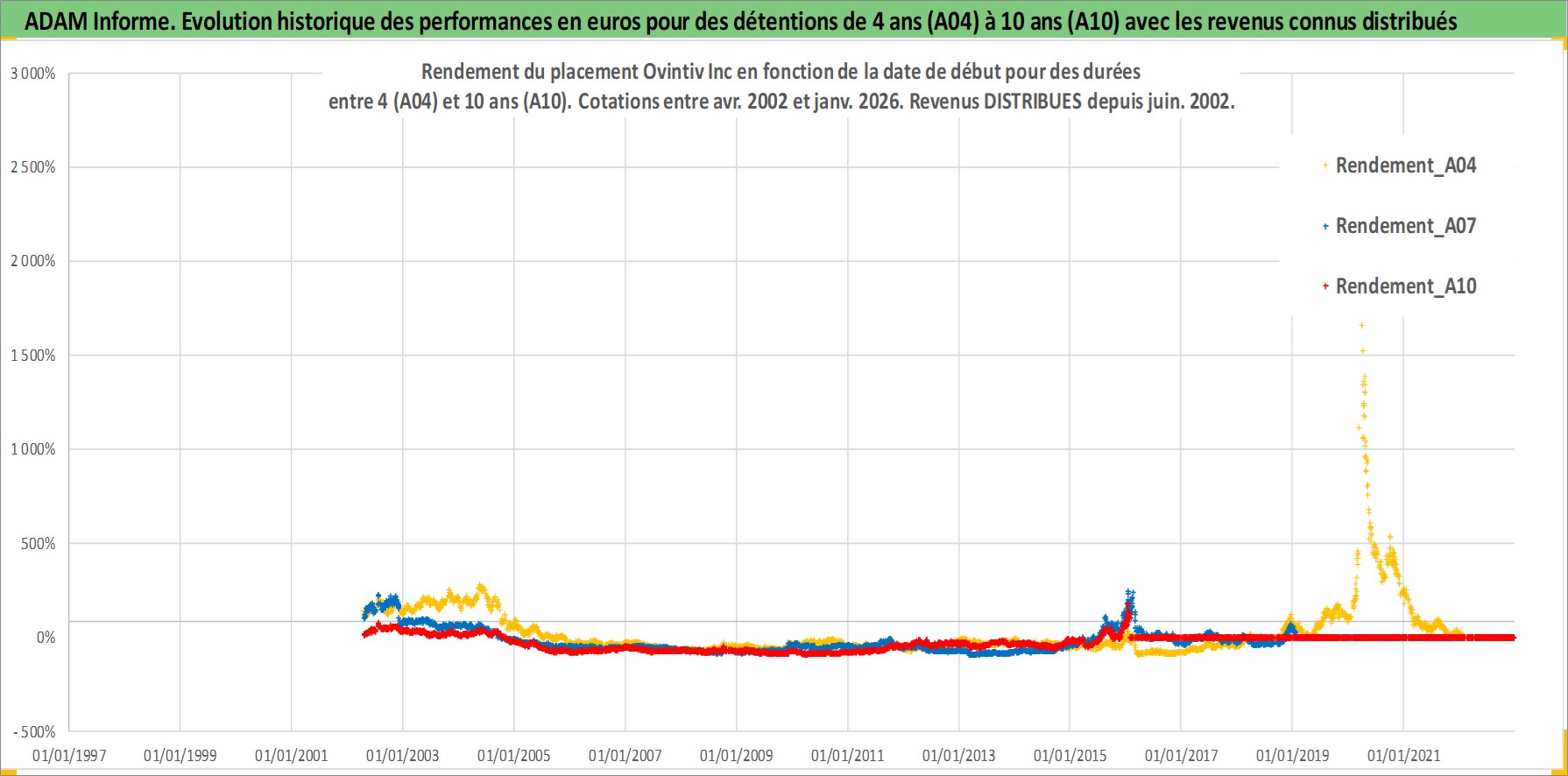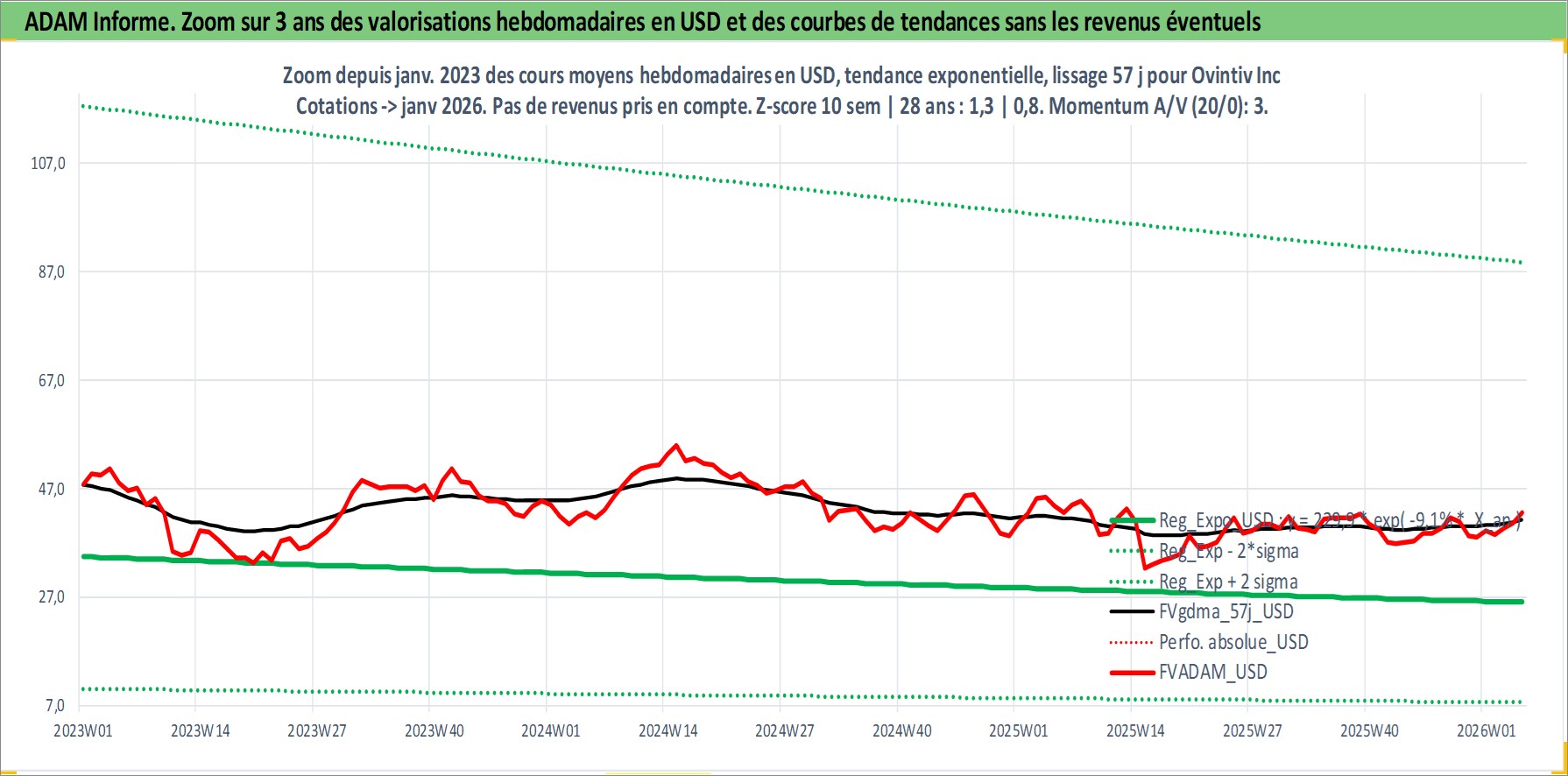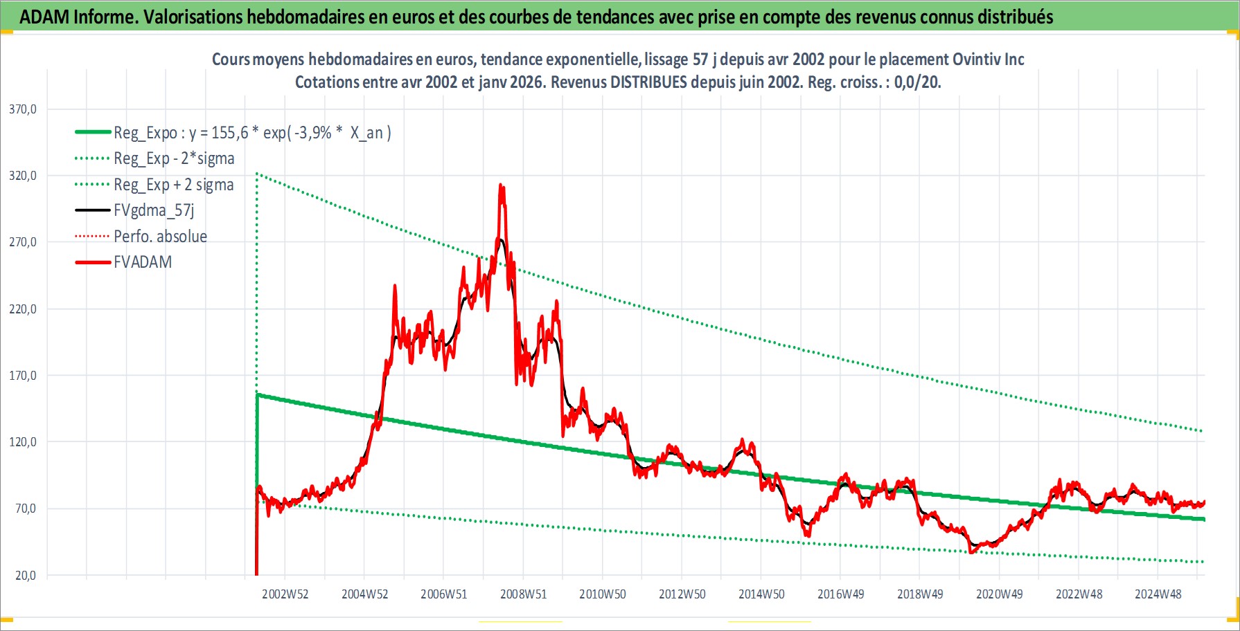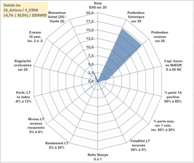 Site dédié aux investisseursPage dédiée sur site financeAnalyse des valorisations hebdomadaires de l'action Ovintiv Inc. Cet actif est cote en USD. Les valorisations sont en contrevaleur EURO et couvrent les semaines 2002W15 a 2026W05. Les revenus de cet actif financier sont pris en compte depuis la semaine 2002W24. La note ESG de cet actif n'est pas connue.