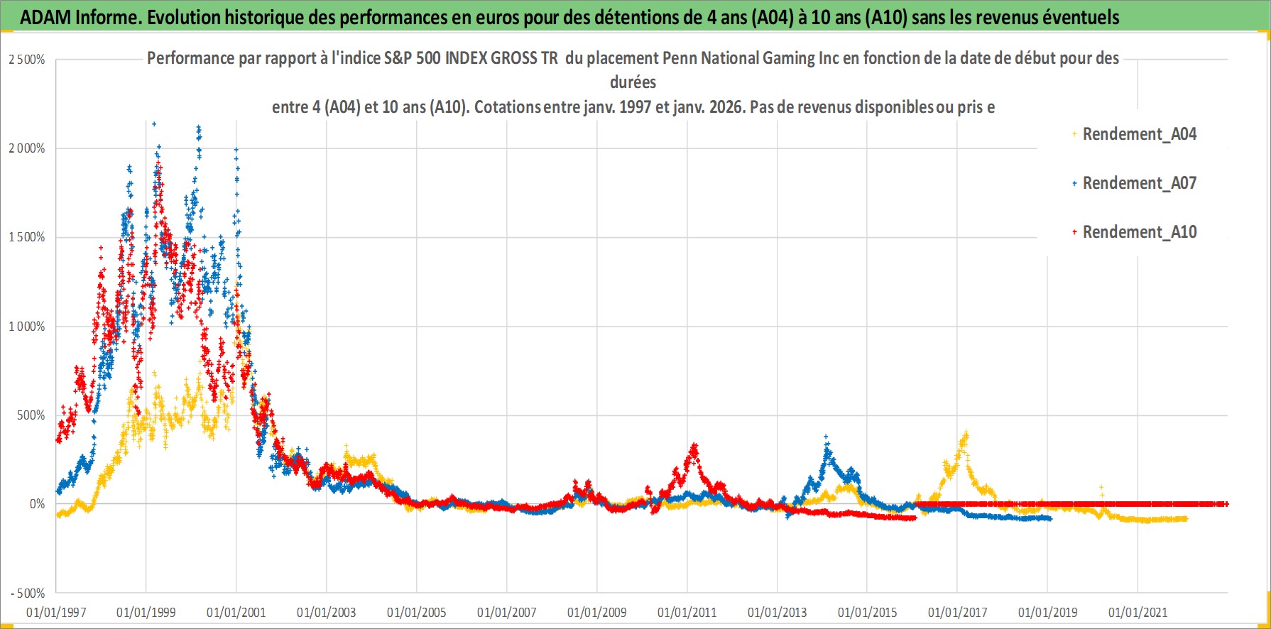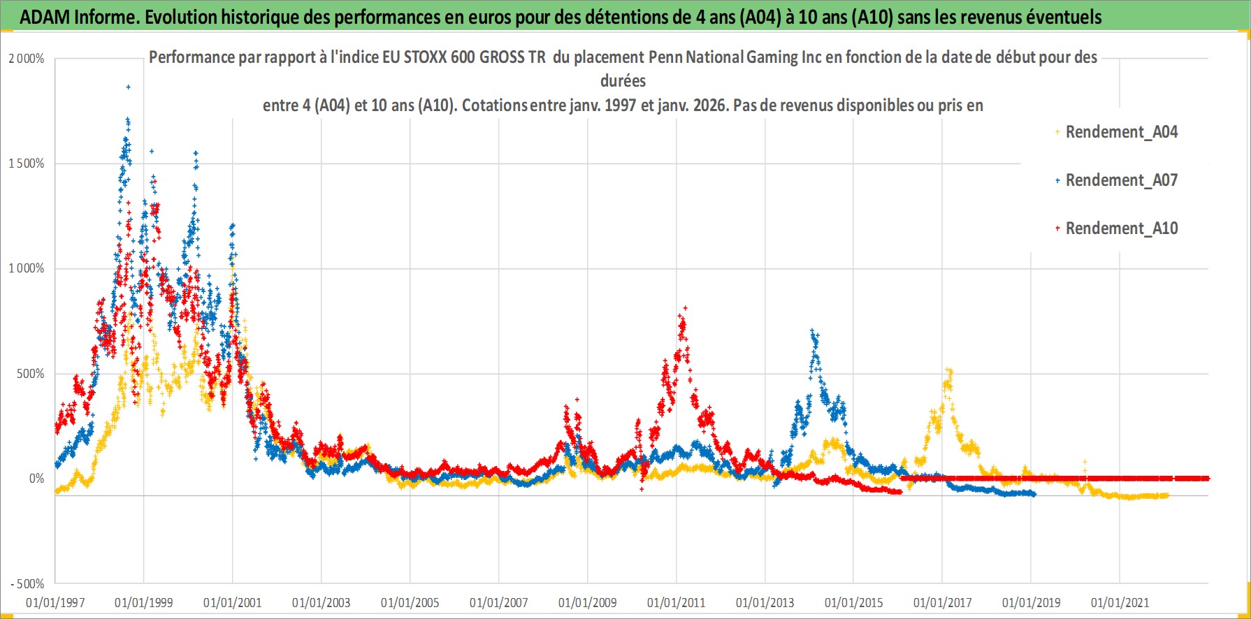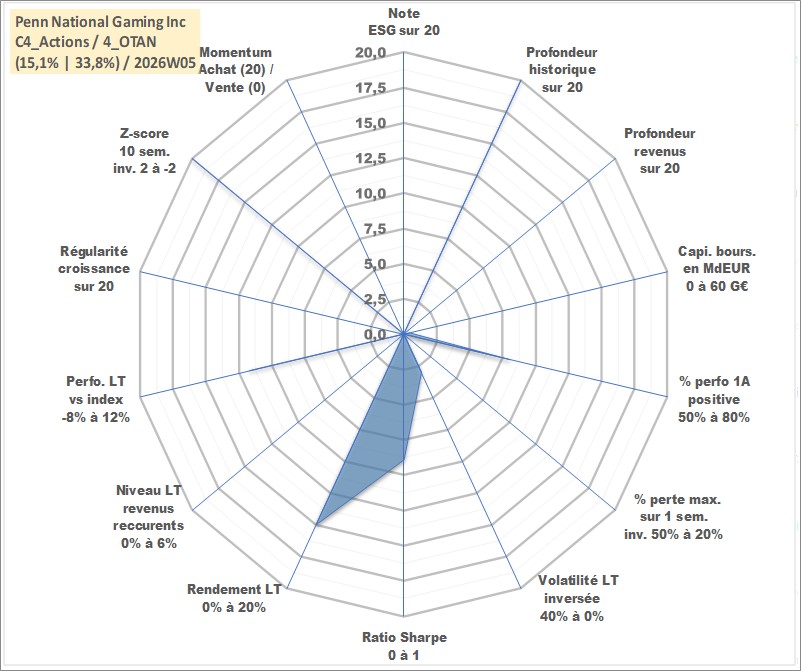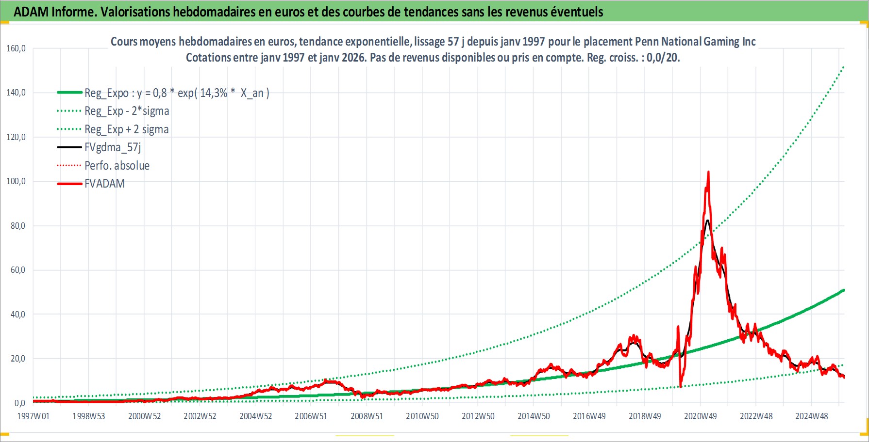 Site dédié aux investisseursPage dédiée sur site financeAnalyse des valorisations hebdomadaires de l'action Penn National Gaming Inc. Cet actif est cote en USD. Les valorisations sont en contrevaleur EURO et couvrent les semaines 1997W01 a 2026W05. Les revenus de cet actif financier ne sont pas connus car non existants ou non disponibles sur le site Yahoo Finance. La note ESG de cet actif n'est pas connue.