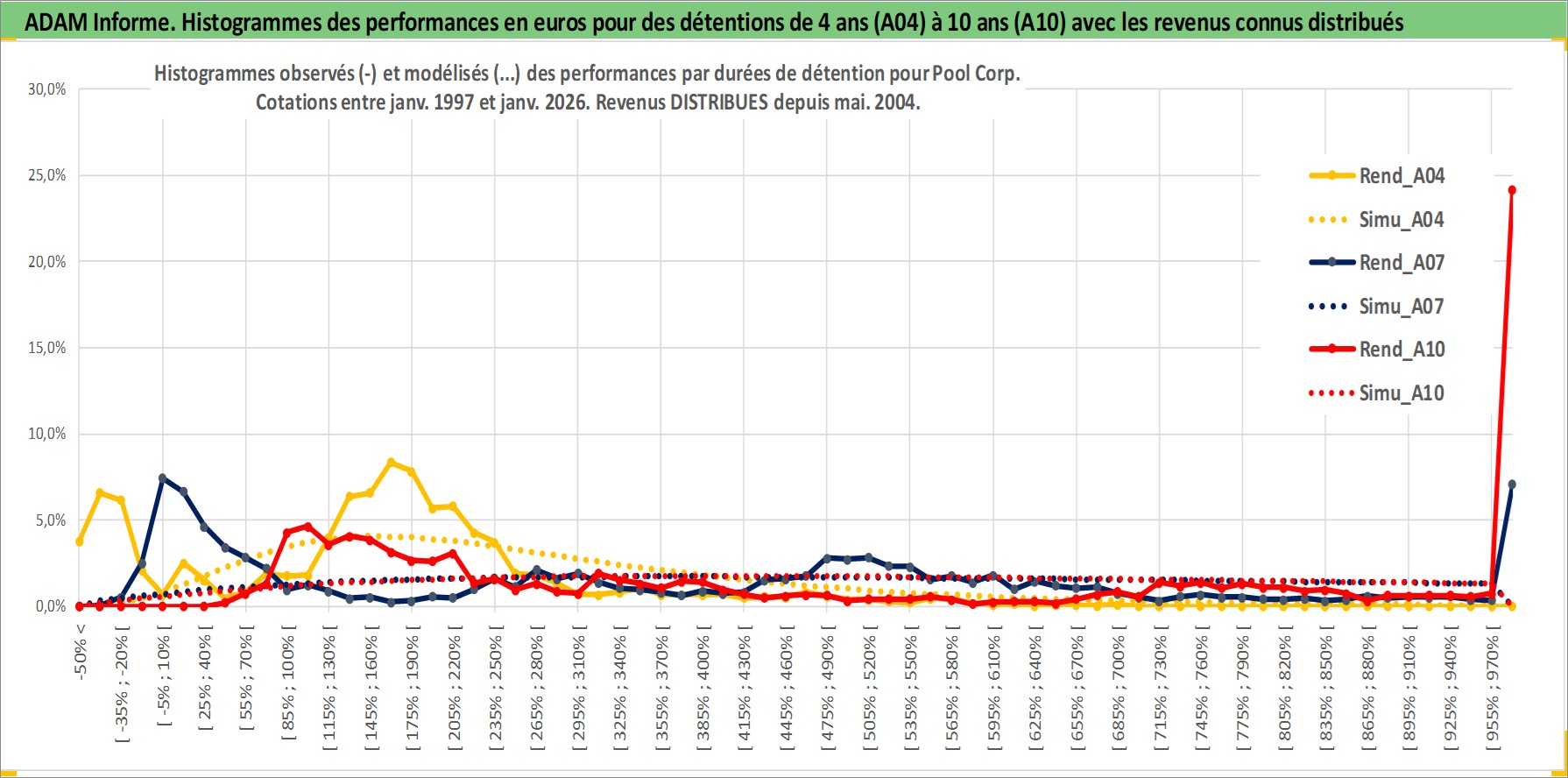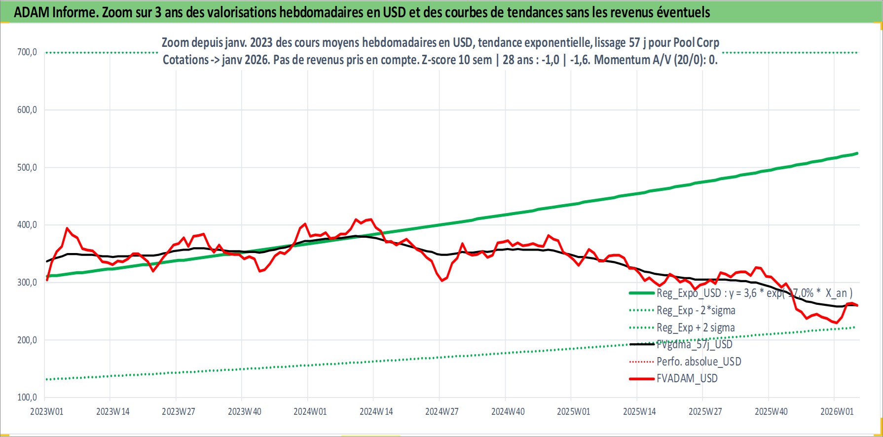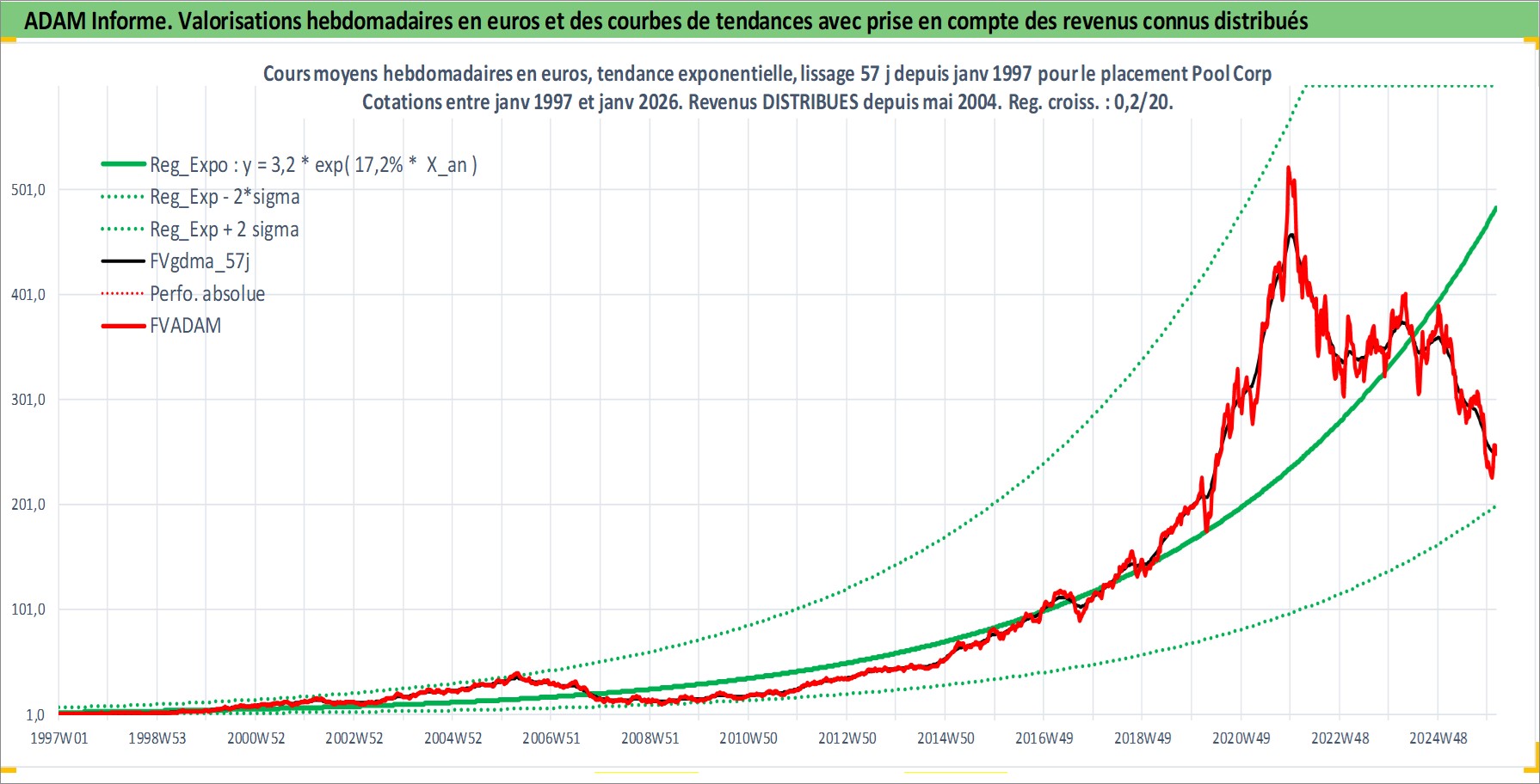 Site dédié aux investisseursPage dédiée sur site financeAnalyse des valorisations hebdomadaires de l'action Pool Corp. Cet actif est cote en USD. Les valorisations sont en contrevaleur EURO et couvrent les semaines 1997W01 a 2026W05. Les revenus de cet actif financier sont pris en compte depuis la semaine 2004W21. La note ESG de cet actif n'est pas connue.