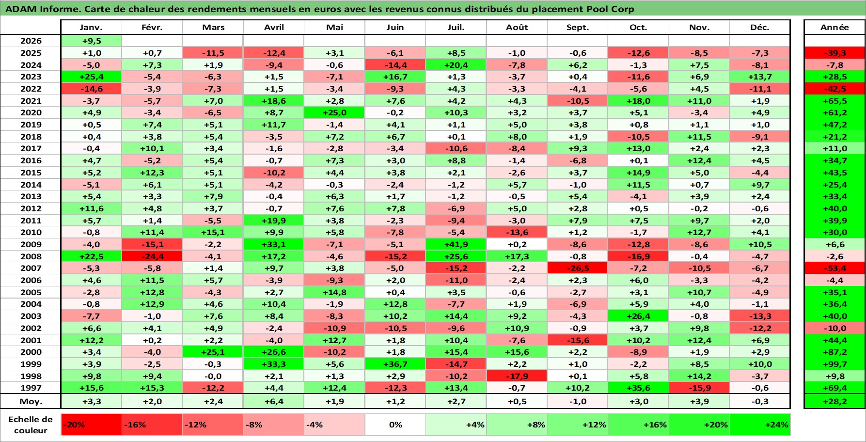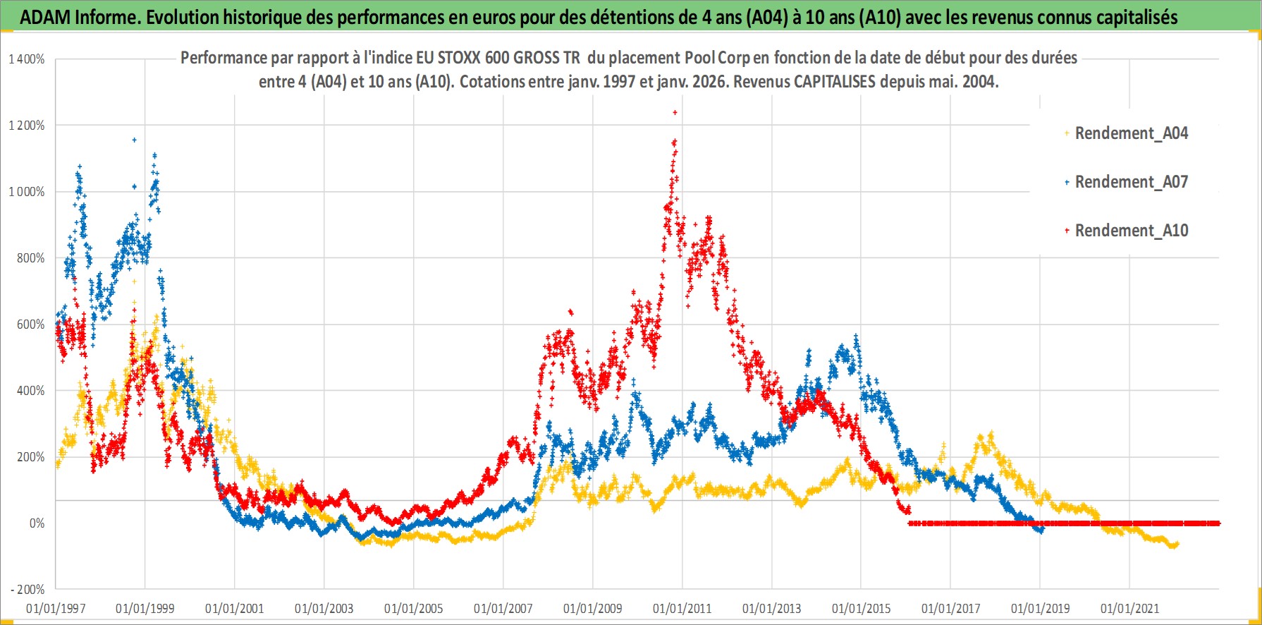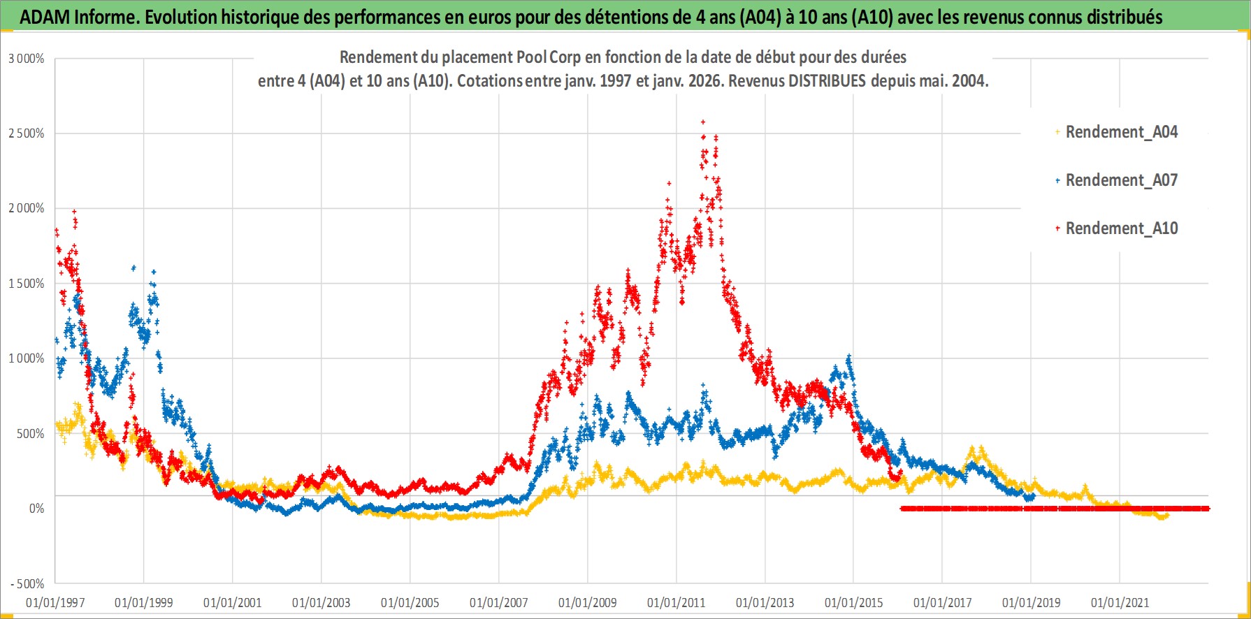 Site dédié aux investisseursPage dédiée sur site financeAnalyse des valorisations hebdomadaires de l'action Pool Corp. Cet actif est cote en USD. Les valorisations sont en contrevaleur EURO et couvrent les semaines 1997W01 a 2026W05. Les revenus de cet actif financier sont pris en compte depuis la semaine 2004W21. La note ESG de cet actif n'est pas connue.