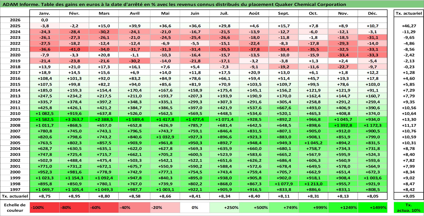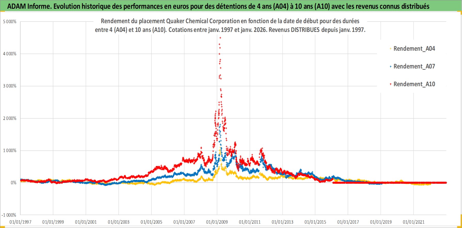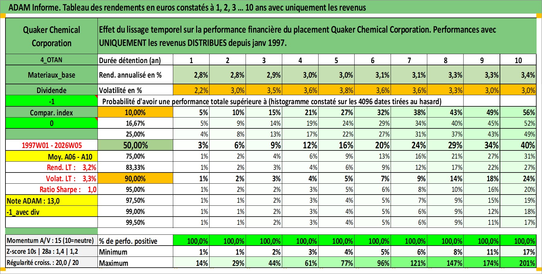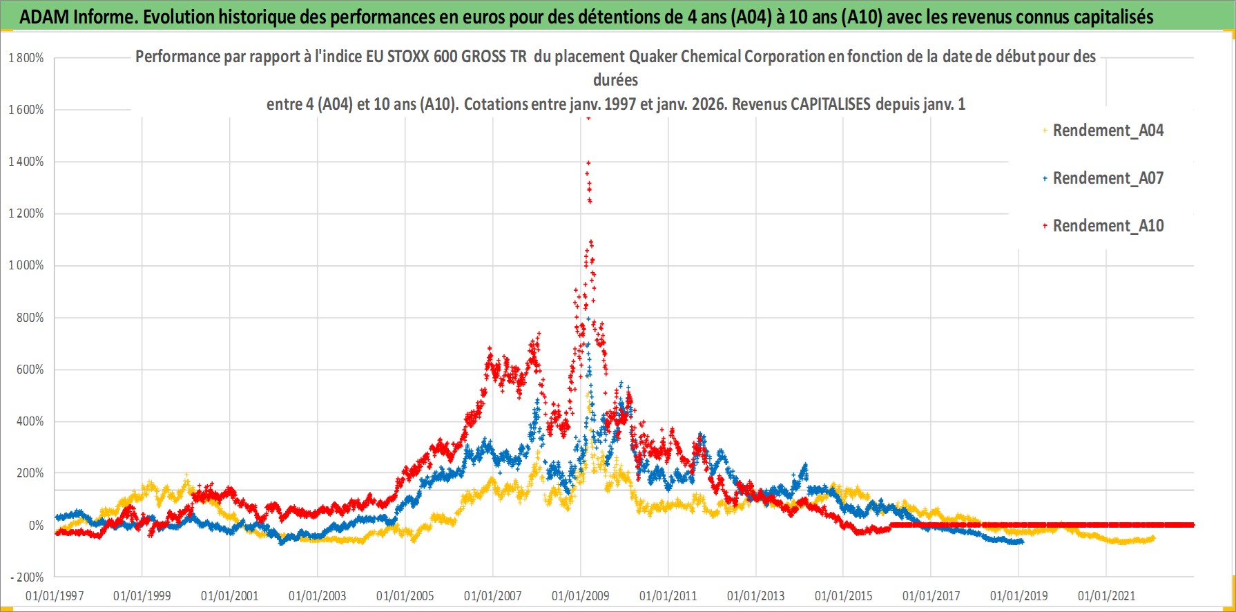 Site dédié aux investisseursPage dédiée sur site financeAnalyse des valorisations hebdomadaires de l'action Quaker Chemical Corporation. Cet actif est cote en USD. Les valorisations sont en contrevaleur EURO et couvrent les semaines 1997W01 a 2026W05. Les revenus de cet actif financier sont pris en compte depuis la semaine 1997W03. La note ESG de cet actif n'est pas connue.