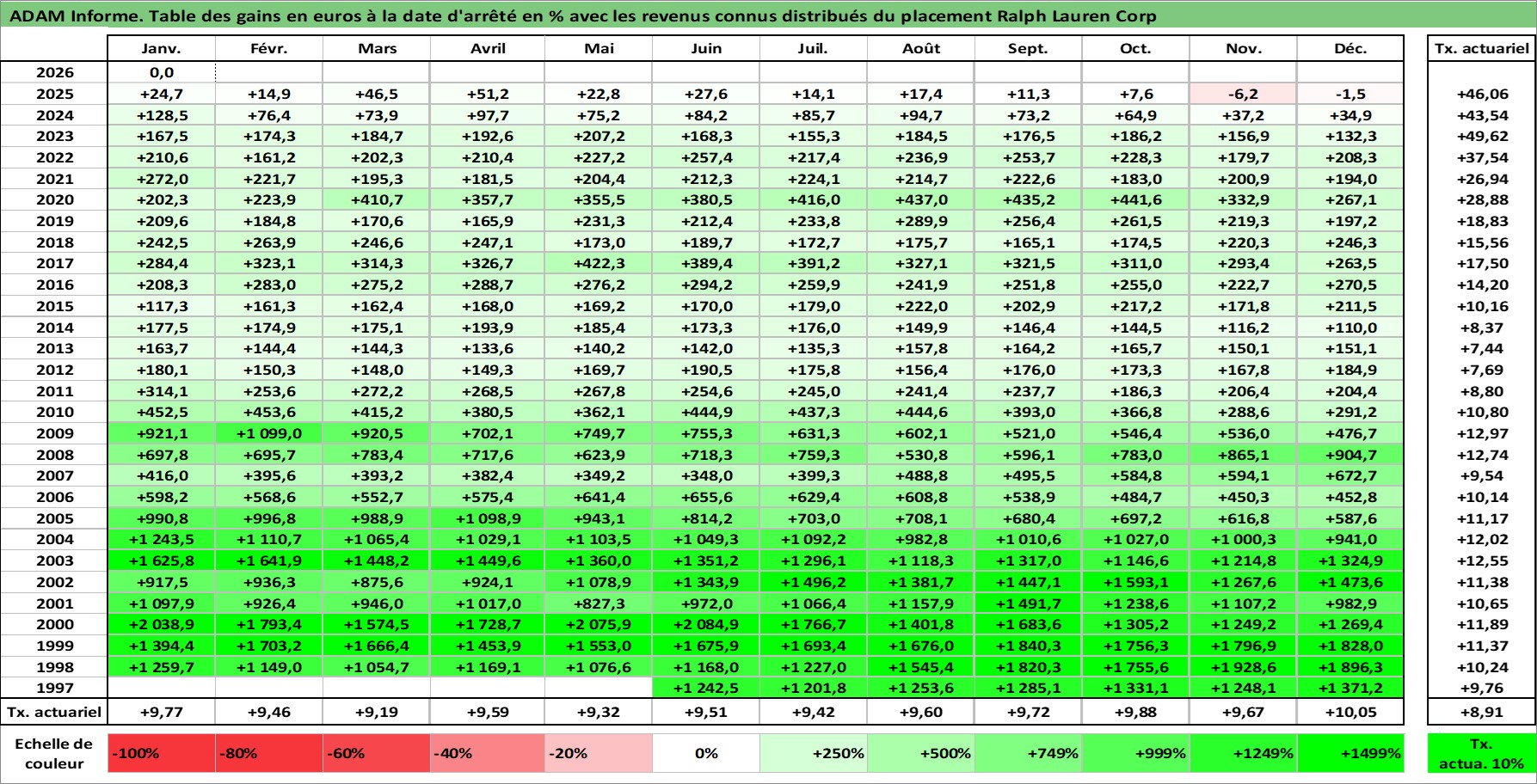 Dernière perfo 10 ans en %
