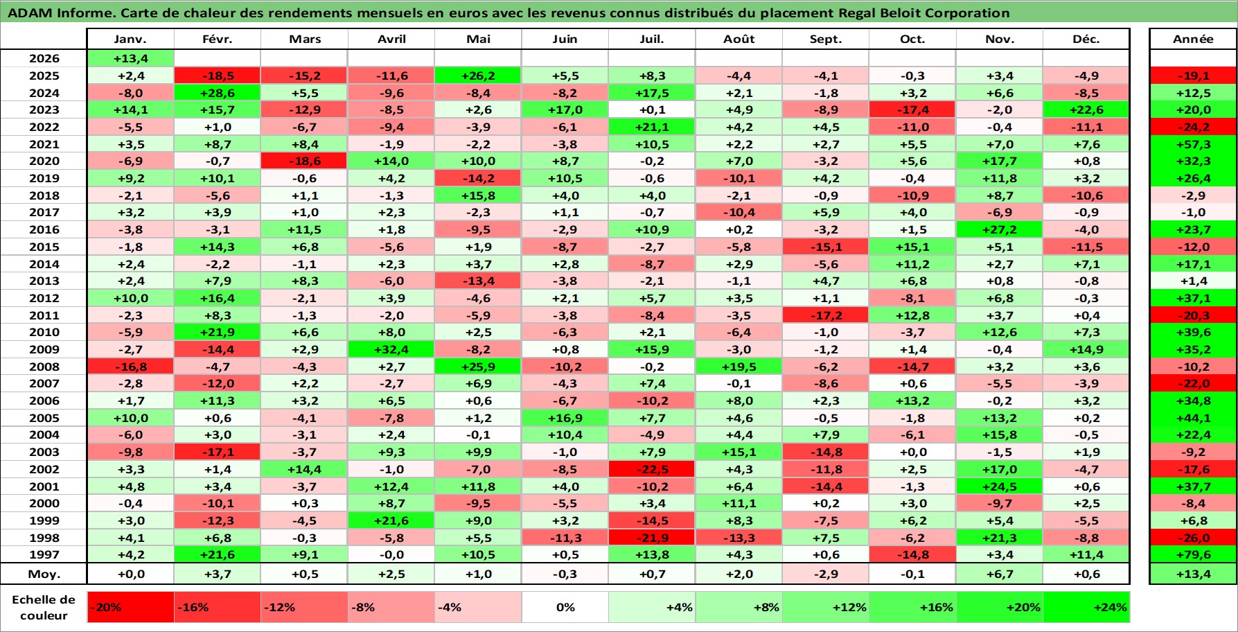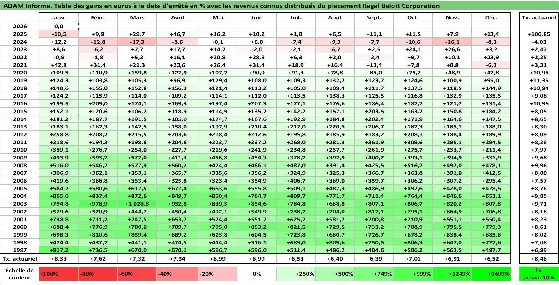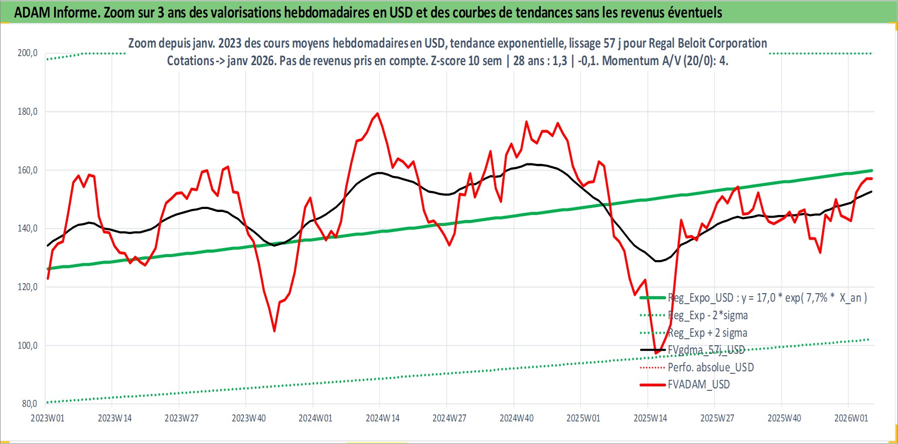 Site dédié aux investisseursPage dédiée sur site financeAnalyse des valorisations hebdomadaires de l'action Regal Beloit Corporation. Cet actif est cote en USD. Les valorisations sont en contrevaleur EURO et couvrent les semaines 1997W01 a 2026W05. Les revenus de cet actif financier sont pris en compte depuis la semaine 1997W13. La note ESG de cet actif n'est pas connue.