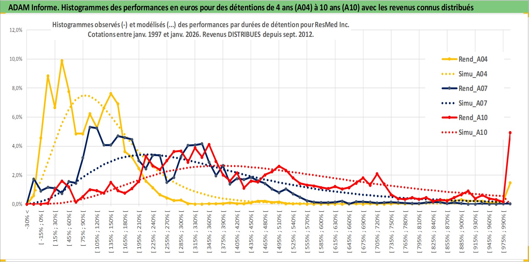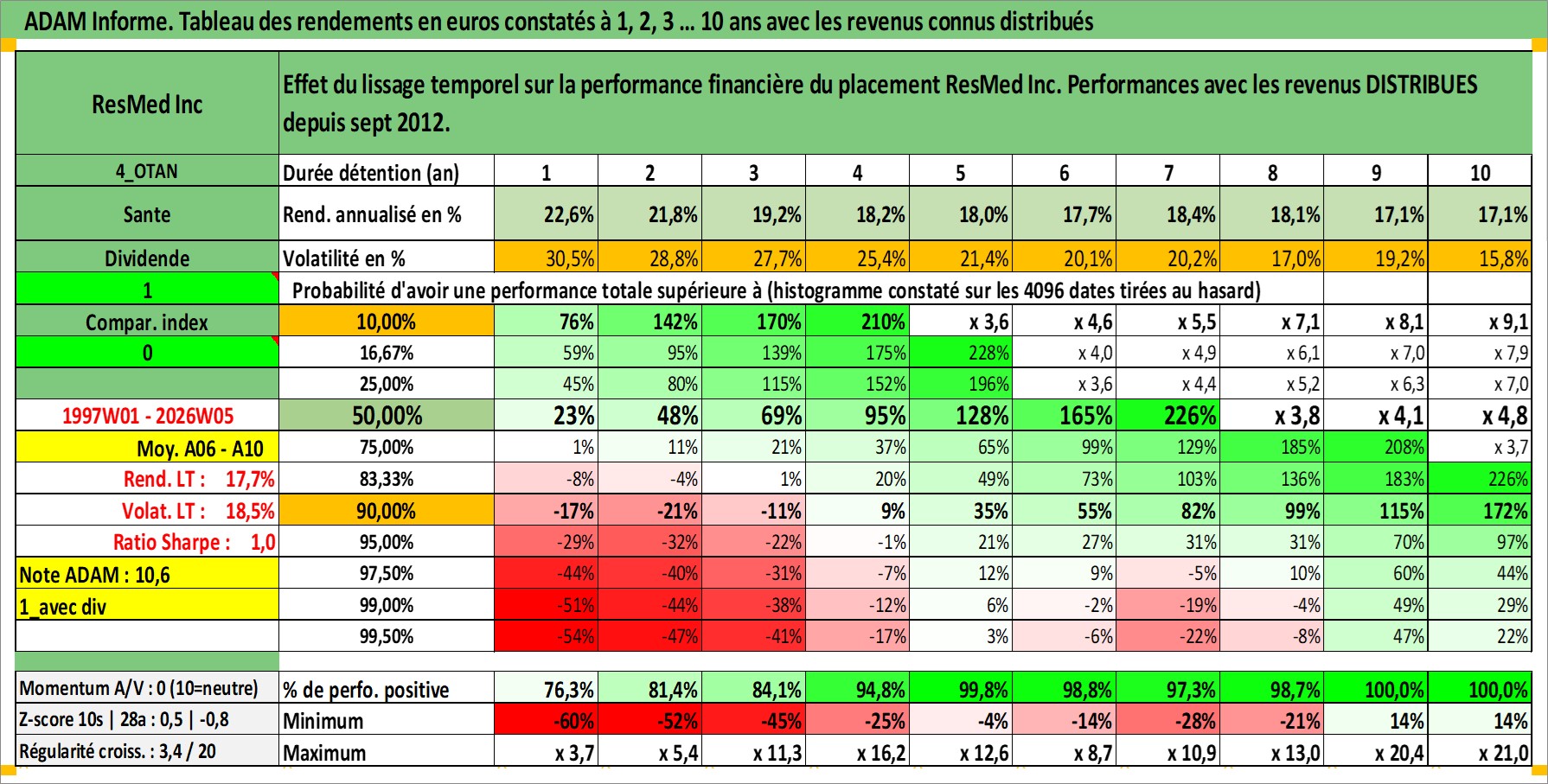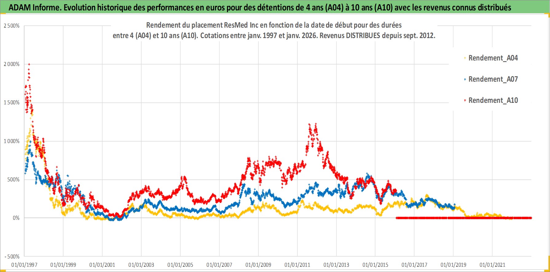 Site dédié aux investisseursPage dédiée sur site financeAnalyse des valorisations hebdomadaires de l'action ResMed Inc. Cet actif est cote en USD. Les valorisations sont en contrevaleur EURO et couvrent les semaines 1997W01 a 2026W05. Les revenus de cet actif financier sont pris en compte depuis la semaine 2012W36. La note globale ESG de cet actif est estimee a 7.0 (apres rebasage entre 0 et 20).