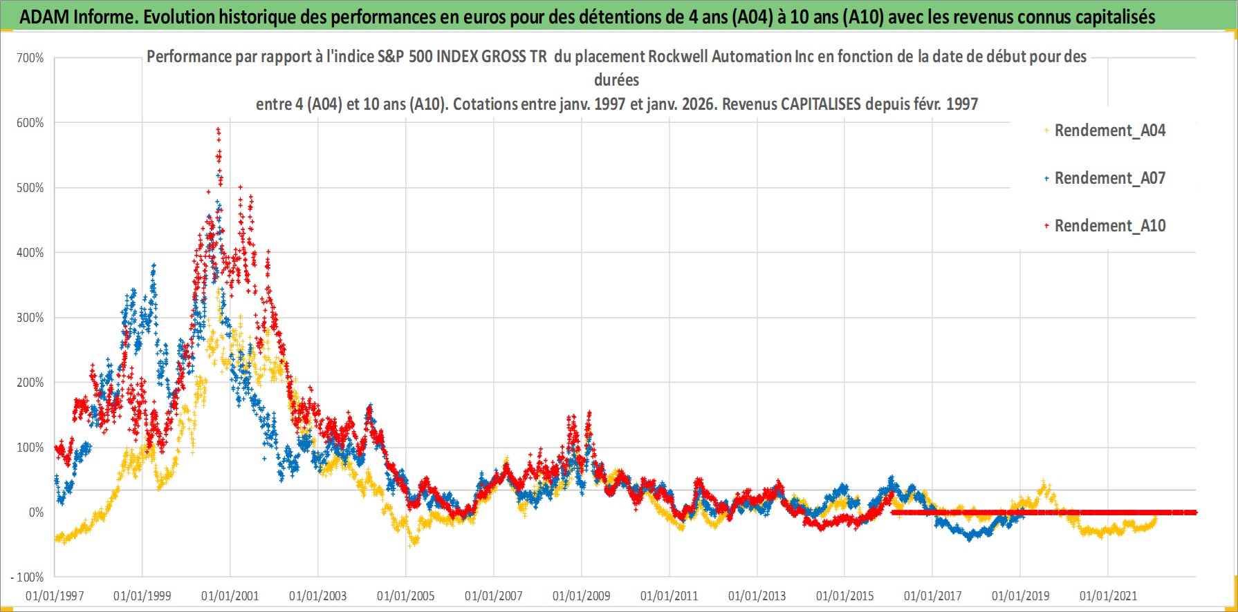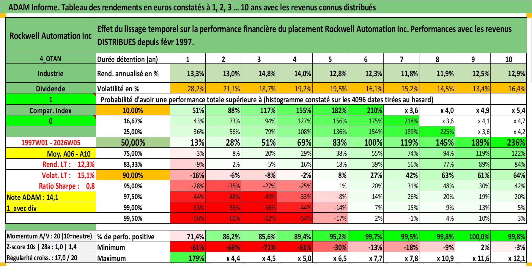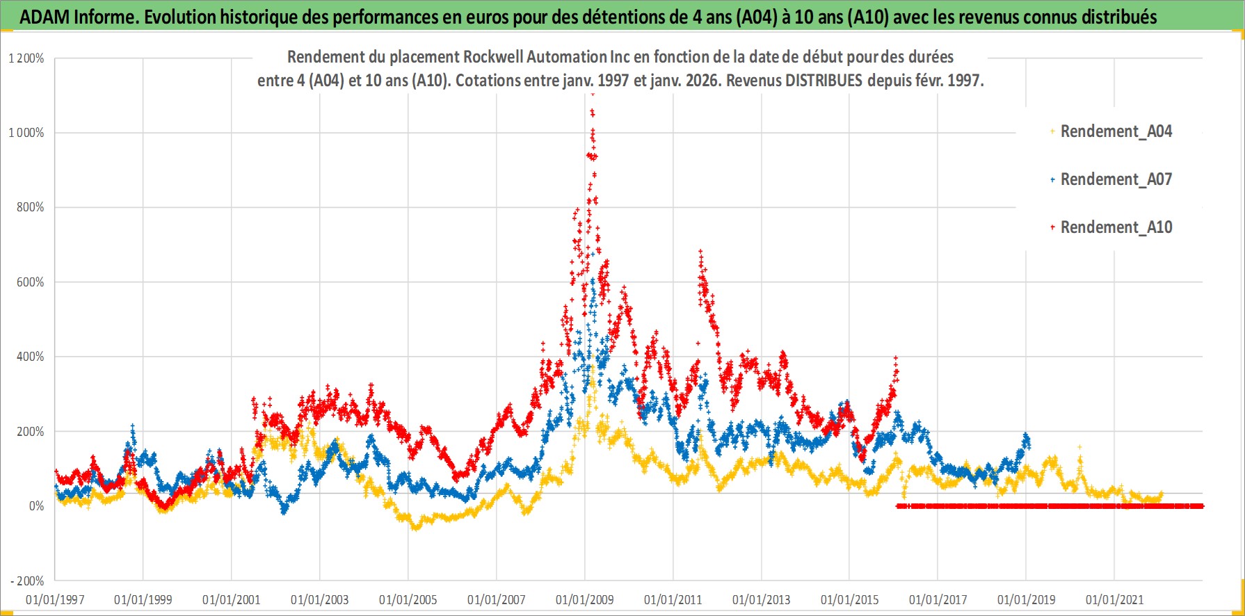 Site dédié aux investisseursPage dédiée sur site financeAnalyse des valorisations hebdomadaires de l'action Rockwell Automation Inc. Cet actif est cote en USD. Les valorisations sont en contrevaleur EURO et couvrent les semaines 1997W01 a 2026W05. Les revenus de cet actif financier sont pris en compte depuis la semaine 1997W07. La note globale ESG de cet actif est estimee a 11.0 (apres rebasage entre 0 et 20).