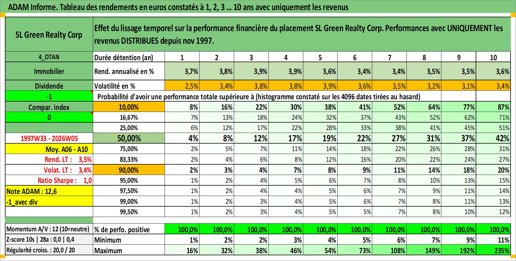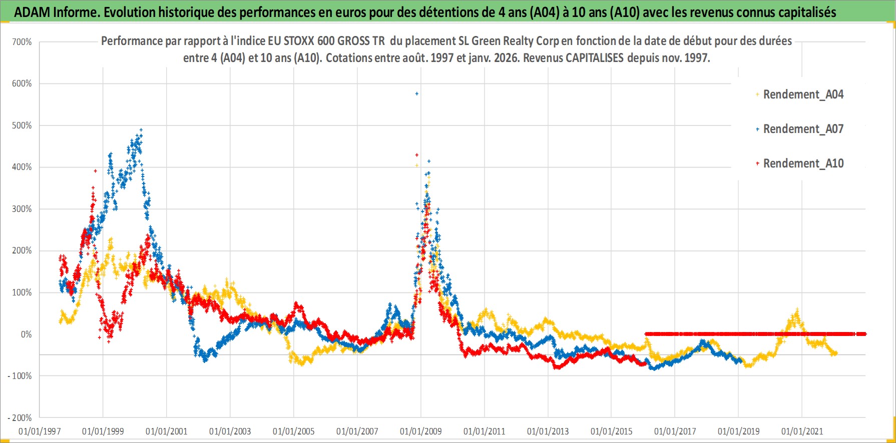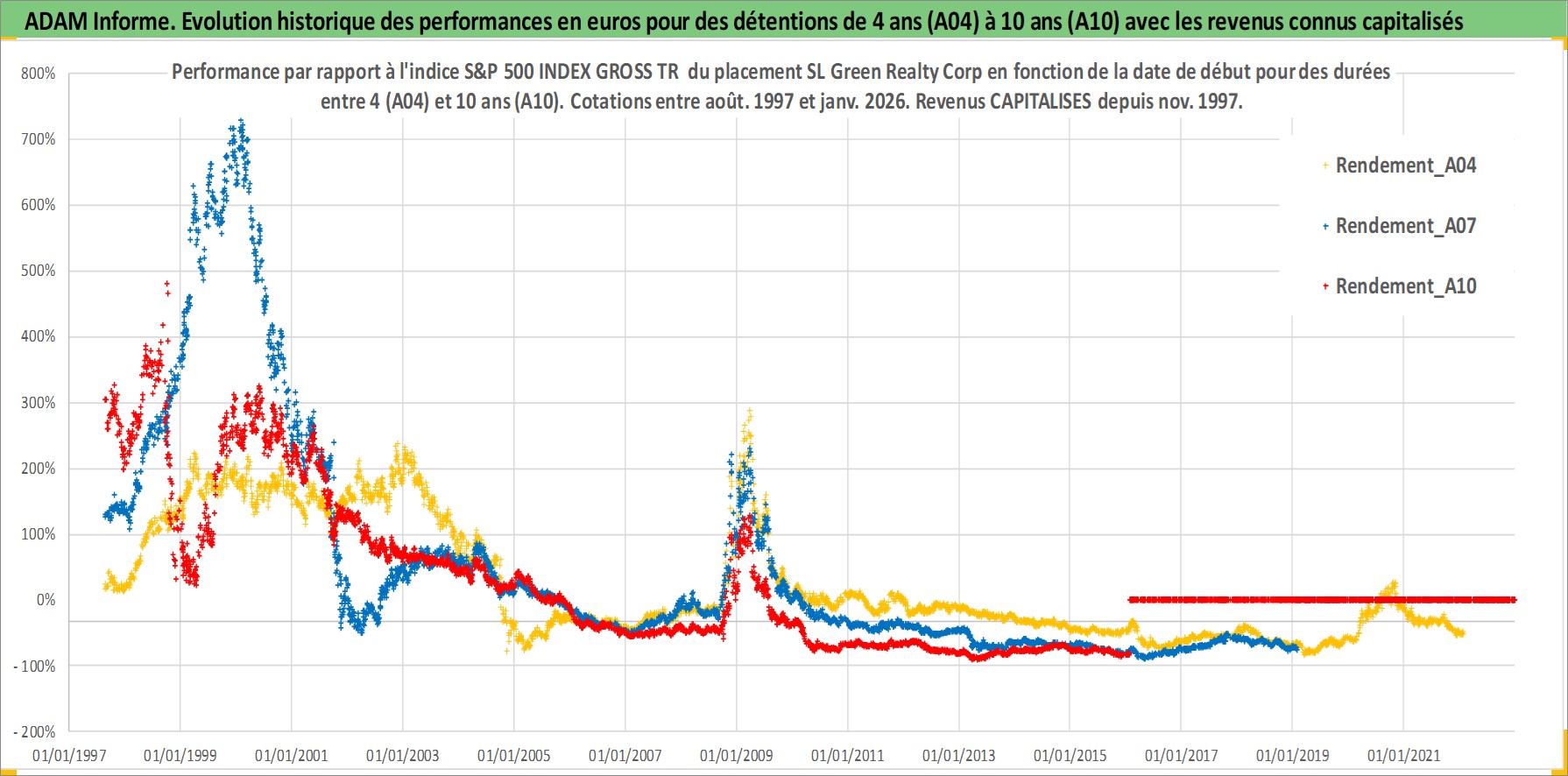 Site dédié aux investisseursPage dédiée sur site financeAnalyse des valorisations hebdomadaires de l'action SL Green Realty Corp. Cet actif est cote en USD. Les valorisations sont en contrevaleur EURO et couvrent les semaines 1997W33 a 2026W05. Les revenus de cet actif financier sont pris en compte depuis la semaine 1997W46. La note globale ESG de cet actif est estimee a 15.0 (apres rebasage entre 0 et 20).