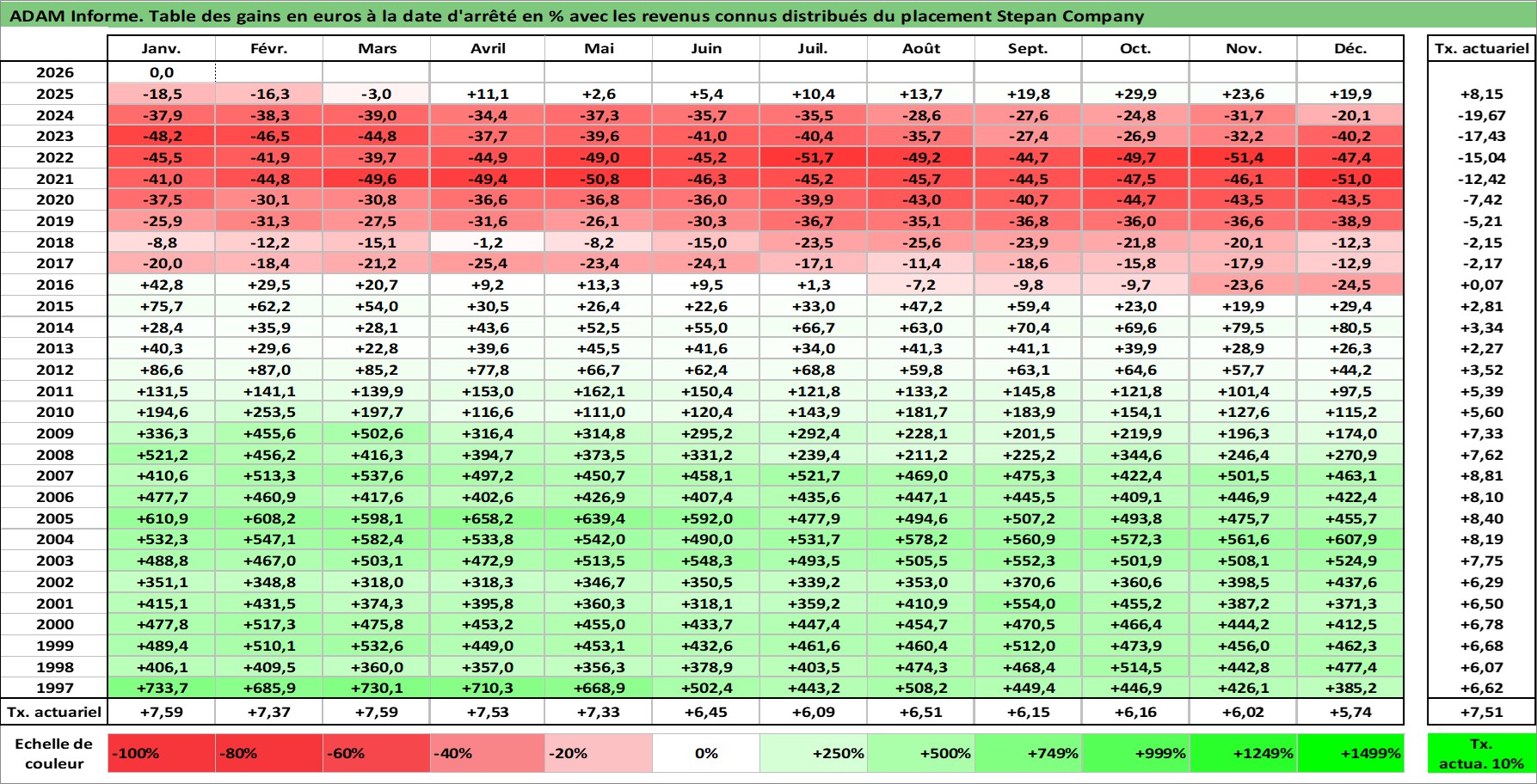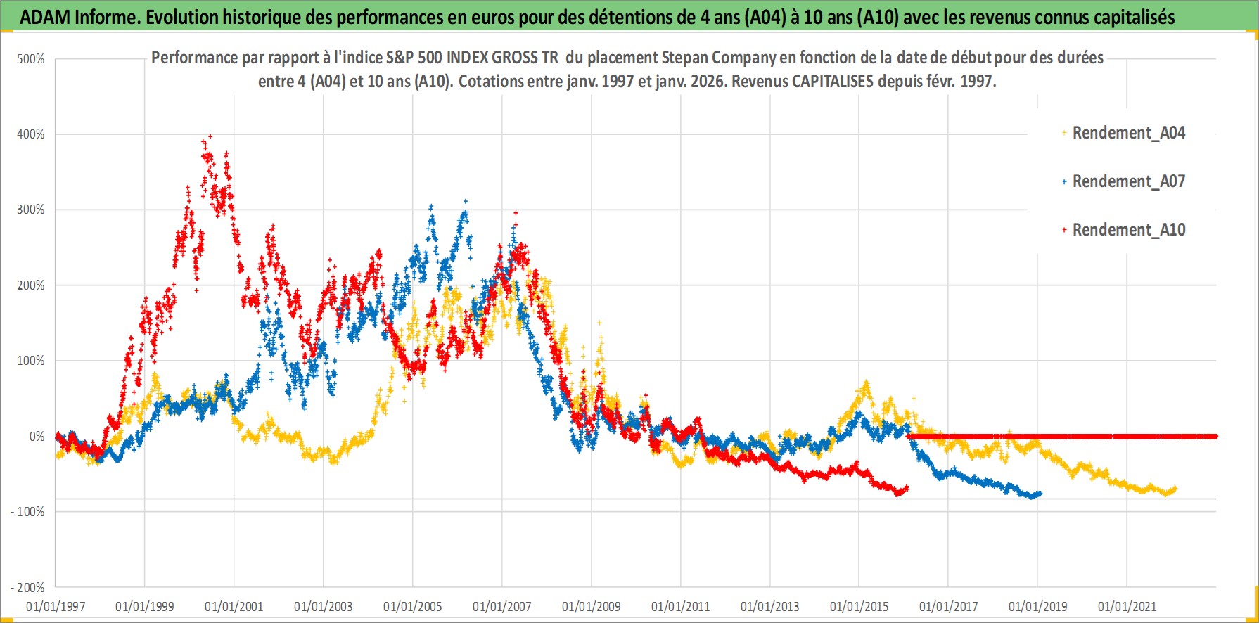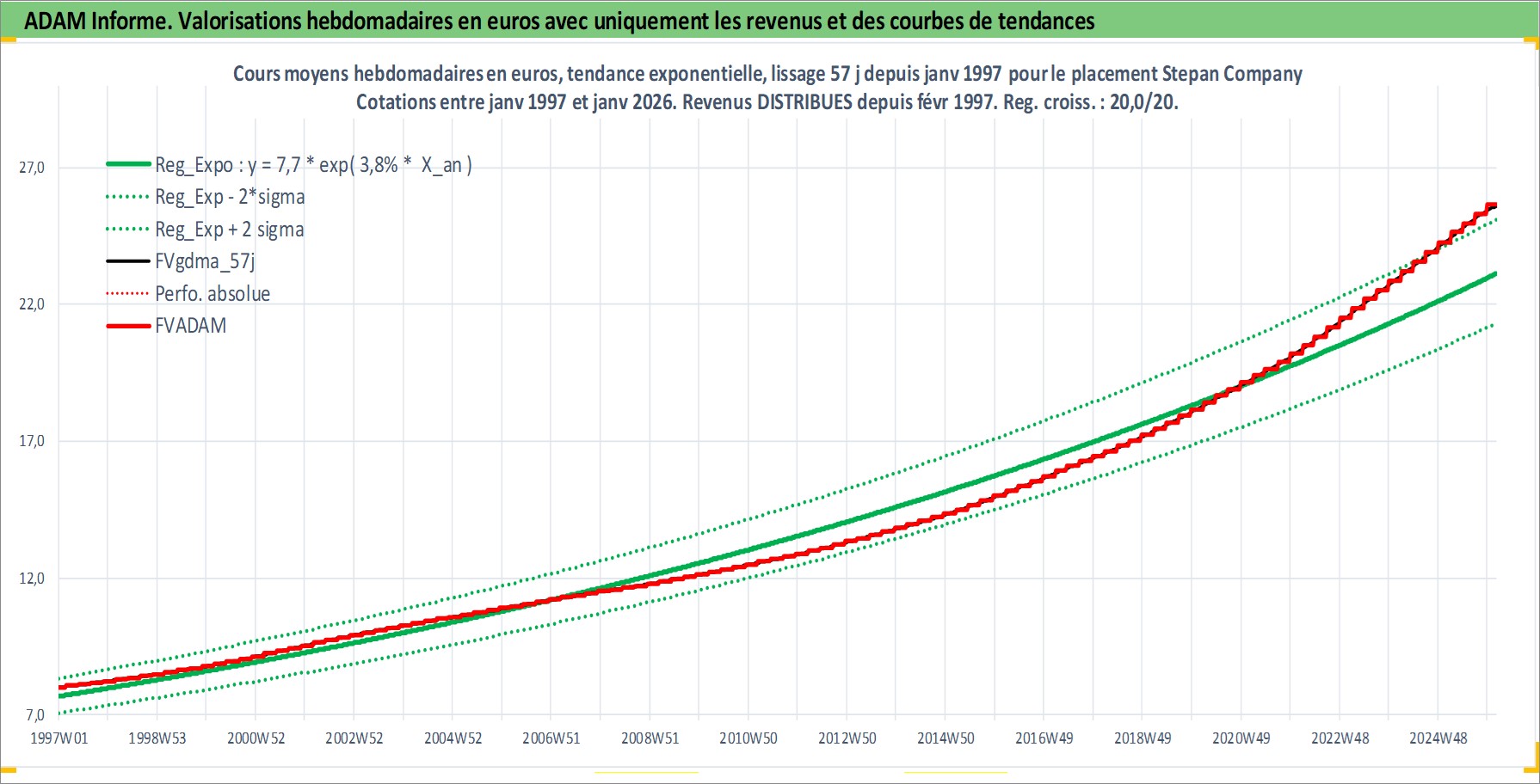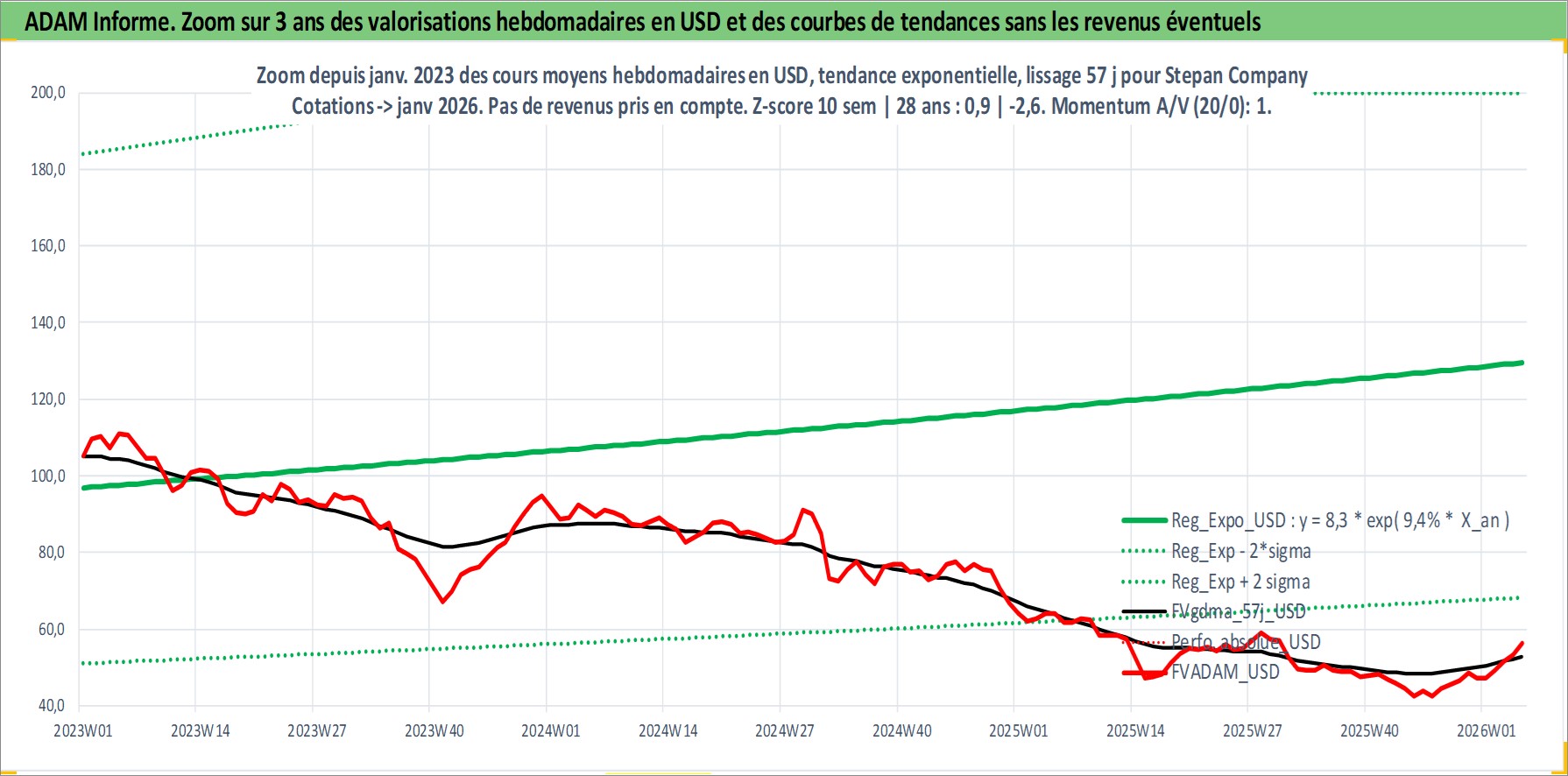 Site dédié aux investisseursPage dédiée sur site financeAnalyse des valorisations hebdomadaires de l'action Stepan Company. Cet actif est cote en USD. Les valorisations sont en contrevaleur EURO et couvrent les semaines 1997W01 a 2026W05. Les revenus de cet actif financier sont pris en compte depuis la semaine 1997W09. La note ESG de cet actif n'est pas connue.