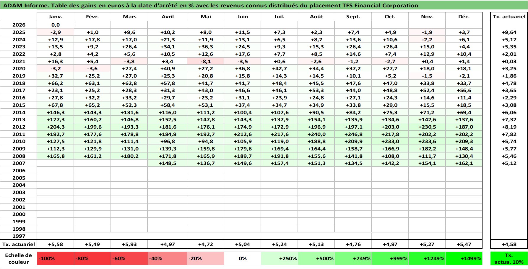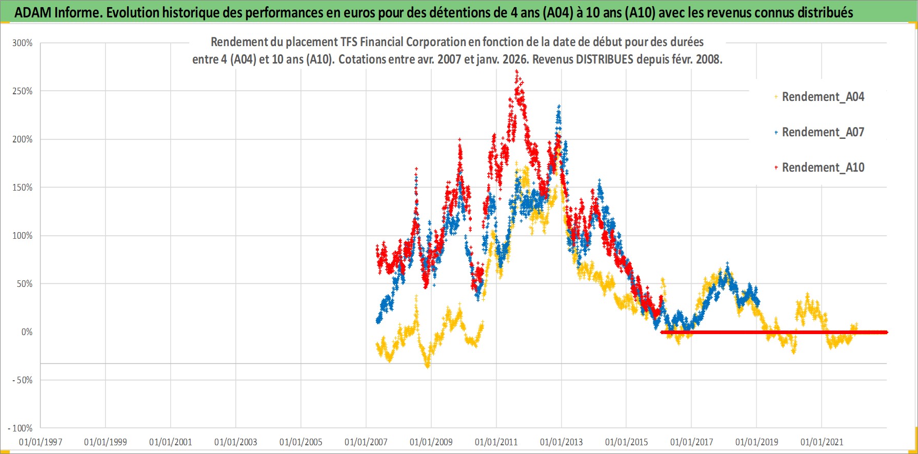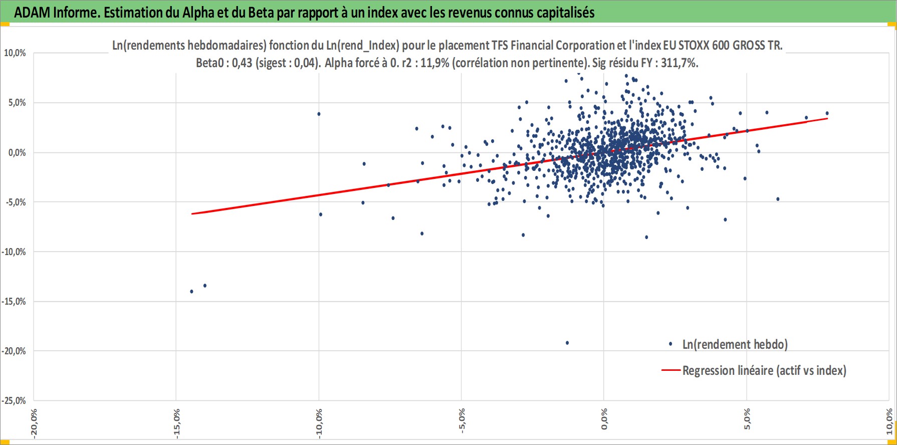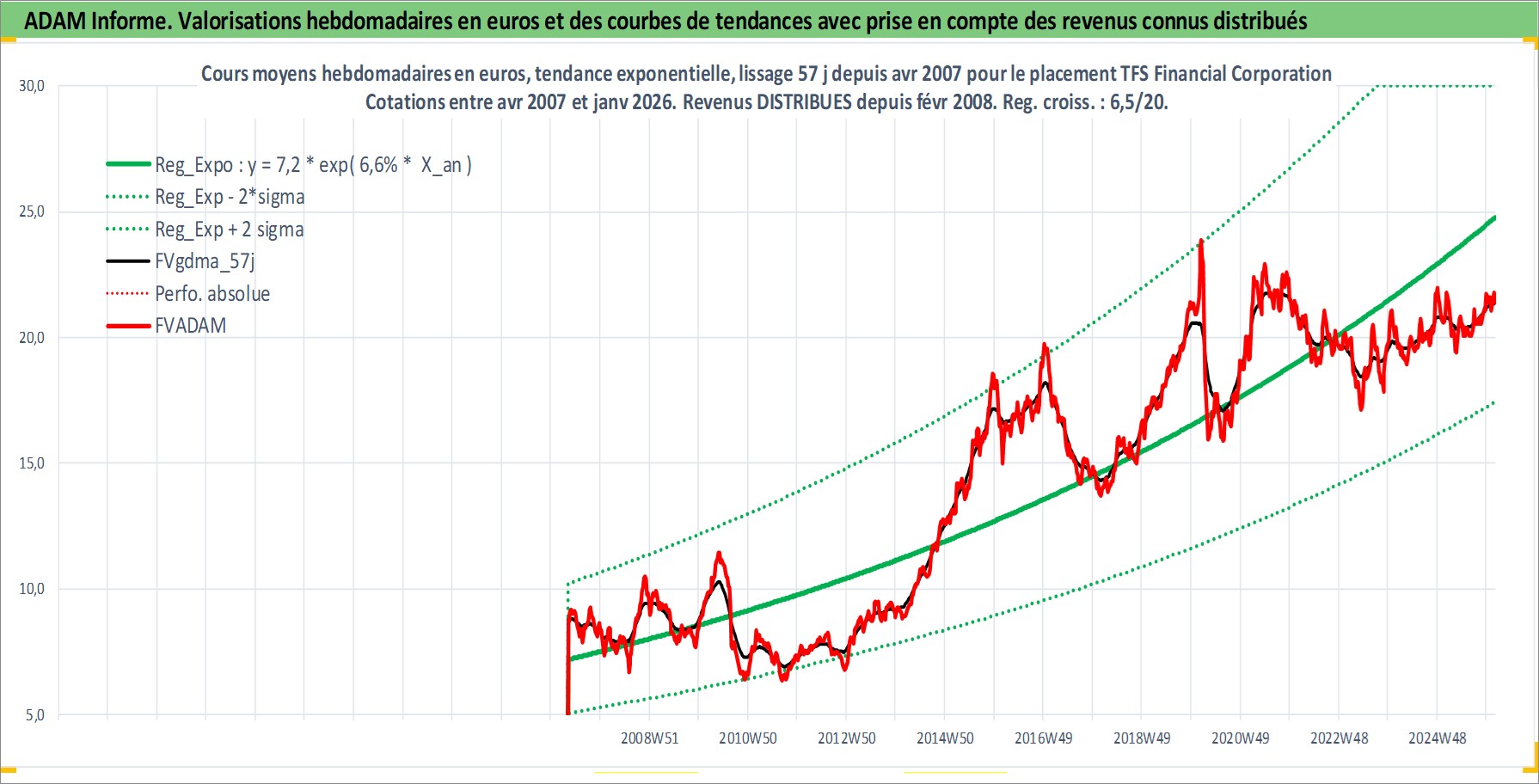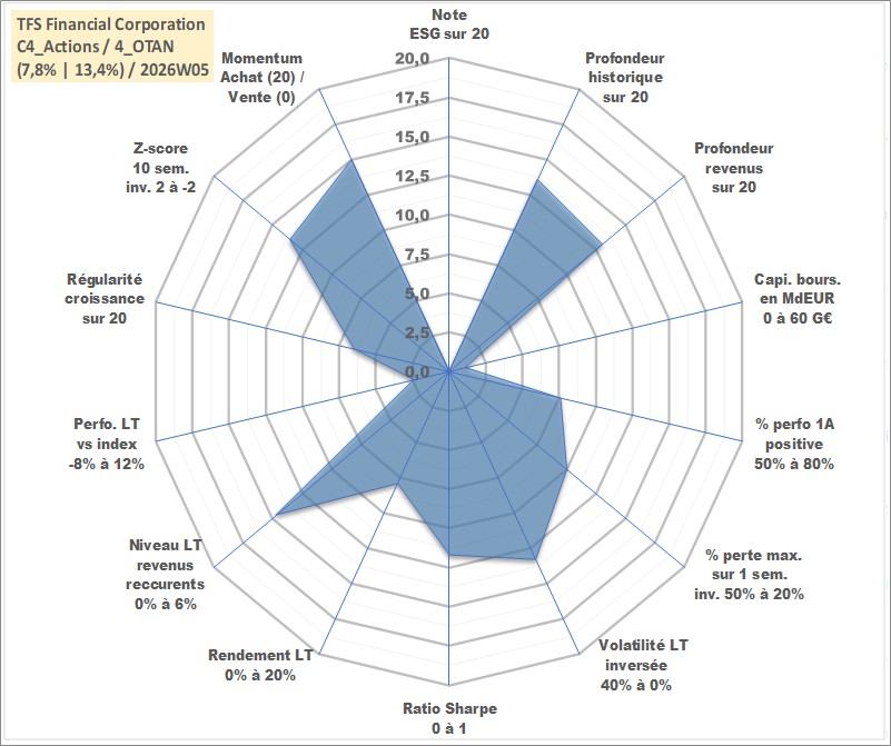 Site dédié aux investisseursPage dédiée sur site financeAnalyse des valorisations hebdomadaires de l'action TFS Financial Corporation. Cet actif est cote en USD. Les valorisations sont en contrevaleur EURO et couvrent les semaines 2007W17 a 2026W05. Les revenus de cet actif financier sont pris en compte depuis la semaine 2008W08. La note ESG de cet actif n'est pas connue.