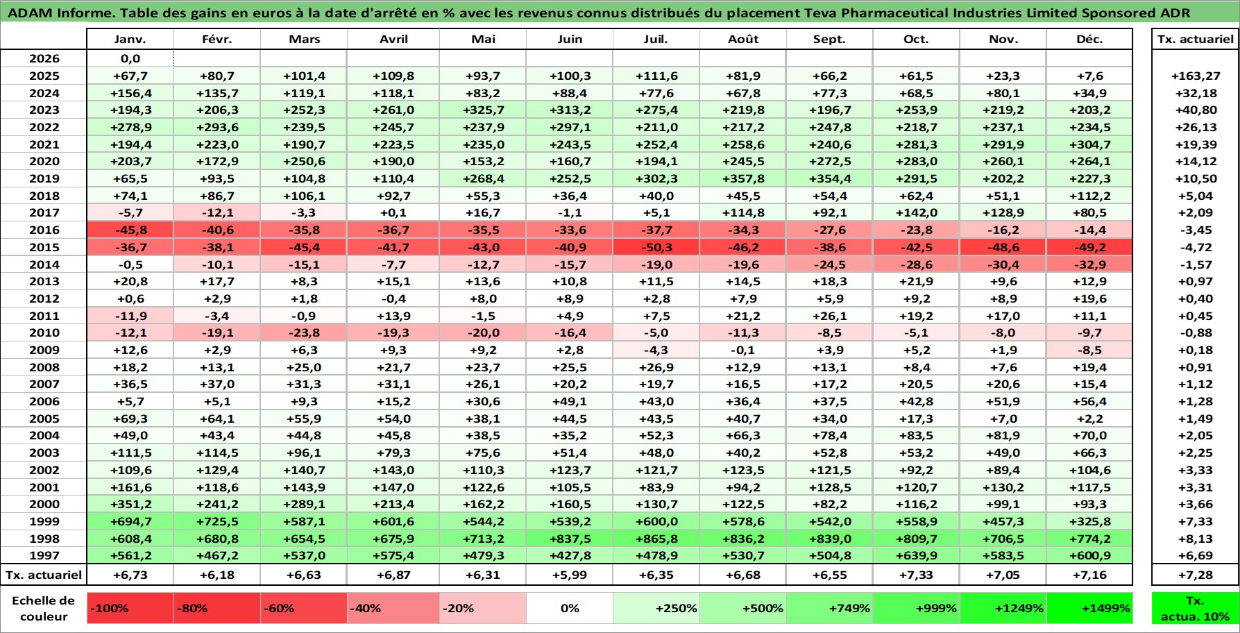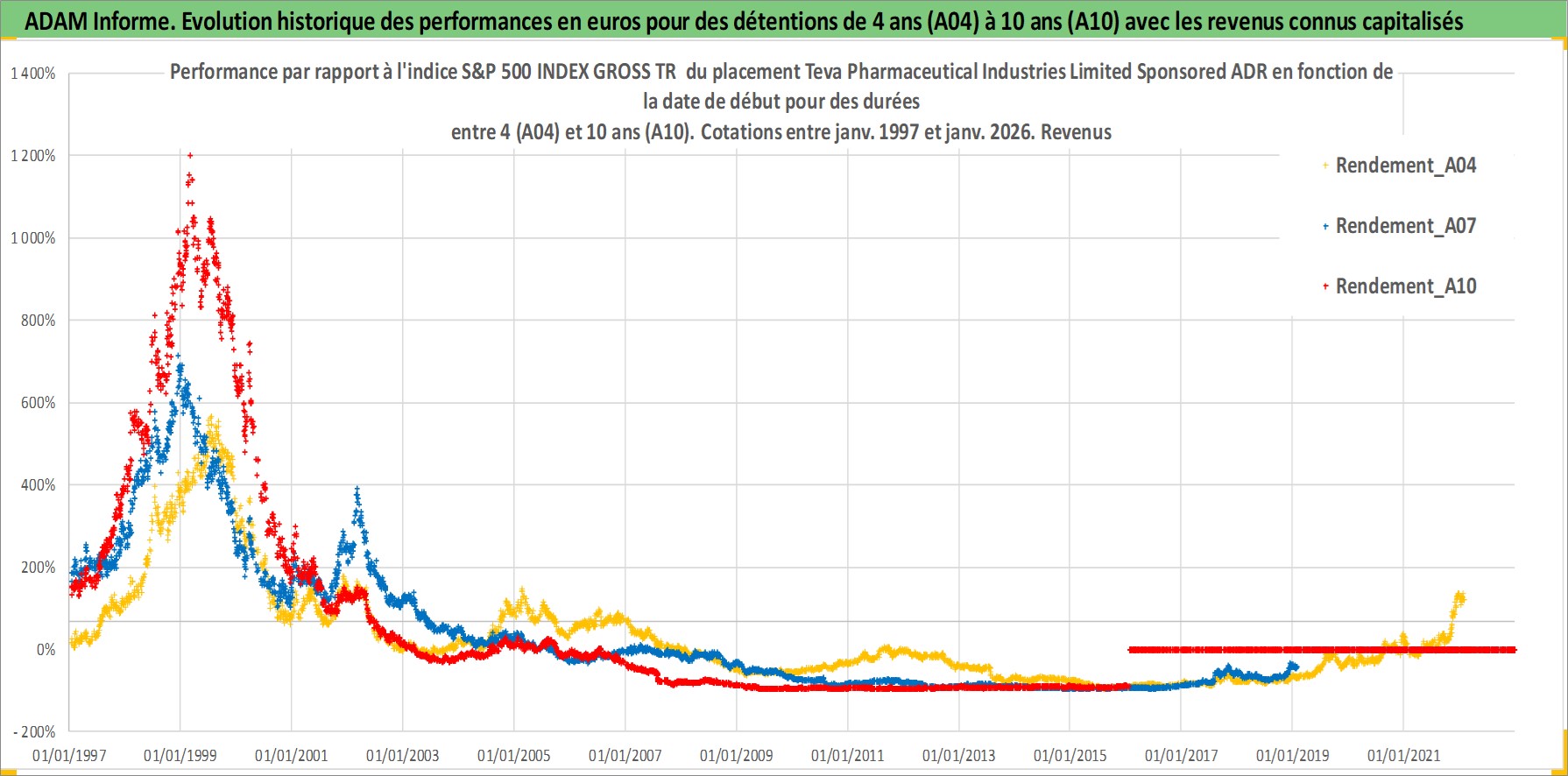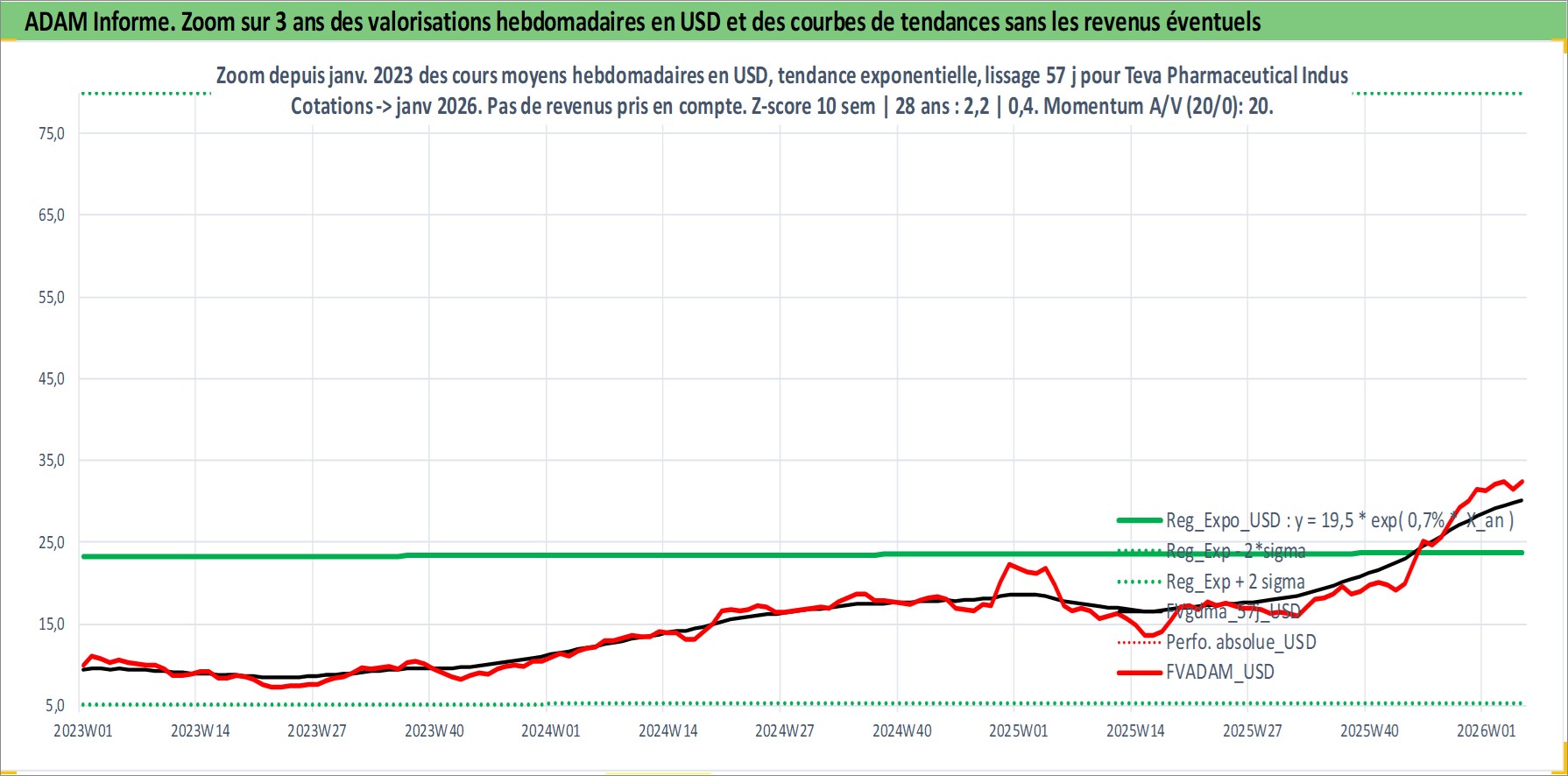 Site dédié aux investisseursPage dédiée sur site financeAnalyse des valorisations hebdomadaires de l'action Teva Pharmaceutical Industries Limited Sponsored ADR. Cet actif est cote en USD. Les valorisations sont en contrevaleur EURO et couvrent les semaines 1997W01 a 2026W05. Les revenus de cet actif financier sont pris en compte depuis la semaine 1997W10. La note ESG de cet actif n'est pas connue.