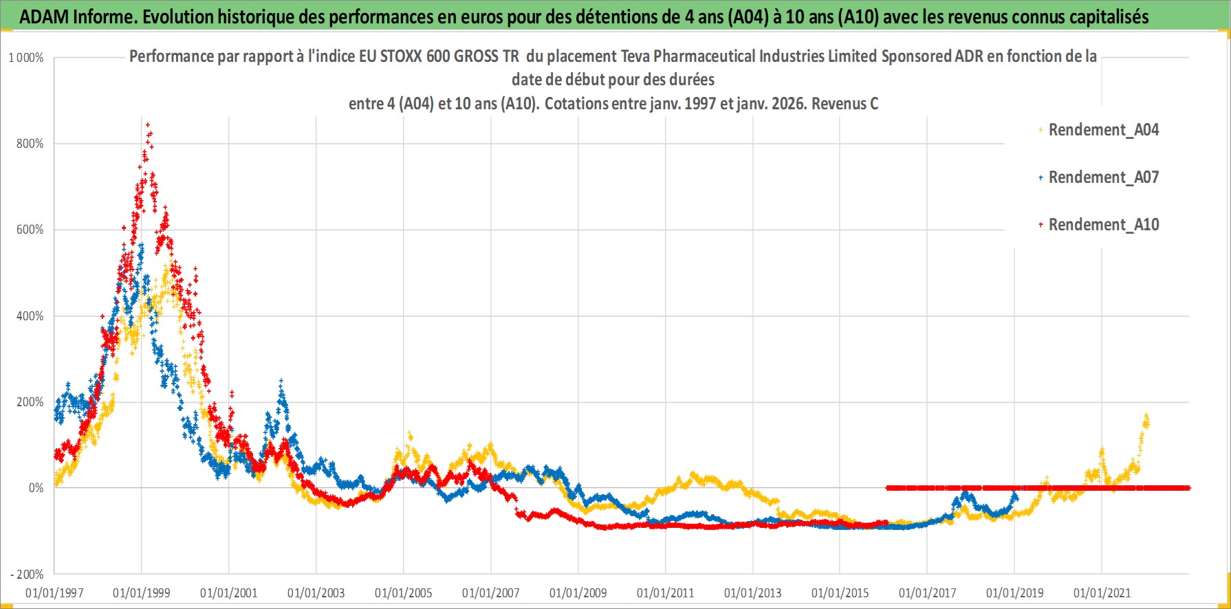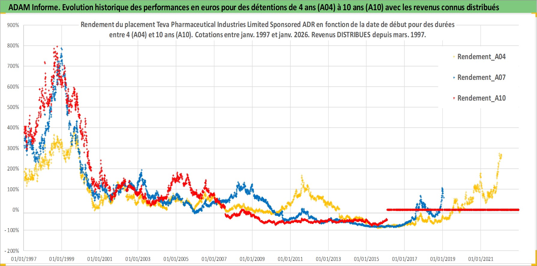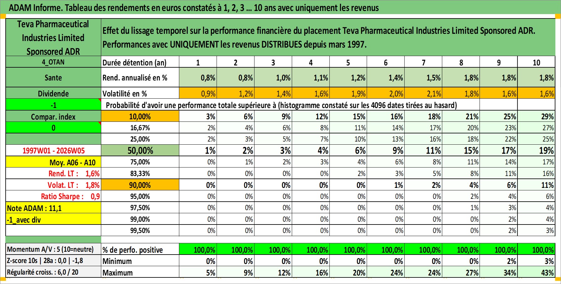 Site dédié aux investisseursPage dédiée sur site financeAnalyse des valorisations hebdomadaires de l'action Teva Pharmaceutical Industries Limited Sponsored ADR. Cet actif est cote en USD. Les valorisations sont en contrevaleur EURO et couvrent les semaines 1997W01 a 2026W05. Les revenus de cet actif financier sont pris en compte depuis la semaine 1997W10. La note ESG de cet actif n'est pas connue.