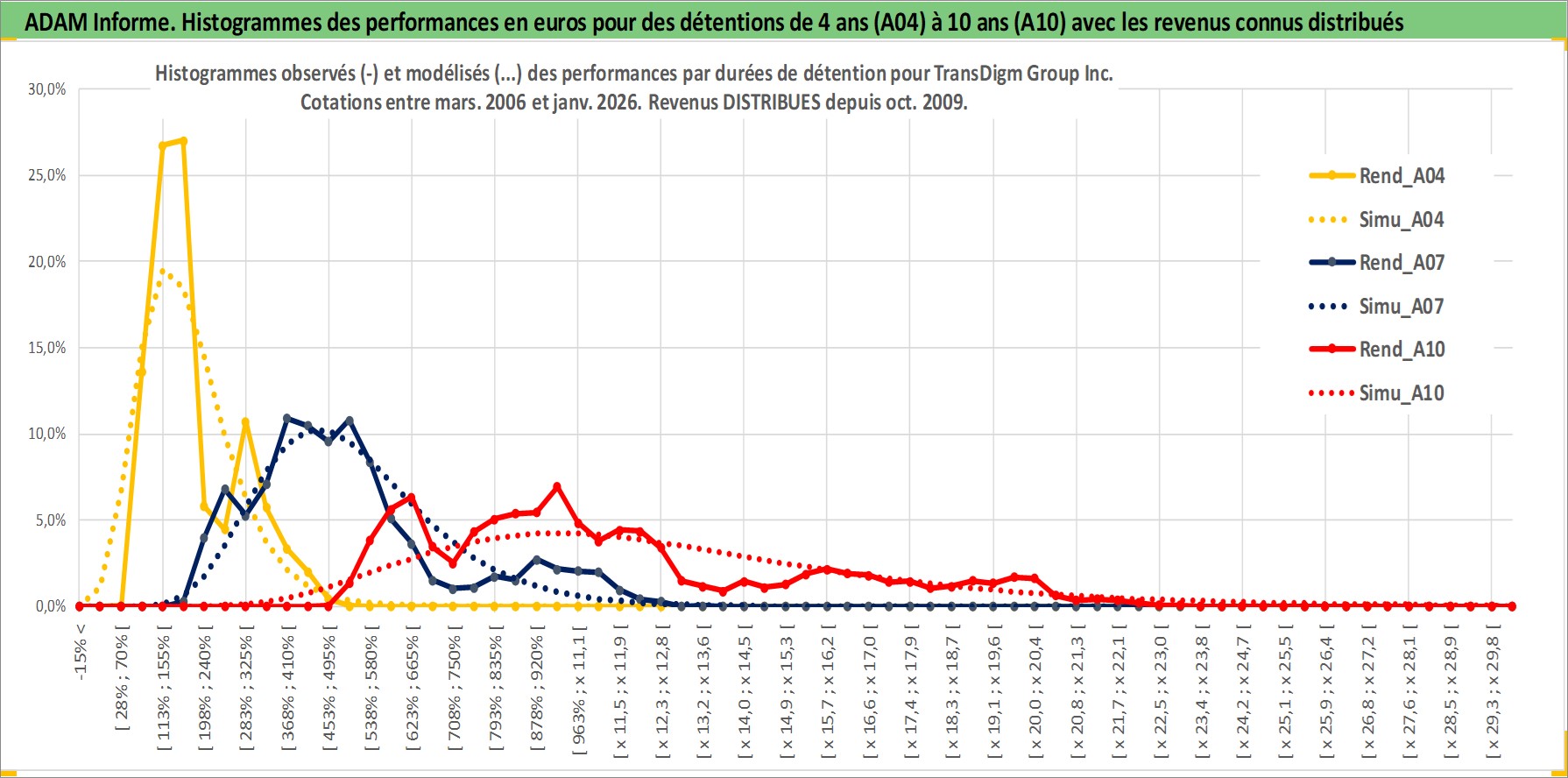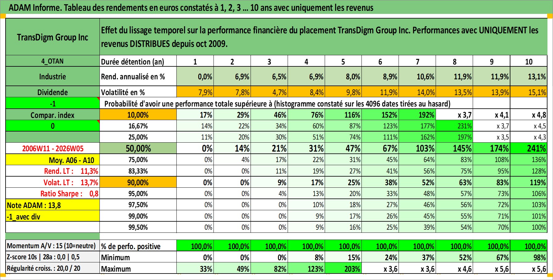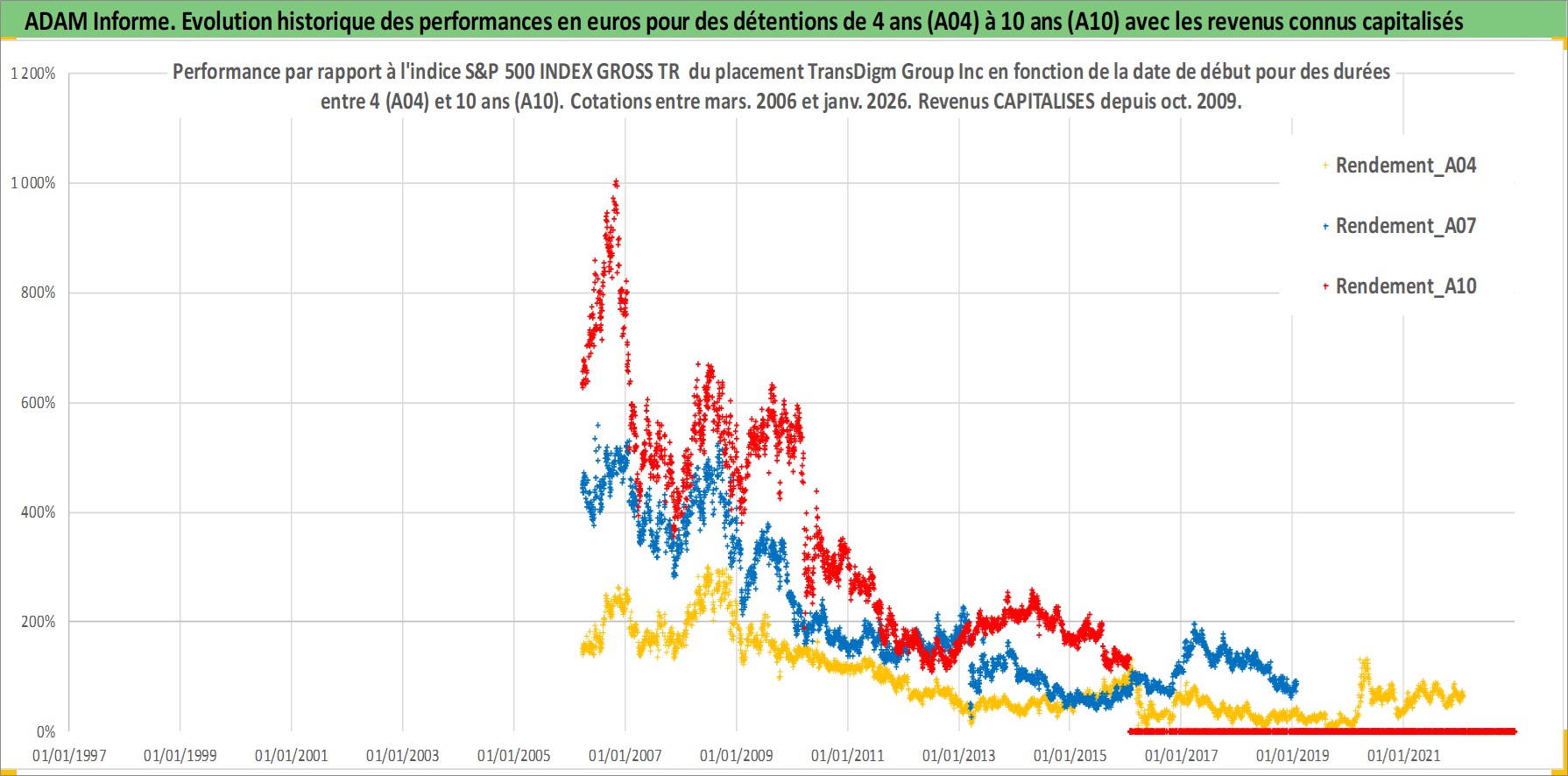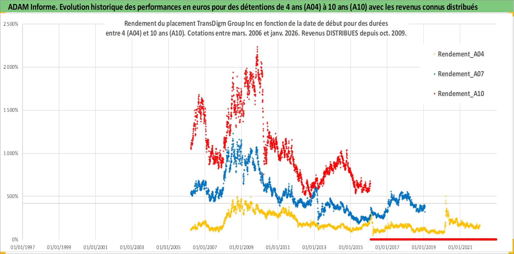 Site dédié aux investisseursPage dédiée sur site financeAnalyse des valorisations hebdomadaires de l'action TransDigm Group Inc. Cet actif est cote en USD. Les valorisations sont en contrevaleur EURO et couvrent les semaines 2006W11 a 2026W05. Les revenus de cet actif financier sont pris en compte depuis la semaine 2009W42. La note globale ESG de cet actif est estimee a 2.0 (apres rebasage entre 0 et 20).