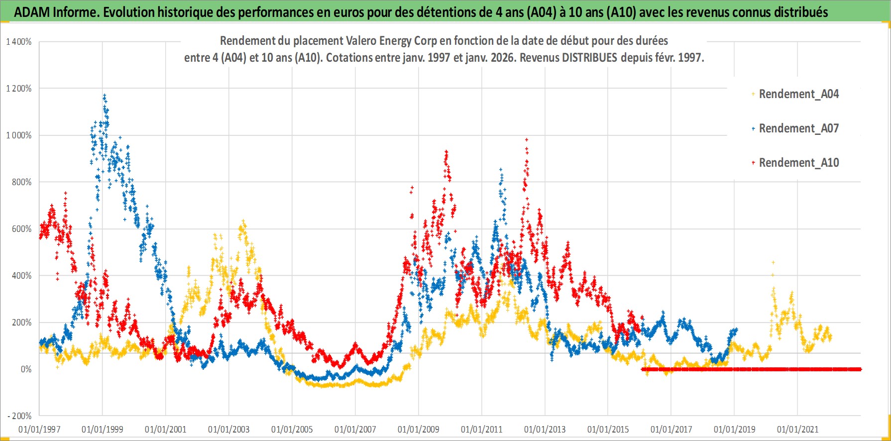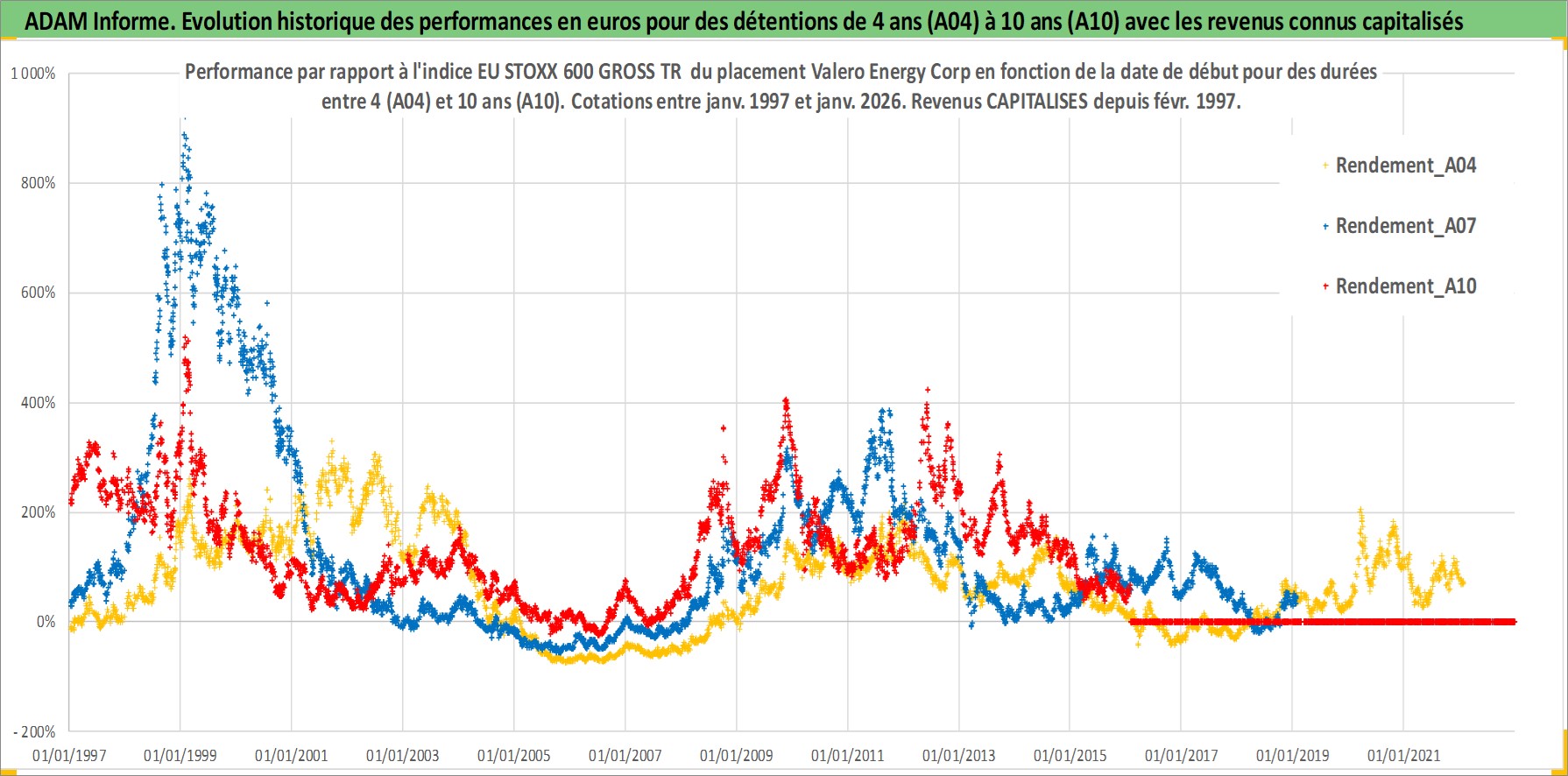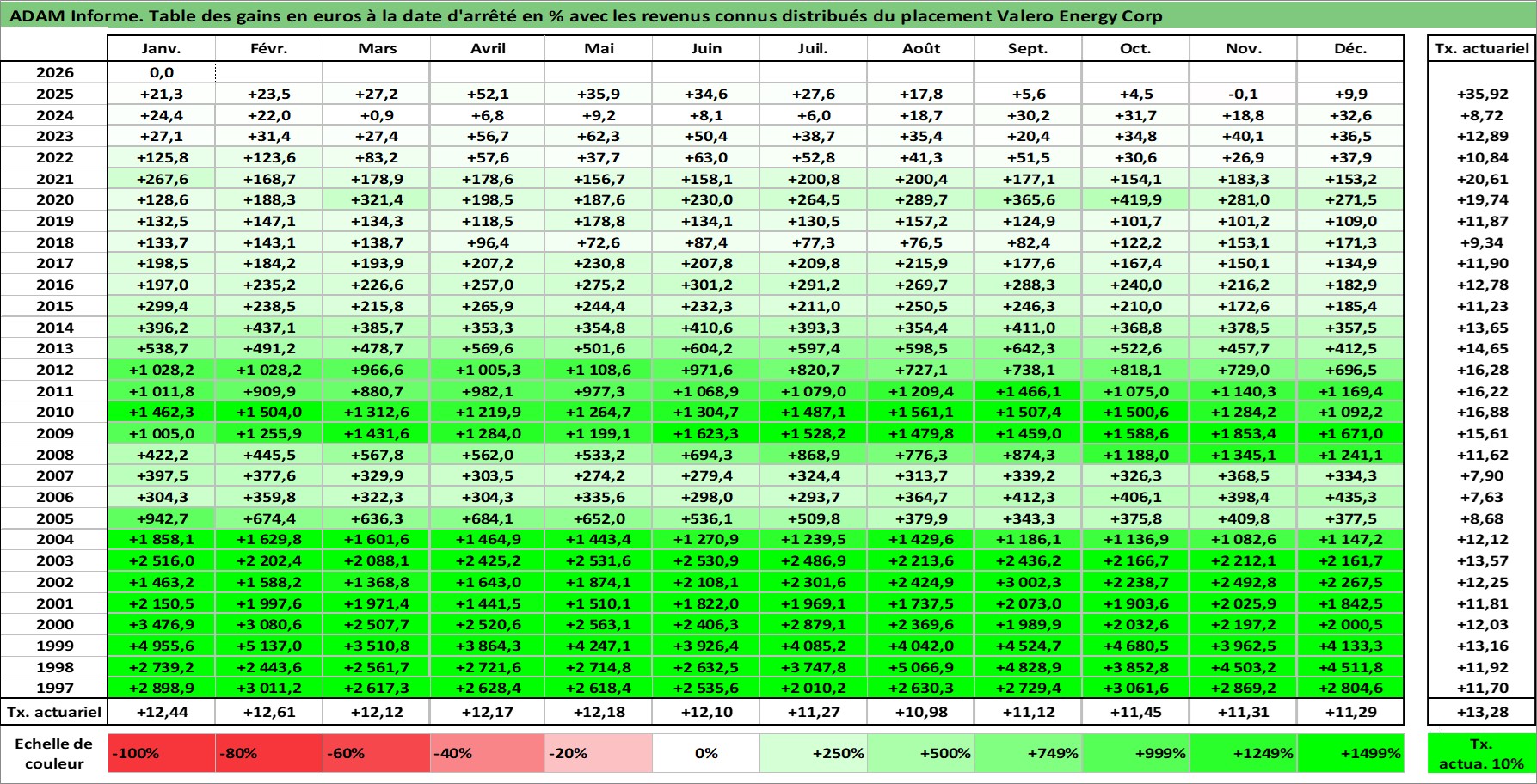 Site dédié aux investisseursPage dédiée sur site financeAnalyse des valorisations hebdomadaires de l'action Valero Energy Corp. Cet actif est cote en USD. Les valorisations sont en contrevaleur EURO et couvrent les semaines 1997W01 a 2026W05. Les revenus de cet actif financier sont pris en compte depuis la semaine 1997W06. La note globale ESG de cet actif est estimee a 5.0 (apres rebasage entre 0 et 20).