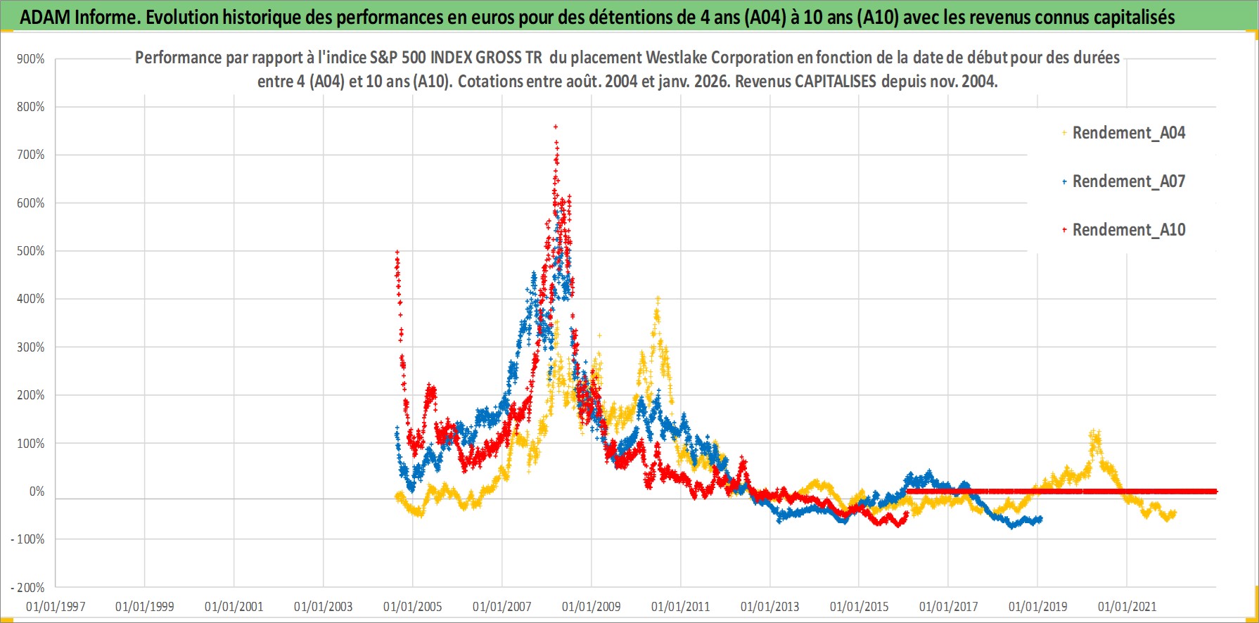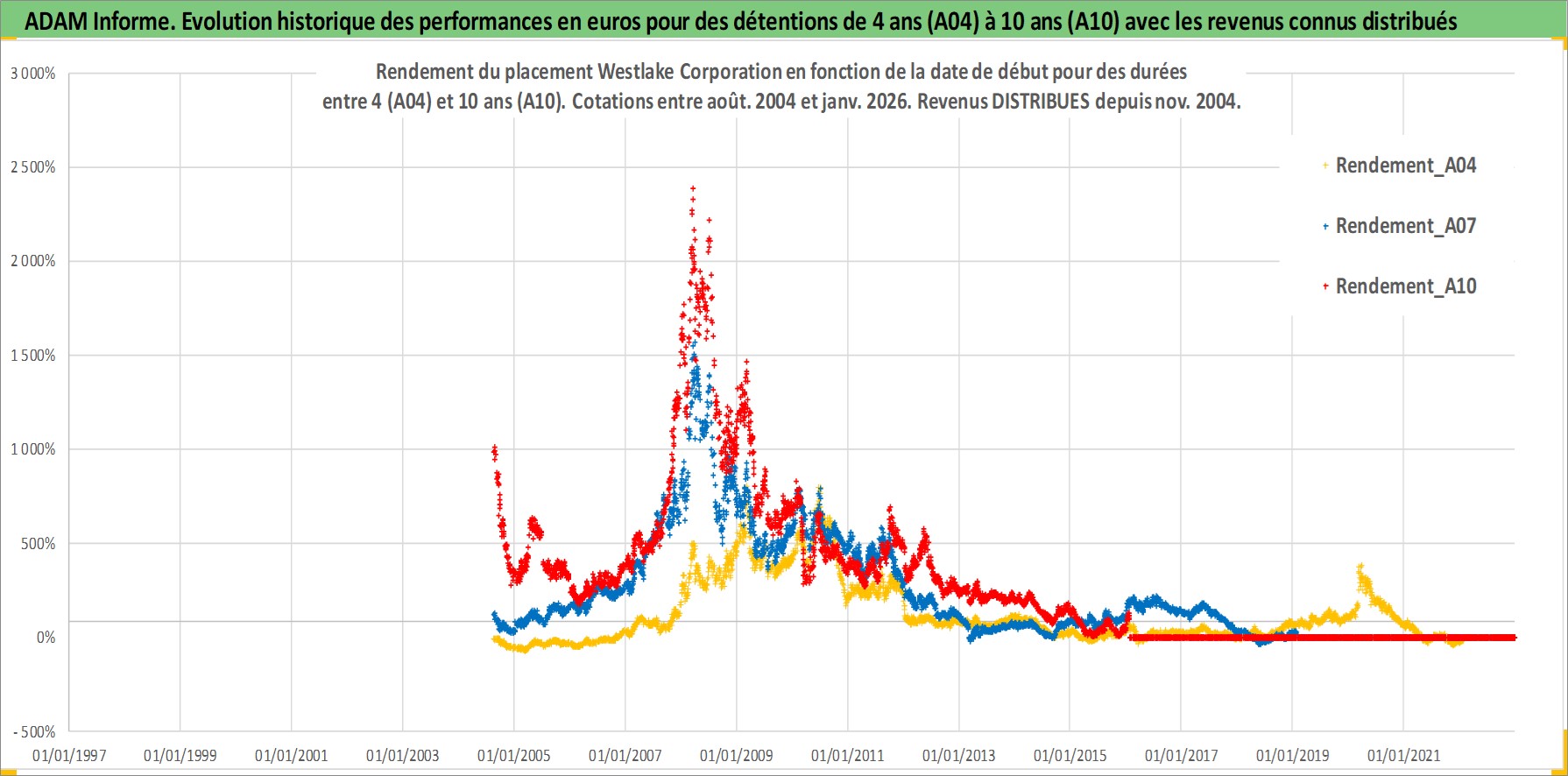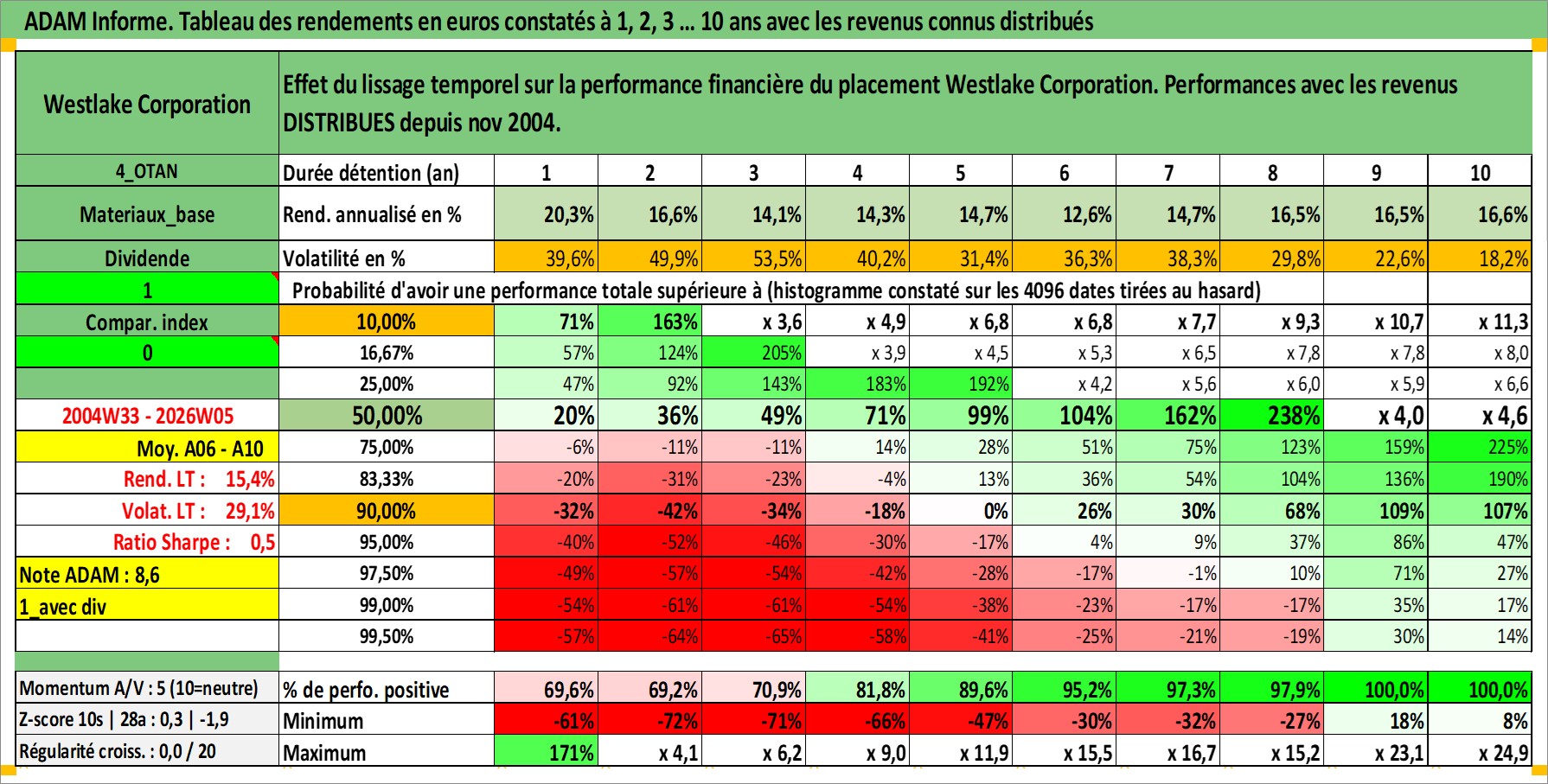 Site dédié aux investisseursPage dédiée sur site financeAnalyse des valorisations hebdomadaires de l'action Westlake Corporation. Cet actif est cote en USD. Les valorisations sont en contrevaleur EURO et couvrent les semaines 2004W33 a 2026W05. Les revenus de cet actif financier sont pris en compte depuis la semaine 2004W47. La note globale ESG de cet actif est estimee a 5.0 (apres rebasage entre 0 et 20).