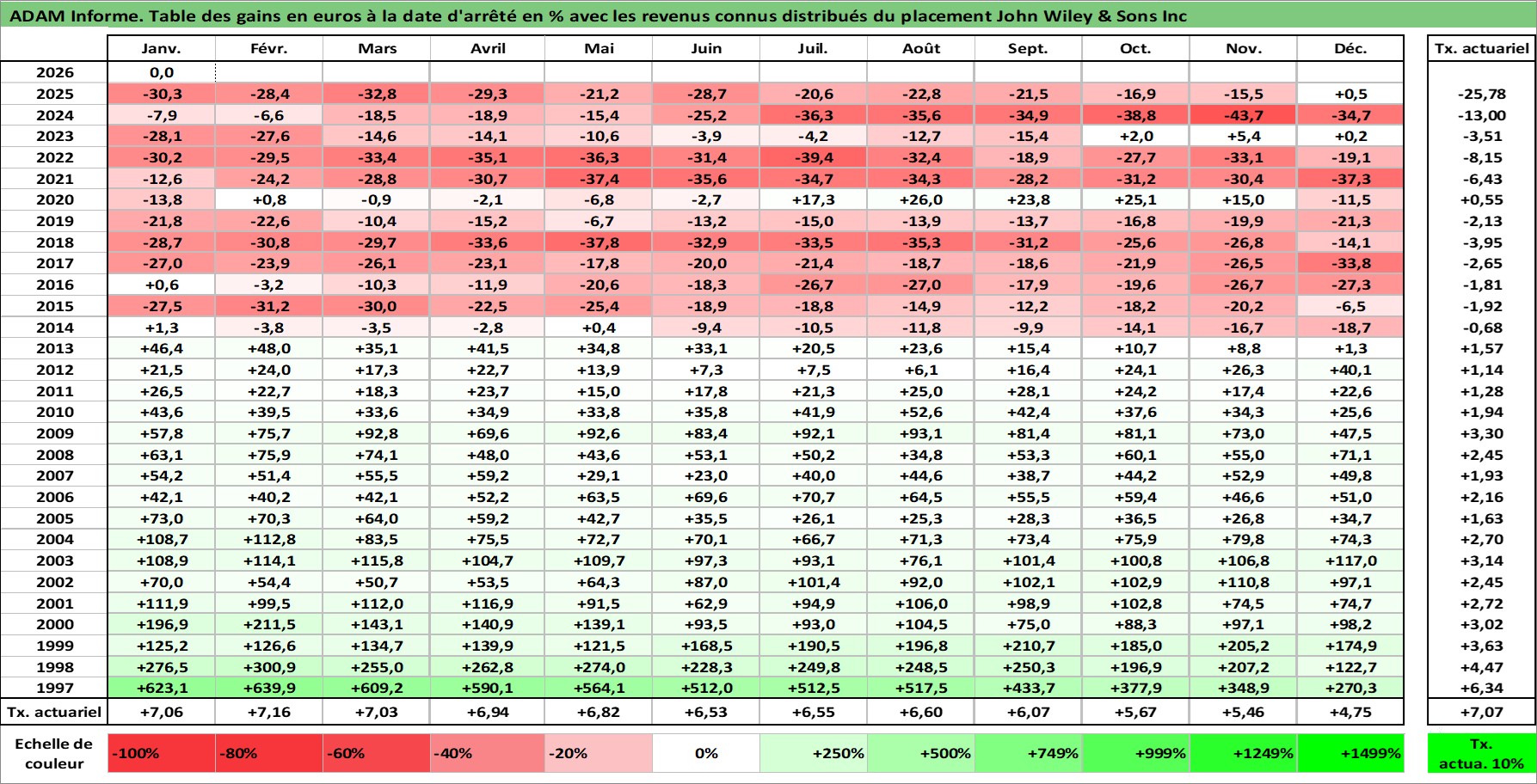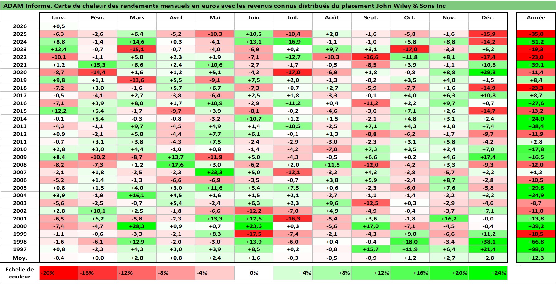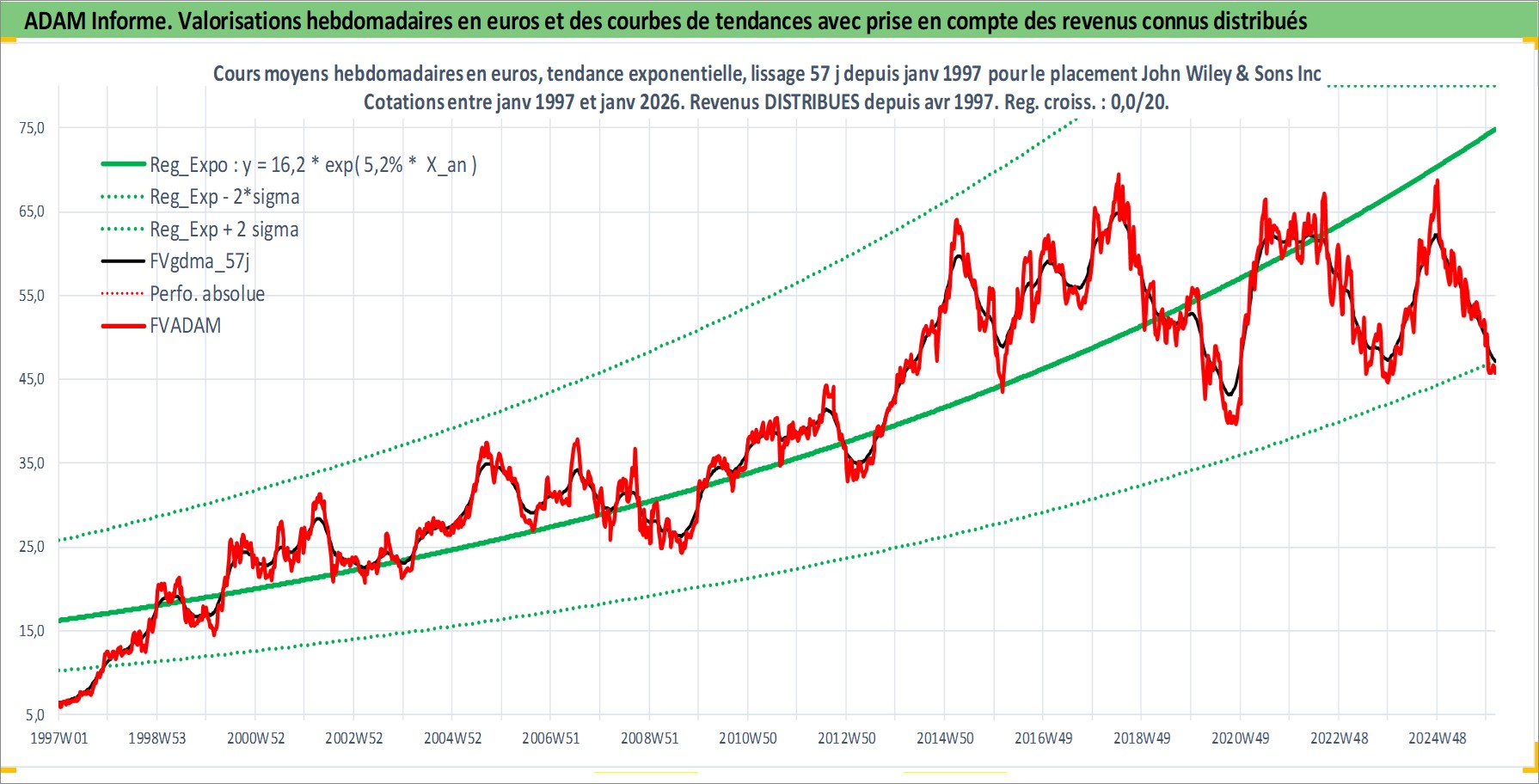 Site dédié aux investisseursPage dédiée sur site financeAnalyse des valorisations hebdomadaires de l'action John Wiley & Sons Inc. Cet actif est cote en USD. Les valorisations sont en contrevaleur EURO et couvrent les semaines 1997W01 a 2026W05. Les revenus de cet actif financier sont pris en compte depuis la semaine 1997W14. La note ESG de cet actif n'est pas connue.