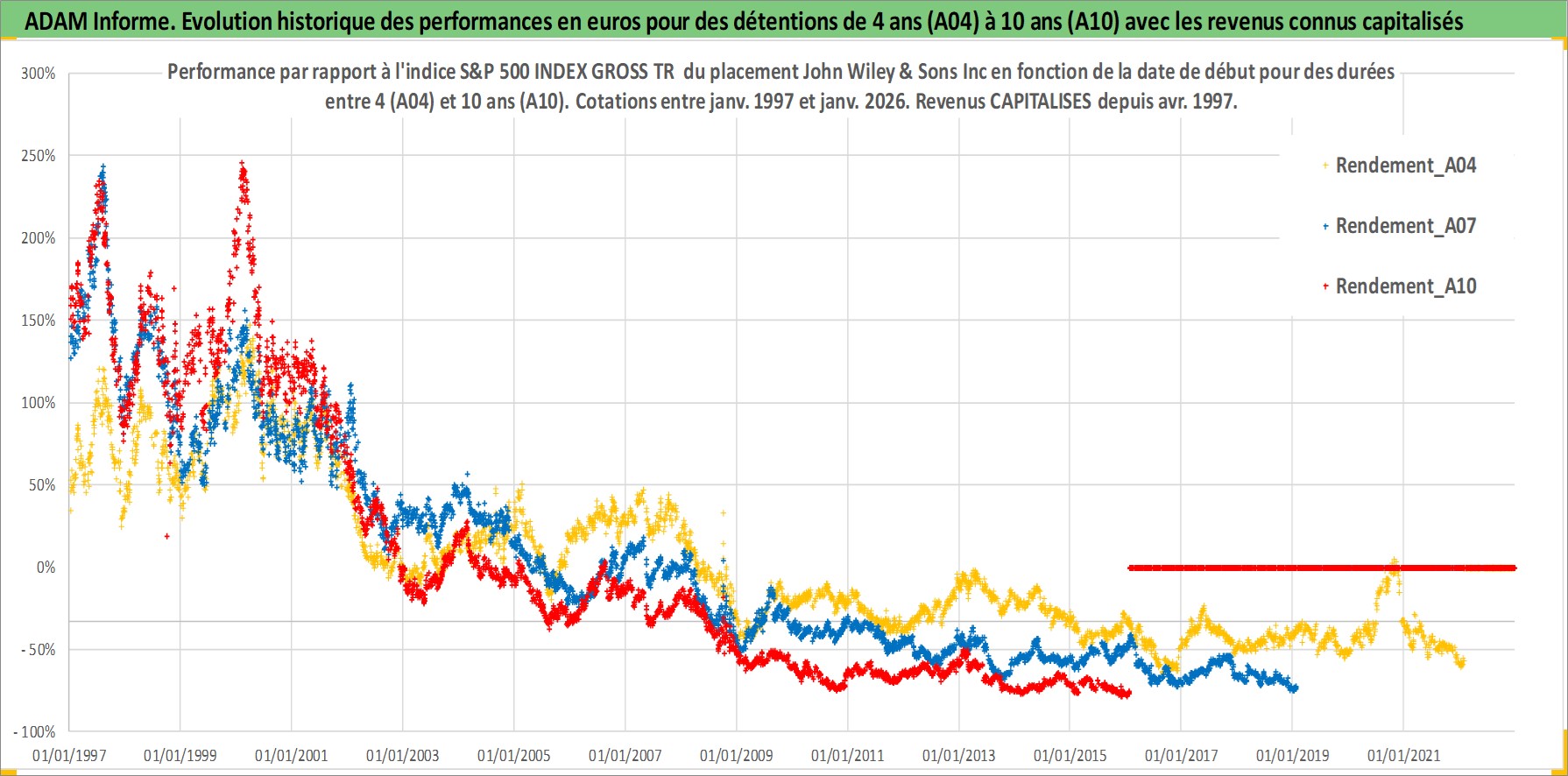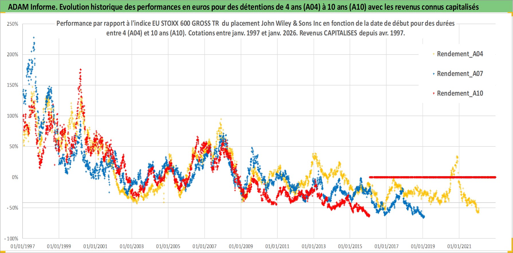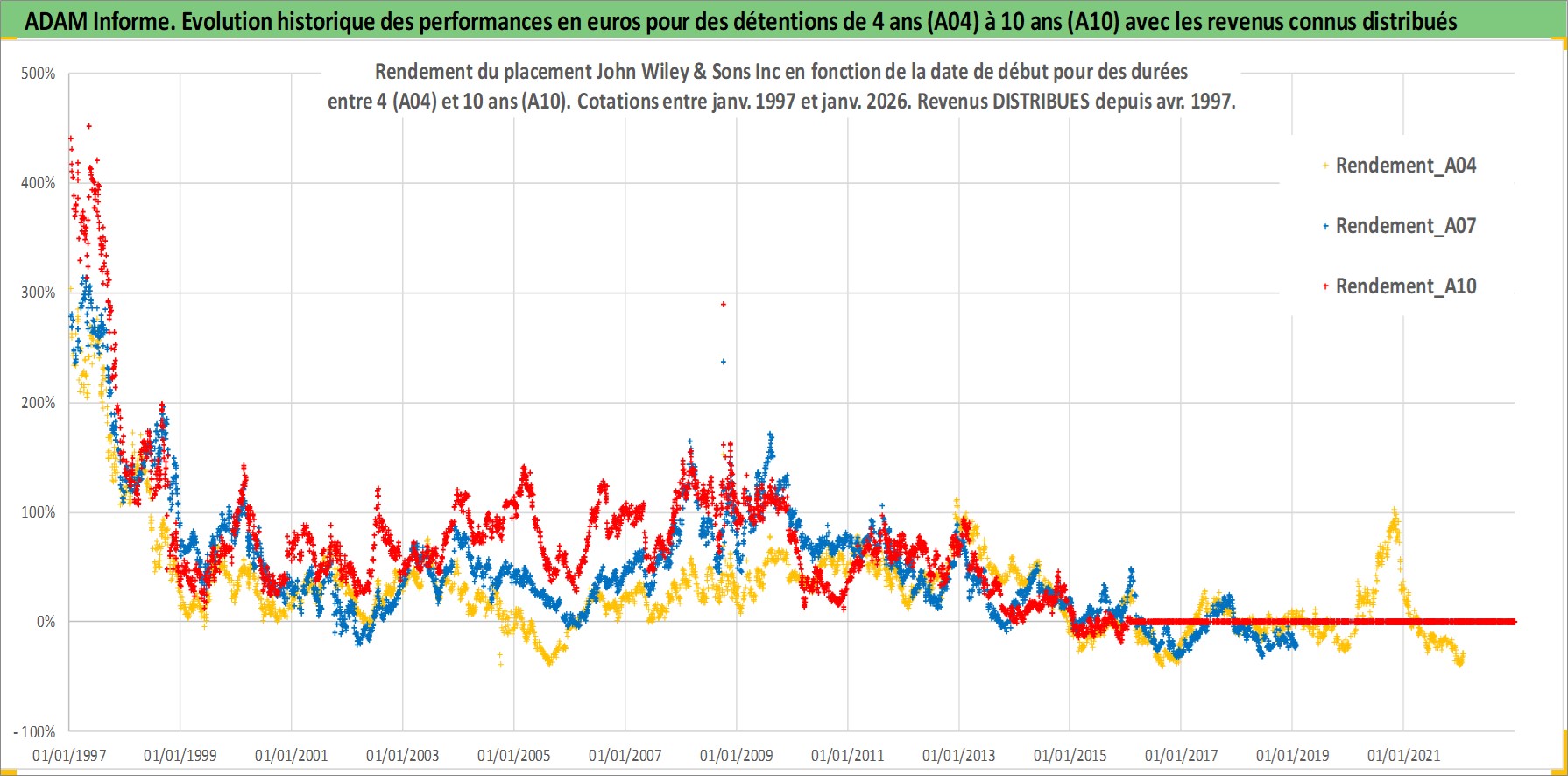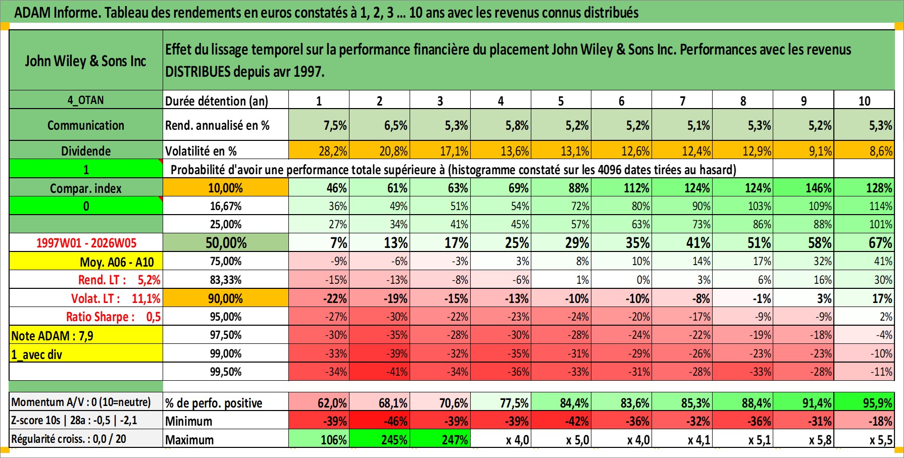 Site dédié aux investisseursPage dédiée sur site financeAnalyse des valorisations hebdomadaires de l'action John Wiley & Sons Inc. Cet actif est cote en USD. Les valorisations sont en contrevaleur EURO et couvrent les semaines 1997W01 a 2026W05. Les revenus de cet actif financier sont pris en compte depuis la semaine 1997W14. La note ESG de cet actif n'est pas connue.