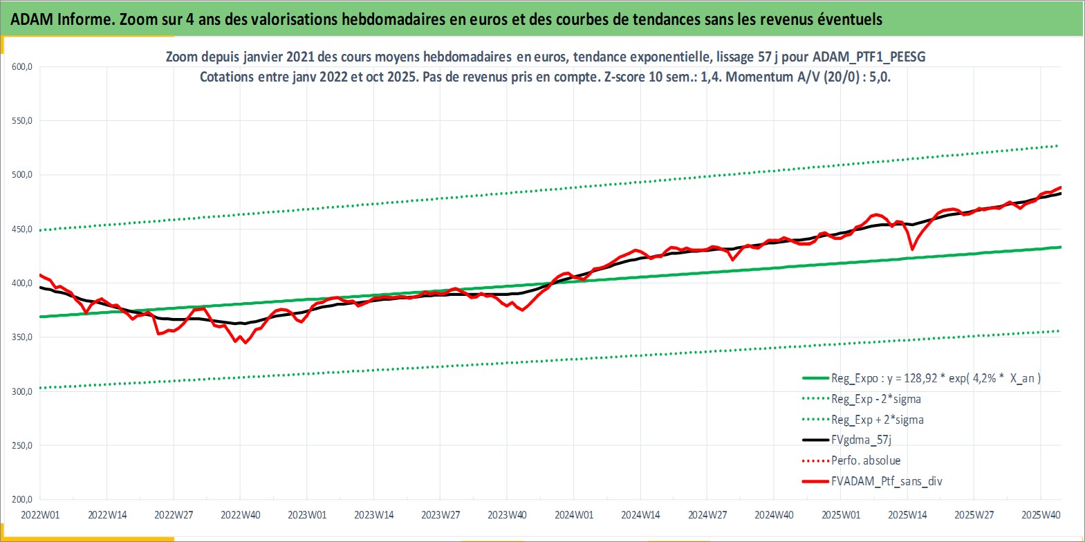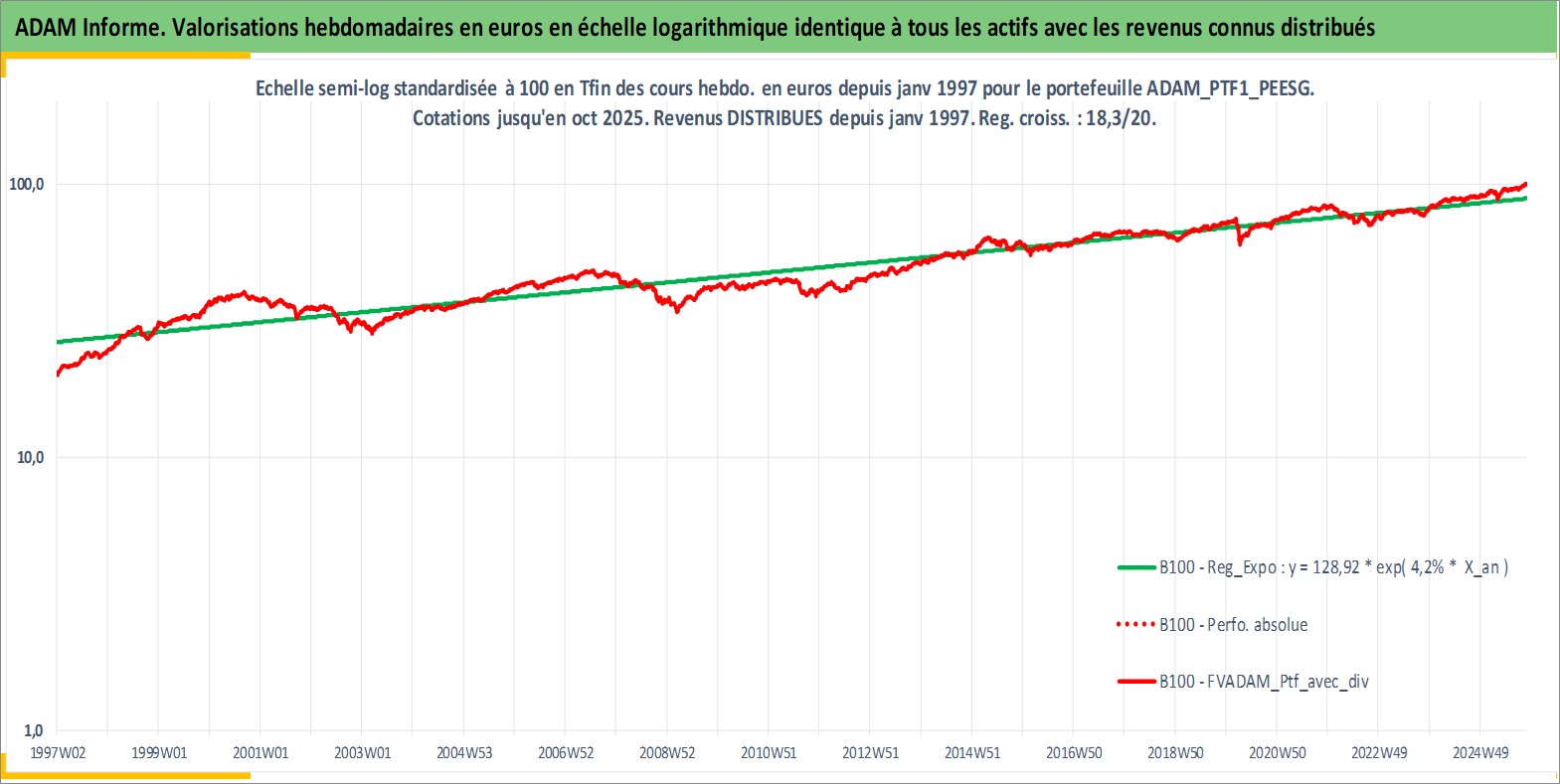 Site dédié aux investisseursPage dédiée sur site financeAnalyse des valorisations hebdomadaires du portefeuille PTF1_PEESG_3actifs avec un profil P6_PurActions. Ce portefeuille est cote en EUR. Les valorisations couvrent les semaines 1997W01 a 2025W44. Les revenus de cet actif financier sont pris en compte depuis la semaine 1997W01. La note ESG de cet actif n'est pas connue.