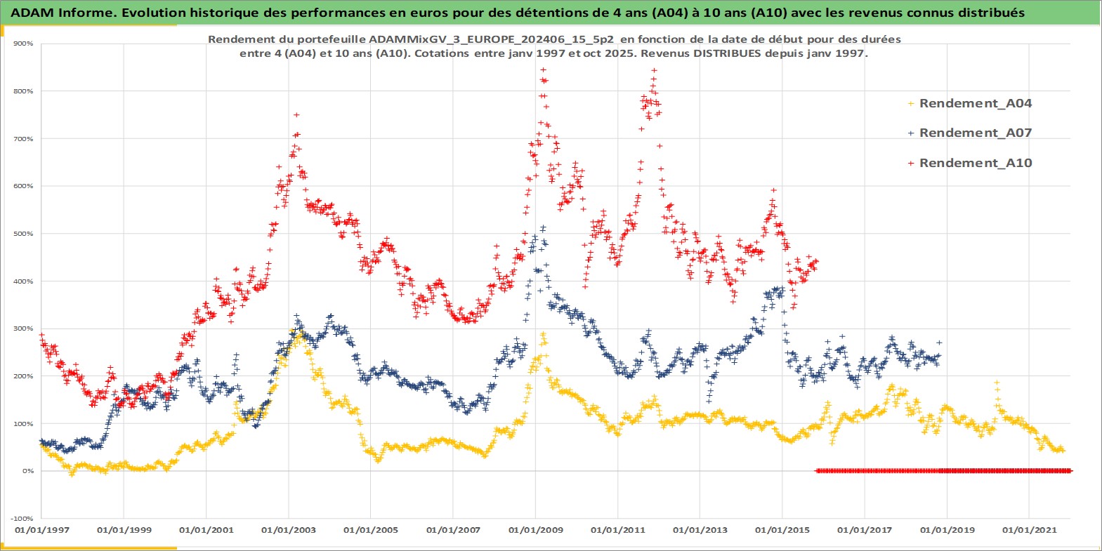 Site dédié aux investisseursPage dédiée sur site financeAnalyse des valorisations hebdomadaires du portefeuille ADAMMixGV_3_EUROPE_202406_15_5p2_13actifs avec un profil P6_PurActions. Ce portefeuille est cote en EUR. Les valorisations couvrent les semaines 1997W01 a 2025W44. Les revenus de cet actif financier sont pris en compte depuis la semaine 1997W01. La note globale ESG de cet actif est estimee a 12.2 (apres rebasage entre 0 et 20).