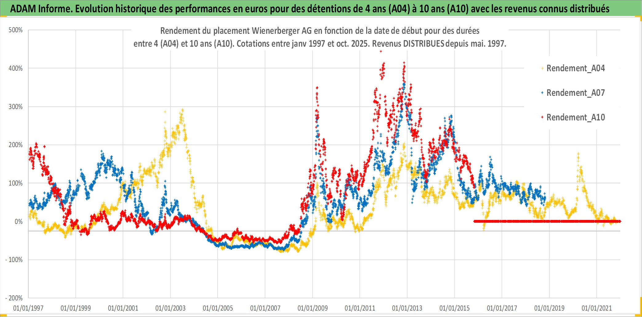 Site dédié aux investisseursPage dédiée sur site financeAnalyse des valorisations hebdomadaires de l'action Wienerberger AG. Cet actif est cote en EUR. Les valorisations couvrent les semaines 1997W01 a 2025W44. Les revenus de cet actif financier sont pris en compte depuis la semaine 1997W22. La note ESG de cet actif n'est pas connue.