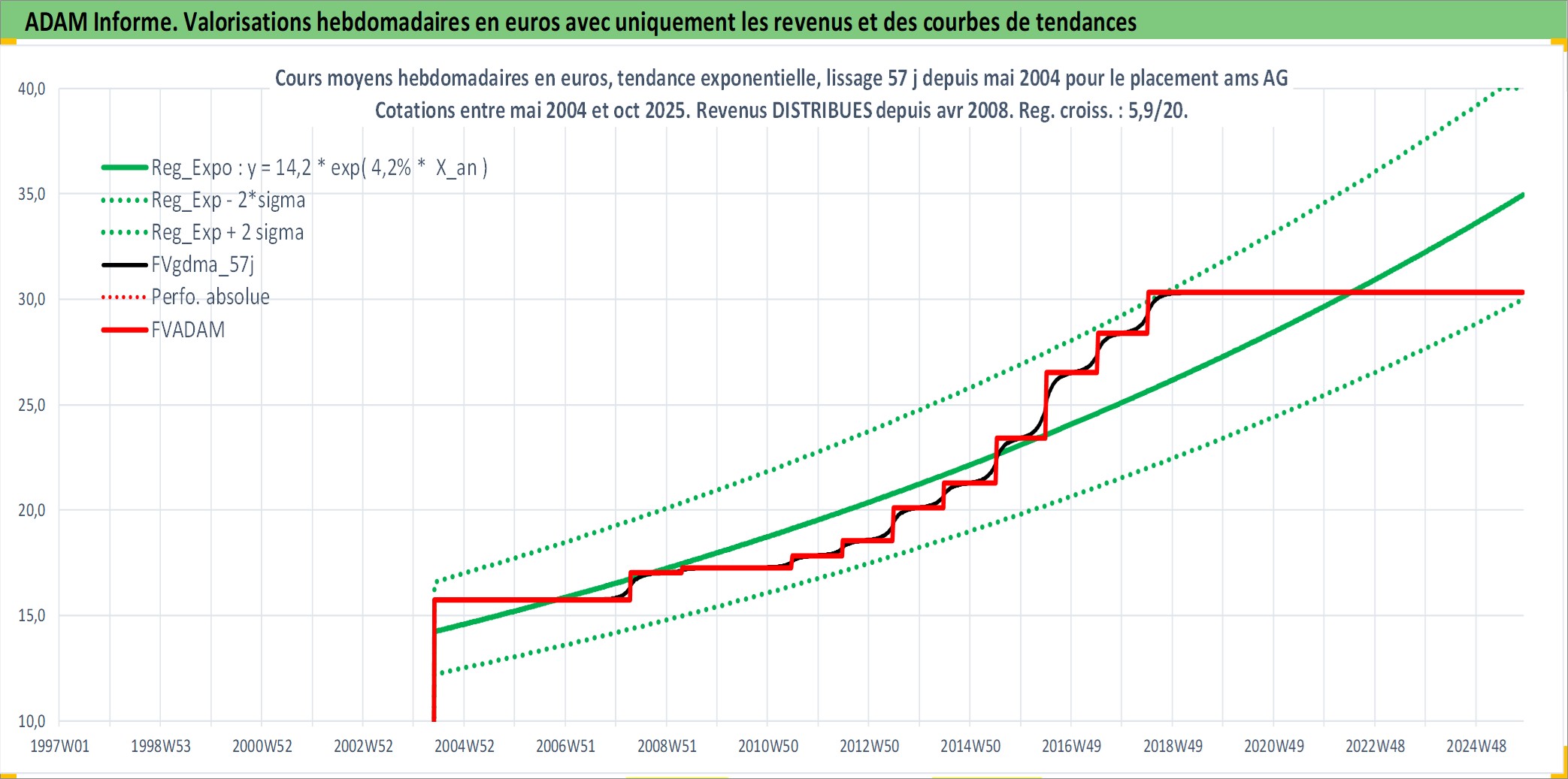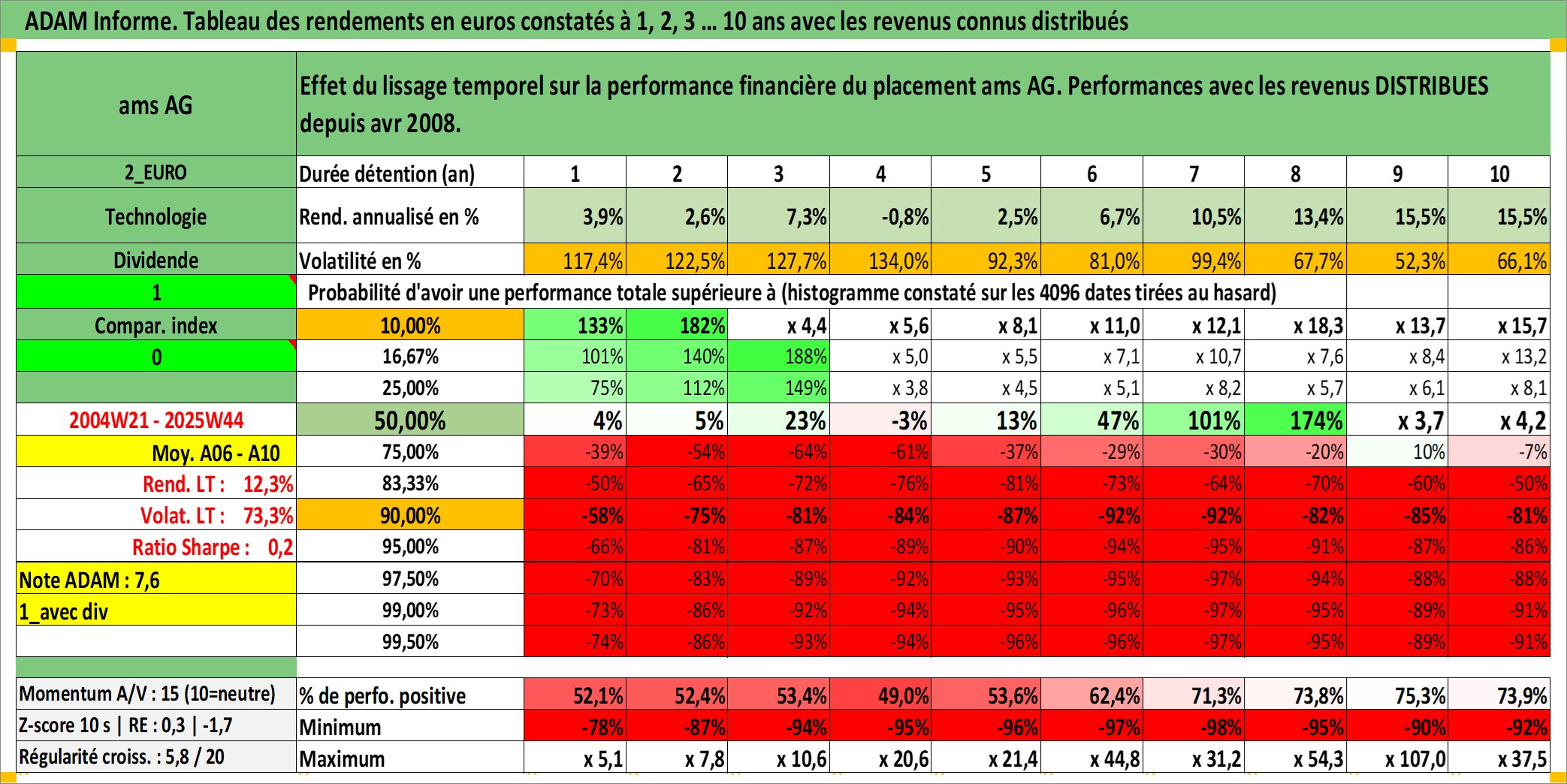 Site dédié aux investisseursPage dédiée sur site financeAnalyse des valorisations hebdomadaires de l'action ams AG. Cet actif est cote en CHF. Les valorisations sont en contrevaleur EURO et couvrent les semaines 2004W21 a 2025W44. Les revenus de cet actif financier sont pris en compte depuis la semaine 2008W14. La note ESG de cet actif n'est pas connue.