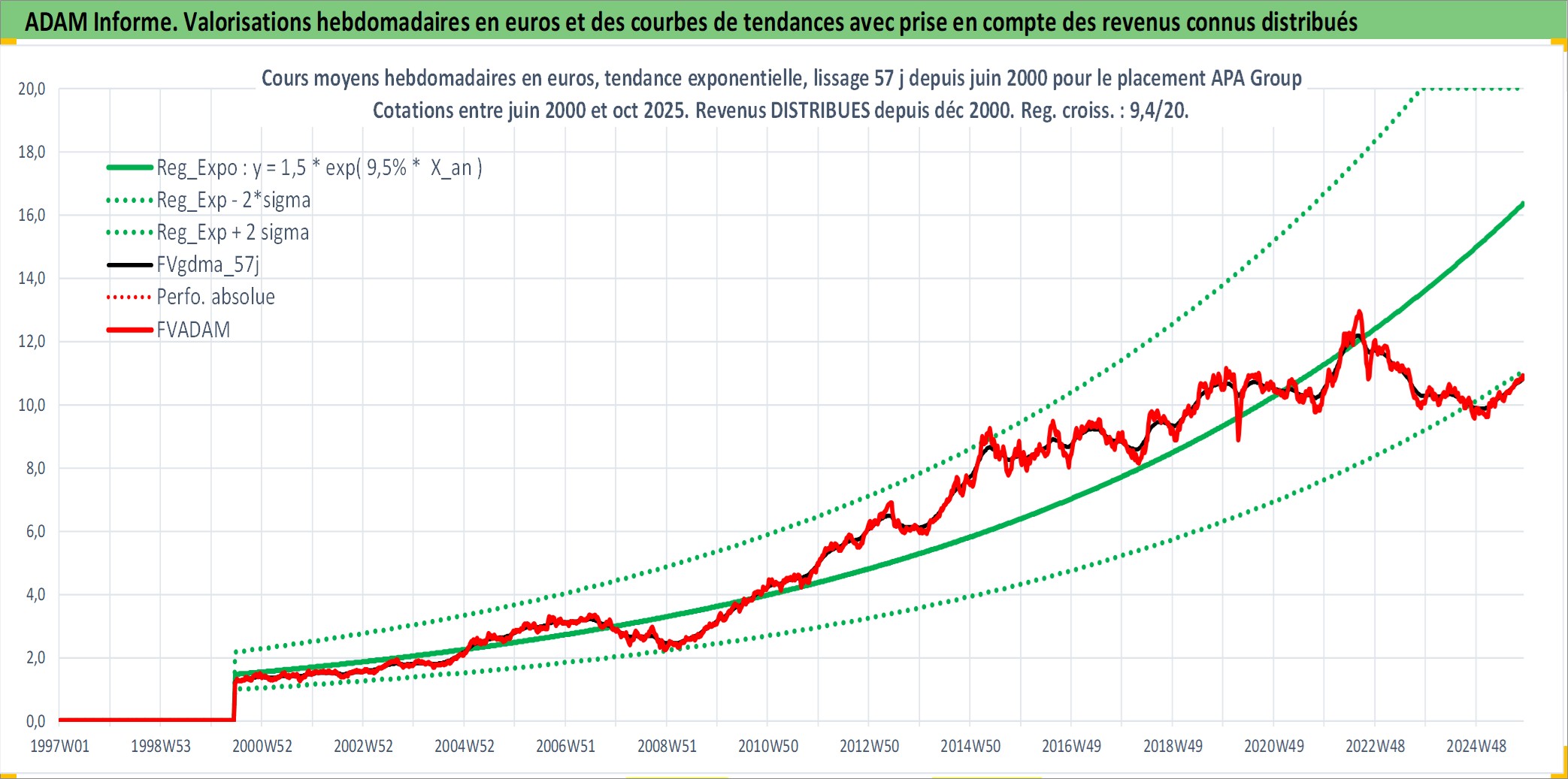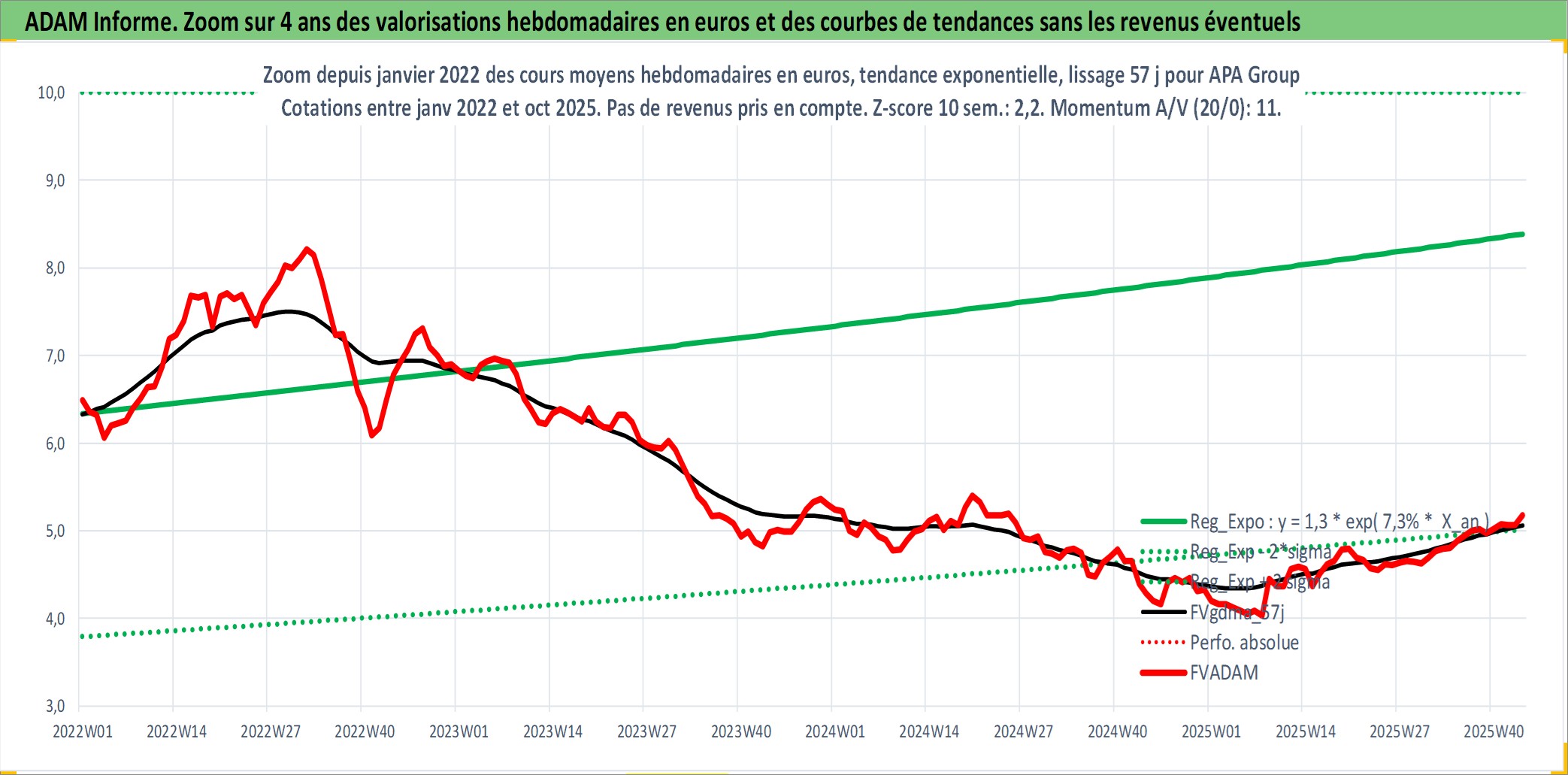 Site dédié aux investisseursPage dédiée sur site financeAnalyse des valorisations hebdomadaires de l'action APA Group. Cet actif est cote en AUD. Les valorisations sont en contrevaleur EURO et couvrent les semaines 2000W24 a 2025W44. Les revenus de cet actif financier sont pris en compte depuis la semaine 2000W48. La note globale ESG de cet actif est estimee a 4.0 (apres rebasage entre 0 et 20).
