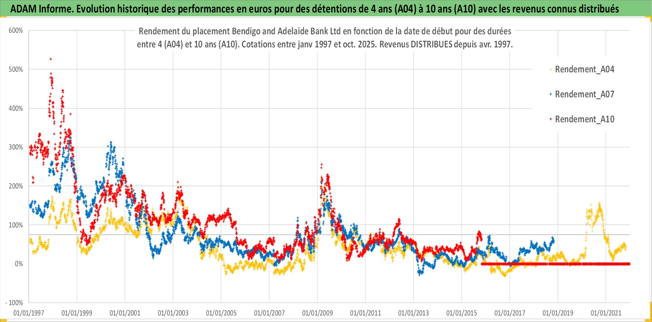 Site dédié aux investisseursPage dédiée sur site financeAnalyse des valorisations hebdomadaires de l'action Bendigo and Adelaide Bank Ltd. Cet actif est cote en AUD. Les valorisations sont en contrevaleur EURO et couvrent les semaines 1997W01 a 2025W44. Les revenus de cet actif financier sont pris en compte depuis la semaine 1997W15. La note ESG de cet actif n'est pas connue.
