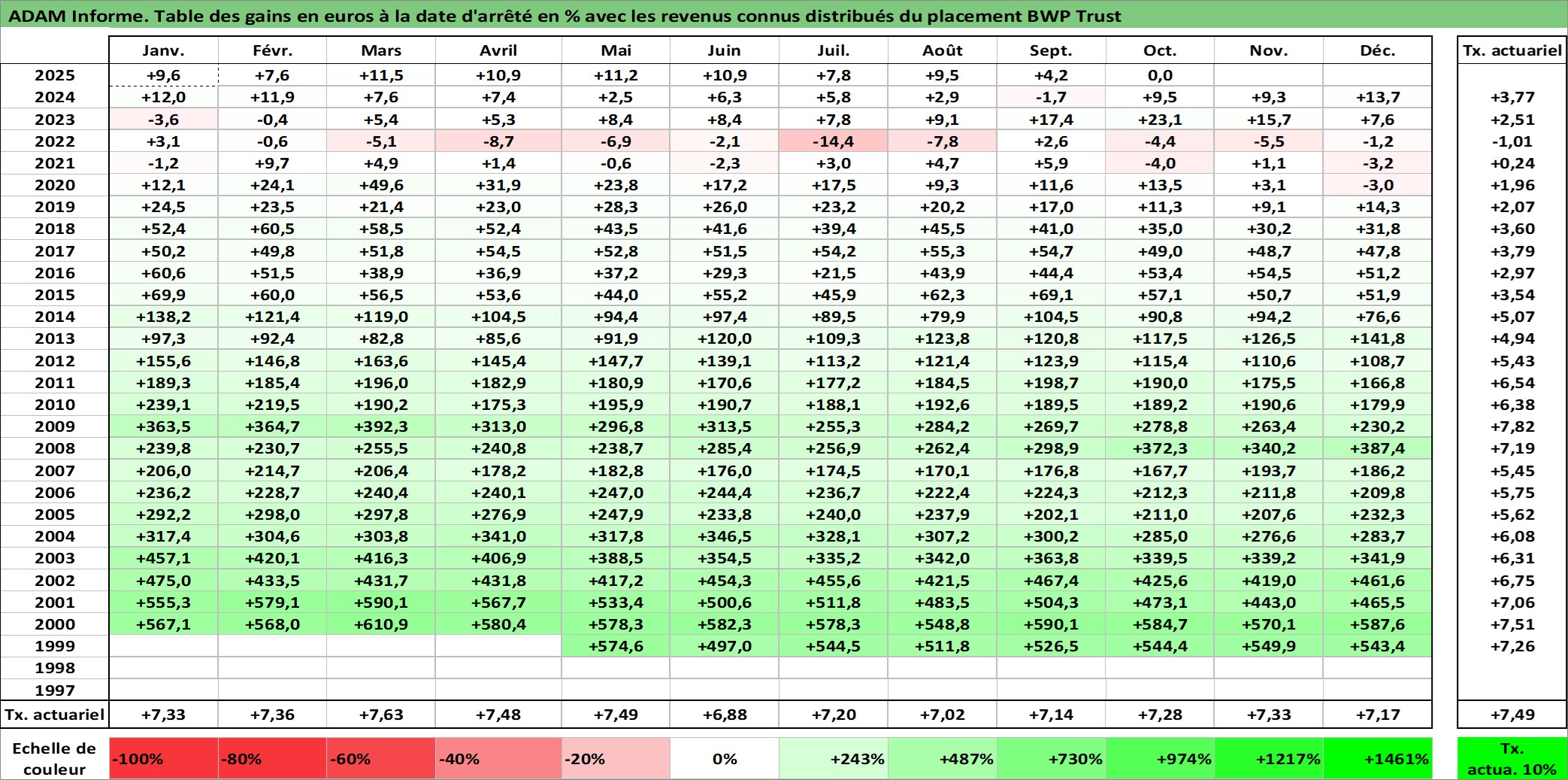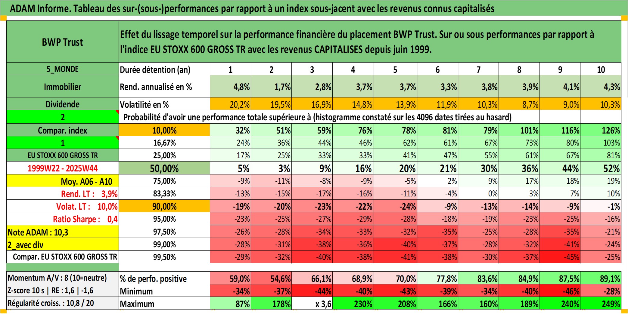 Site dédié aux investisseursPage dédiée sur site financeAnalyse des valorisations hebdomadaires de l'action BWP Trust. Cet actif est cote en AUD. Les valorisations sont en contrevaleur EURO et couvrent les semaines 1999W22 a 2025W44. Les revenus de cet actif financier sont pris en compte depuis la semaine 1999W25. La note ESG de cet actif n'est pas connue.