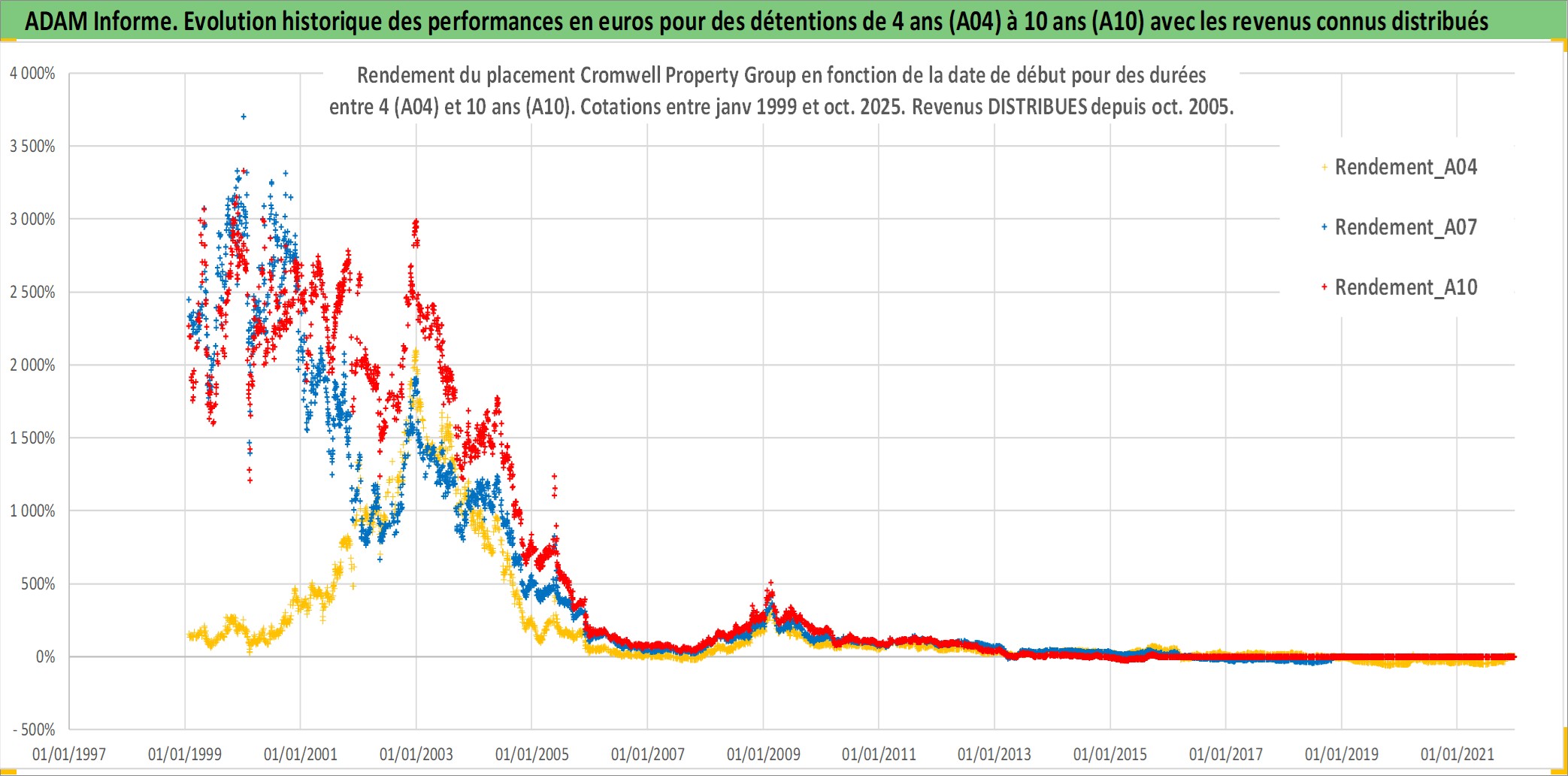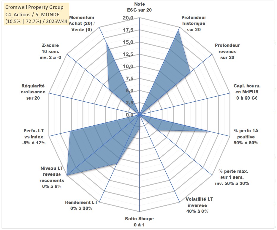 Site dédié aux investisseursPage dédiée sur site financeAnalyse des valorisations hebdomadaires de l'action Cromwell Property Group. Cet actif est cote en AUD. Les valorisations sont en contrevaleur EURO et couvrent les semaines 1999W02 a 2025W44. Les revenus de cet actif financier sont pris en compte depuis la semaine 2005W43. La note ESG de cet actif n'est pas connue.