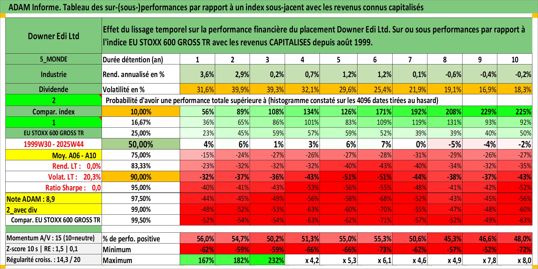 Site dédié aux investisseursPage dédiée sur site financeAnalyse des valorisations hebdomadaires de l'action Downer Edi Ltd. Cet actif est cote en AUD. Les valorisations sont en contrevaleur EURO et couvrent les semaines 1999W30 a 2025W44. Les revenus de cet actif financier sont pris en compte depuis la semaine 1999W34. La note ESG de cet actif n'est pas connue.